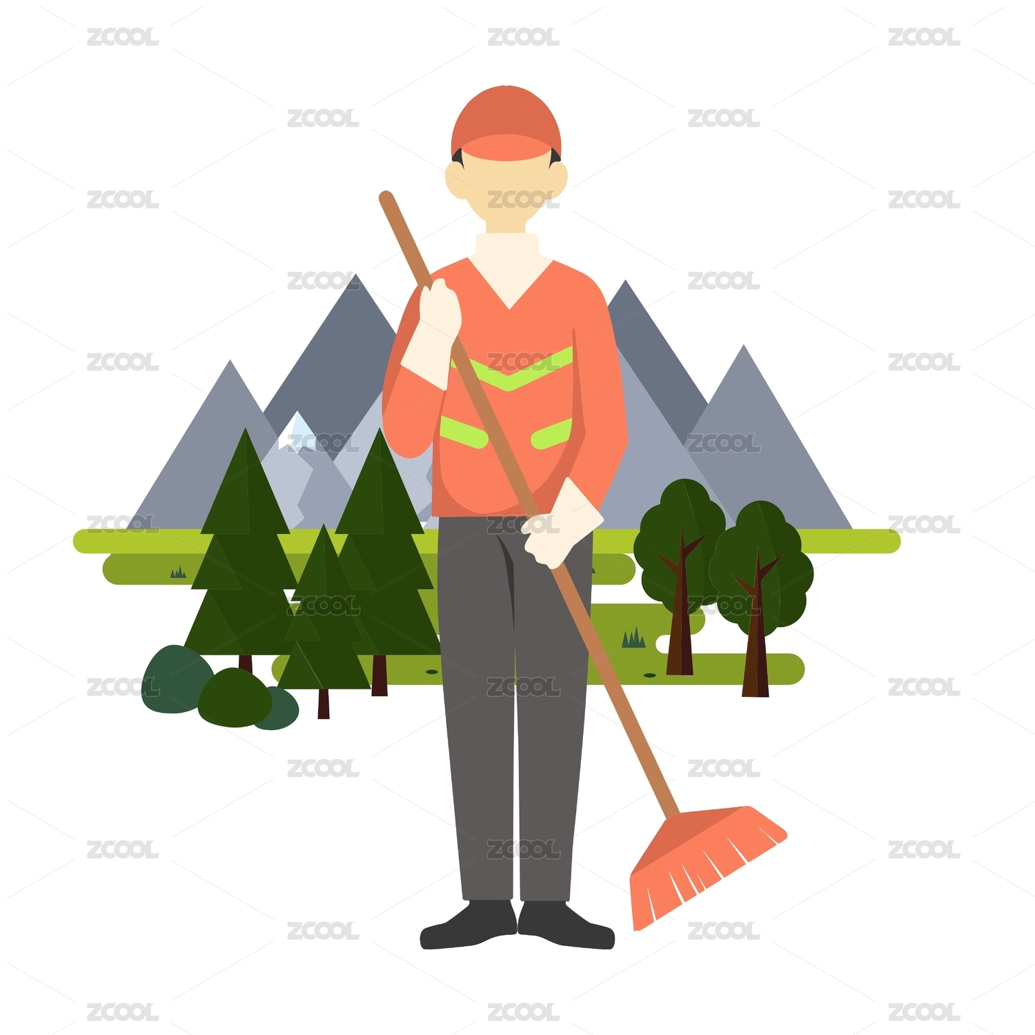 環(huán)衛(wèi)工人環(huán)保工作者矢量插畫