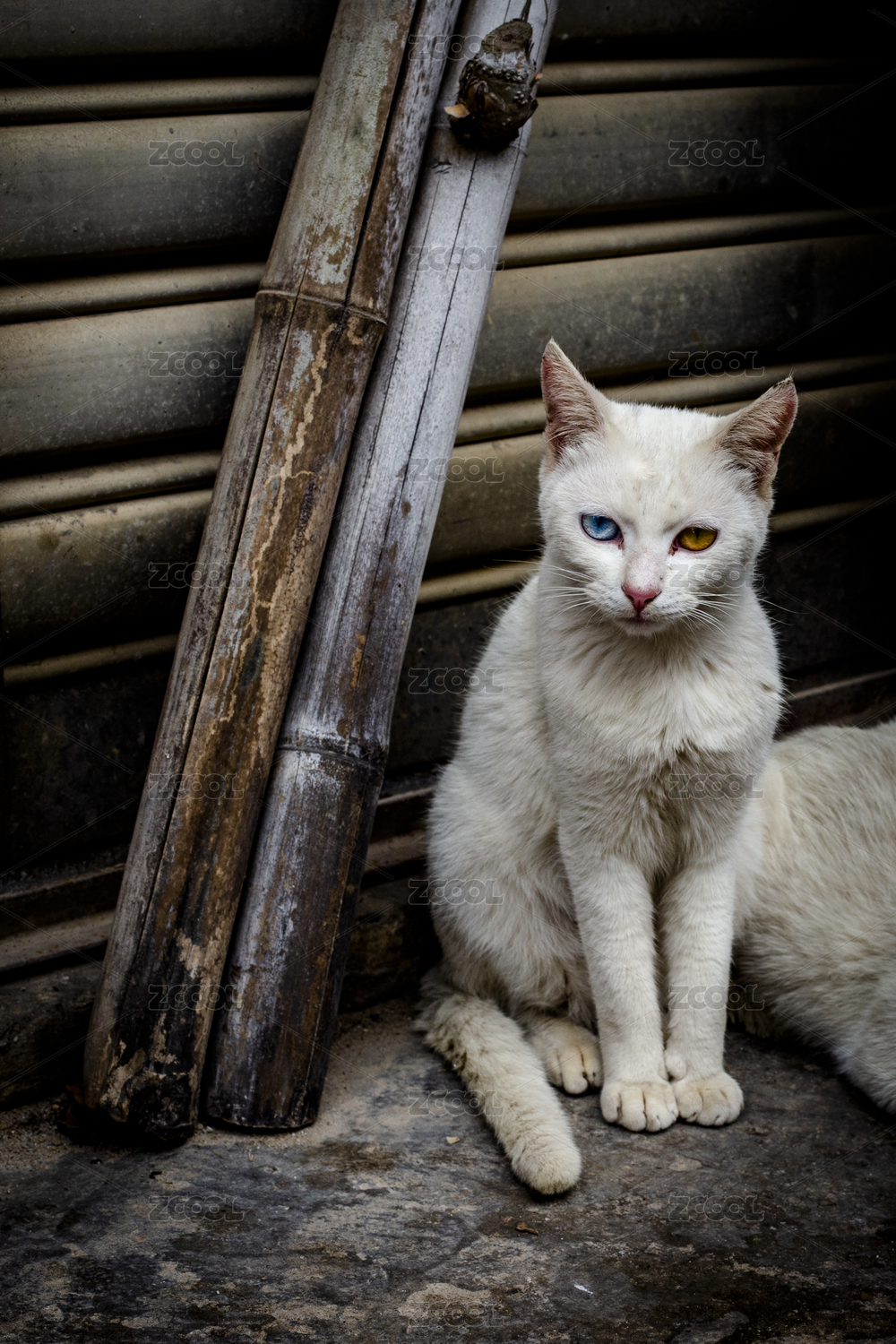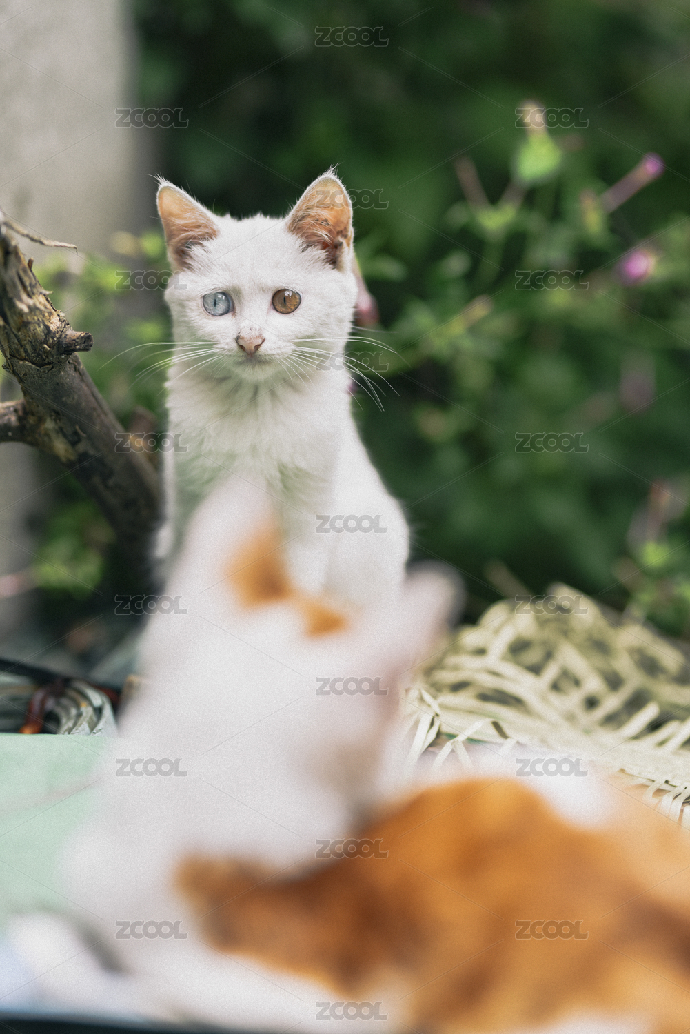 公園里一只白色的異瞳貓