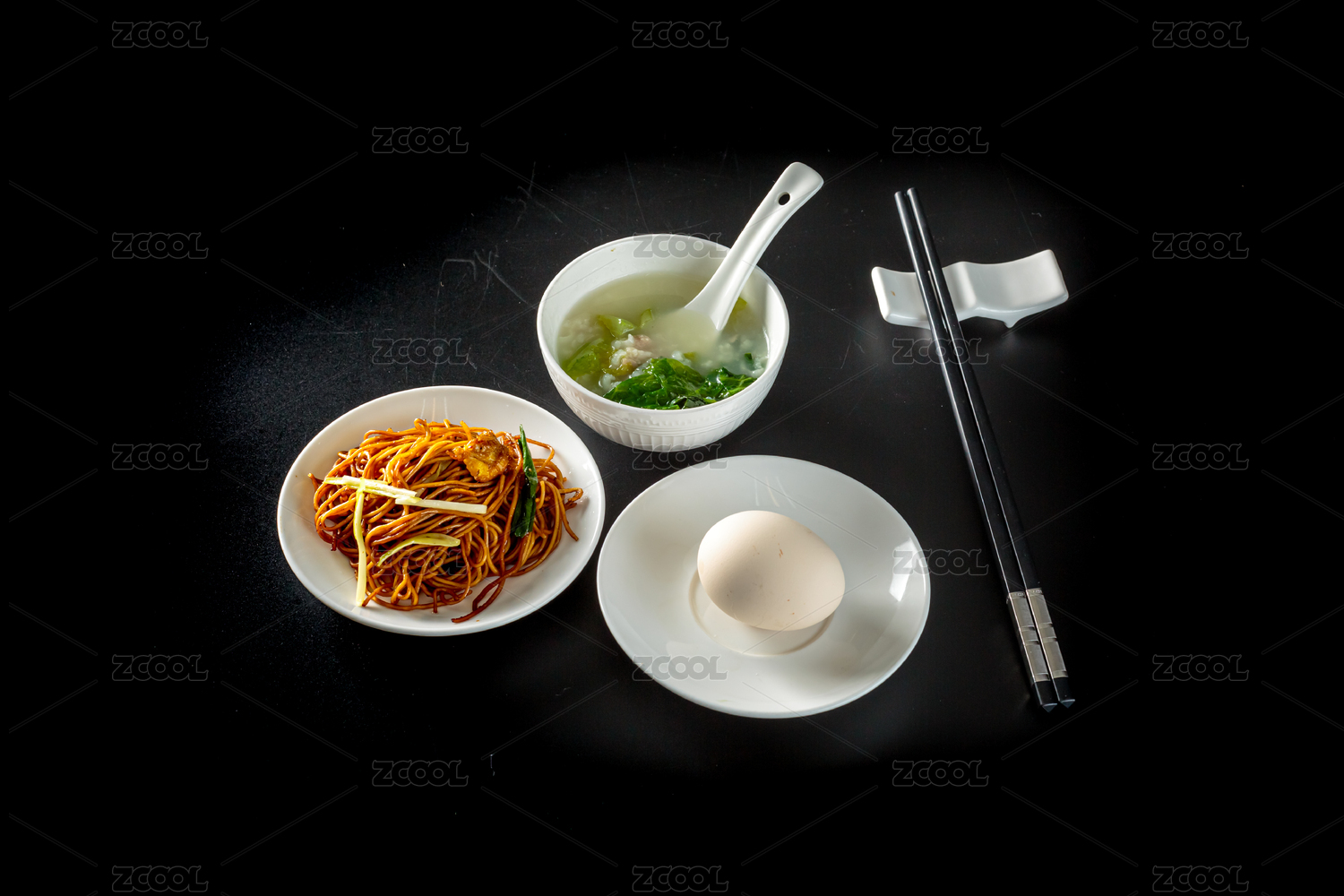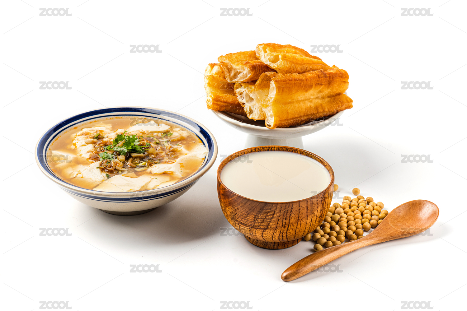 白色背景上的中式早餐