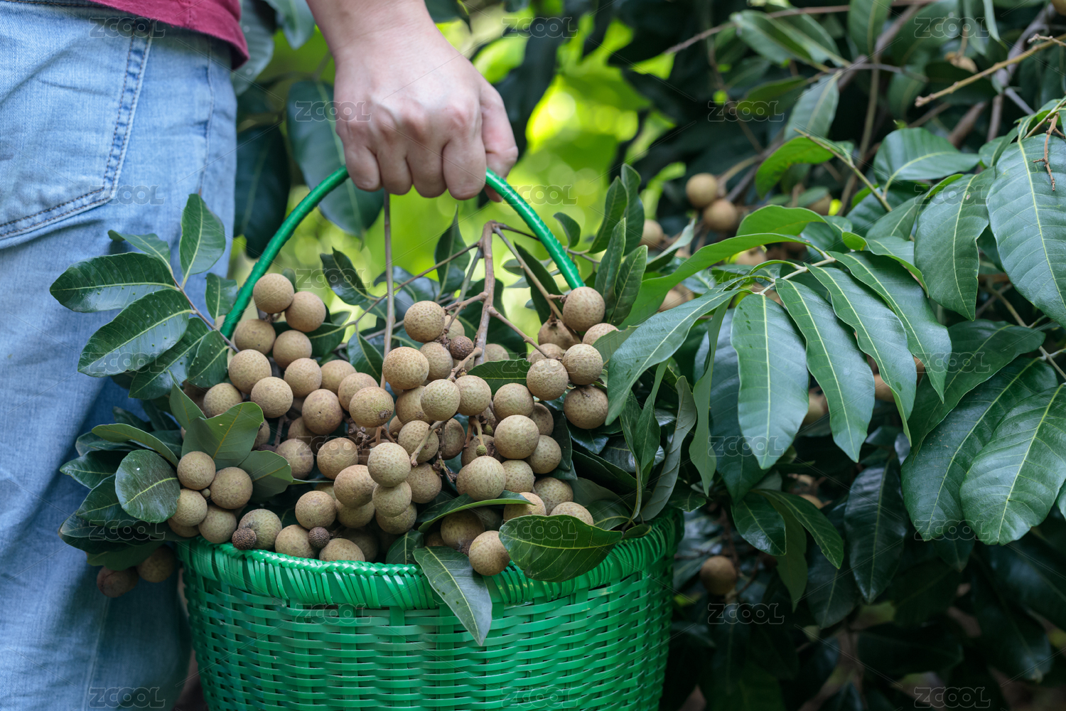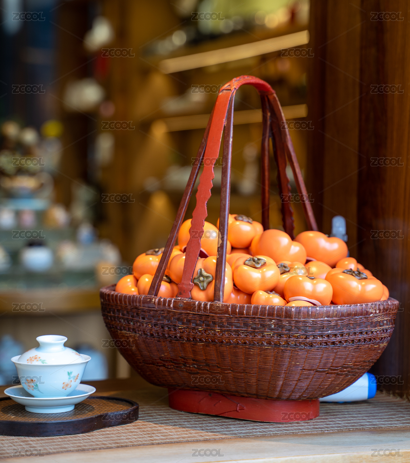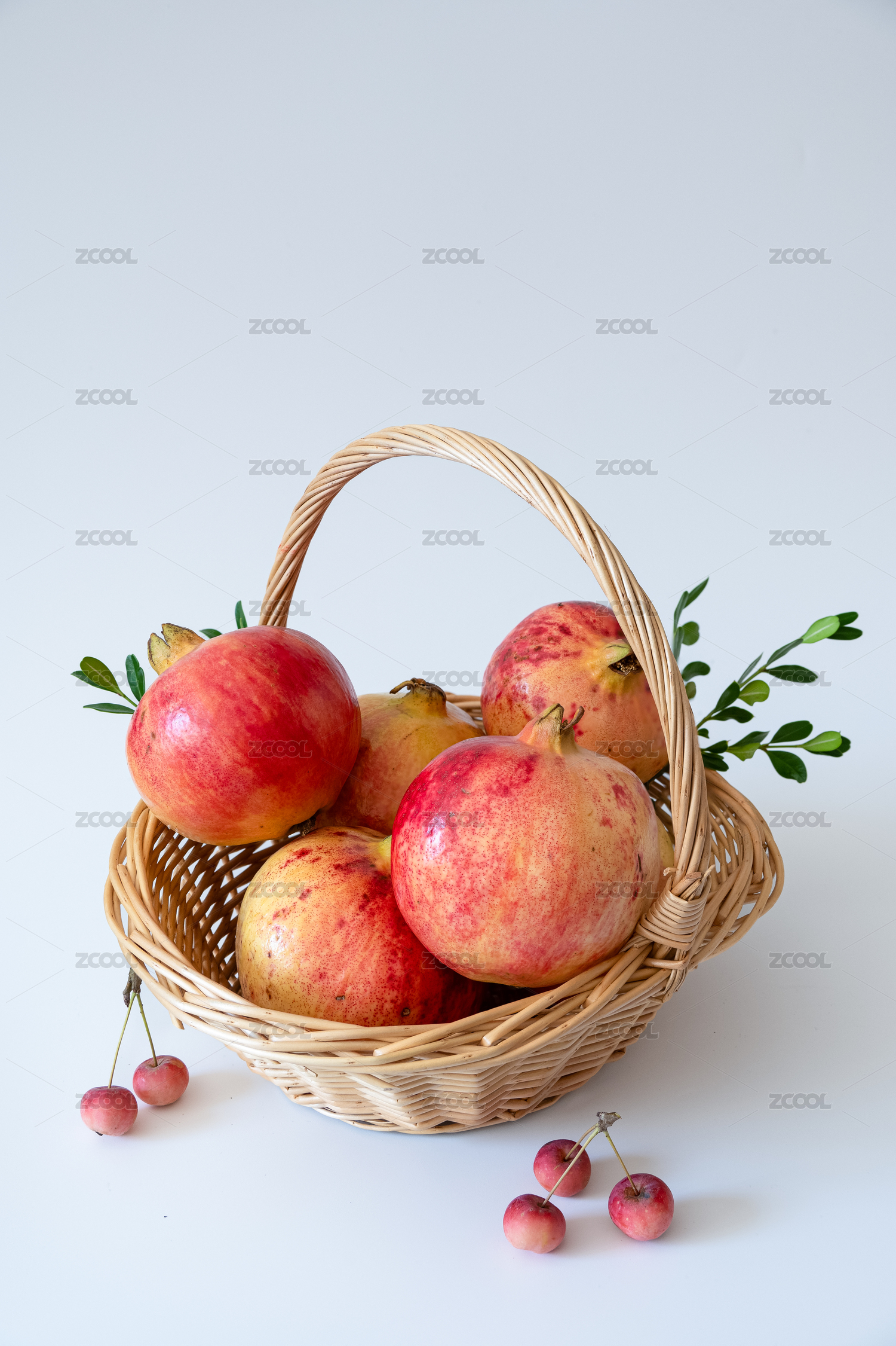 松樹旁鋪滿松針落葉的地上剝開的石榴果籃