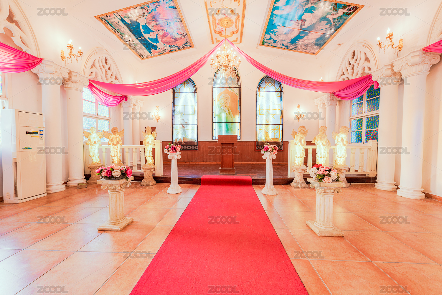 中國廣東東莞鳳崗龍鳳山莊里教堂室內(nèi)景觀
