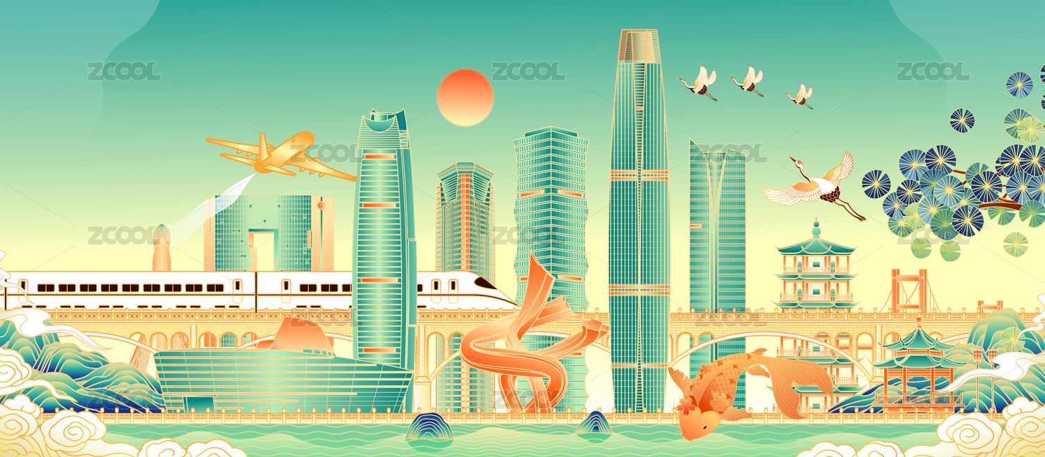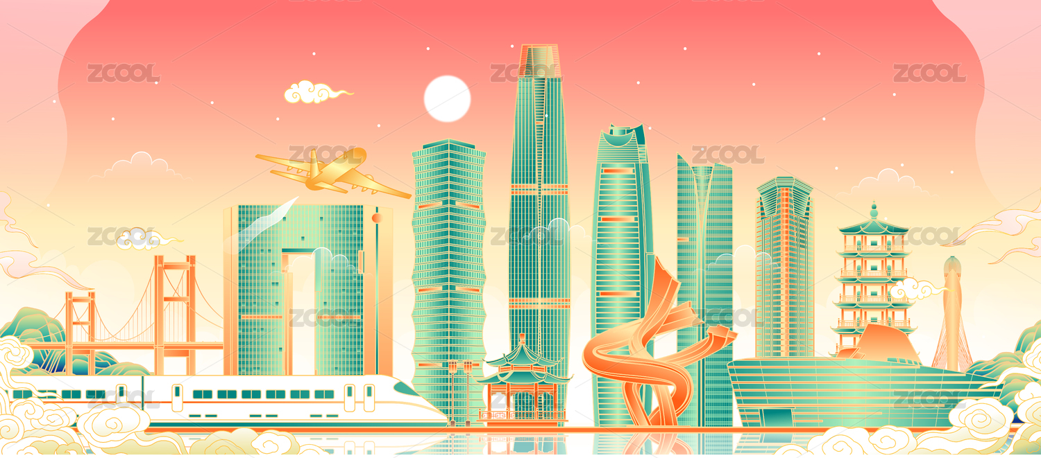 廣東東莞城市建筑矢量插畫