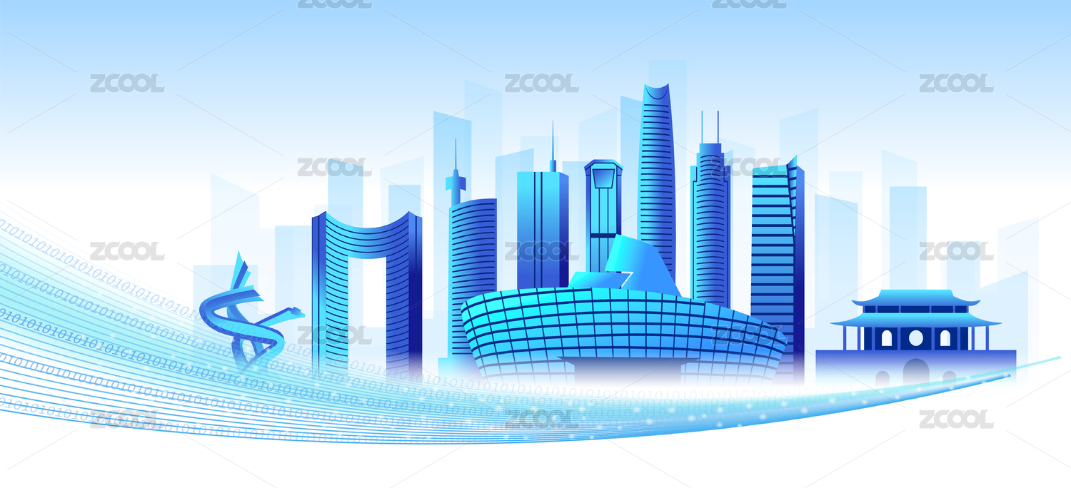 中國廣東東莞市商務科技城市彩色插畫