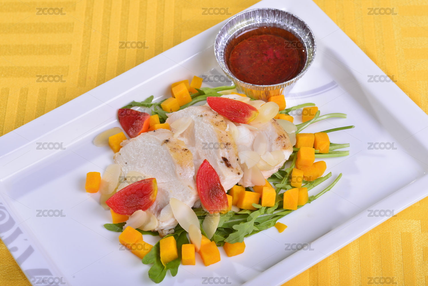 西餐涼菜冷盤香薰雞脯肉配醬汁