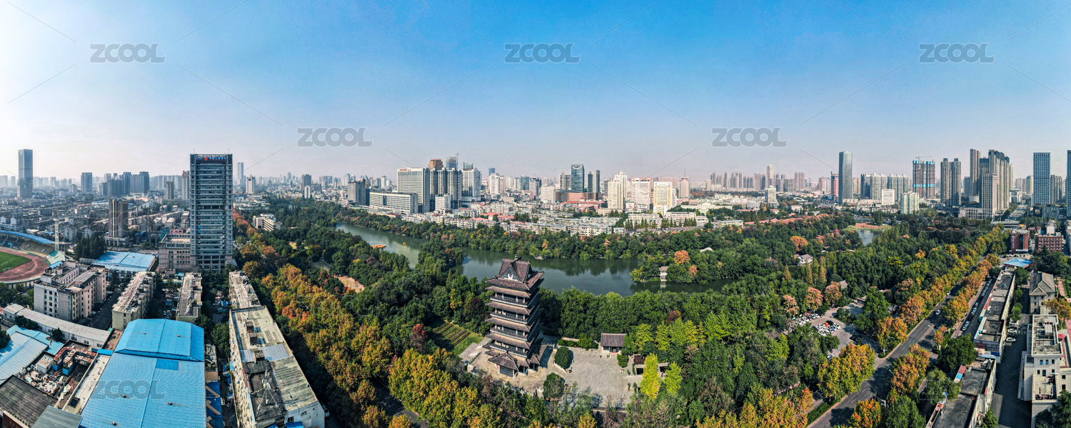 中國四川成都北湖公園全景航拍圖