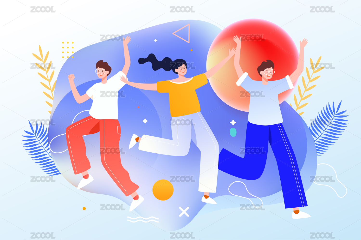 五四青年節(jié)青春活潑快樂年輕人跳躍慶祝插畫