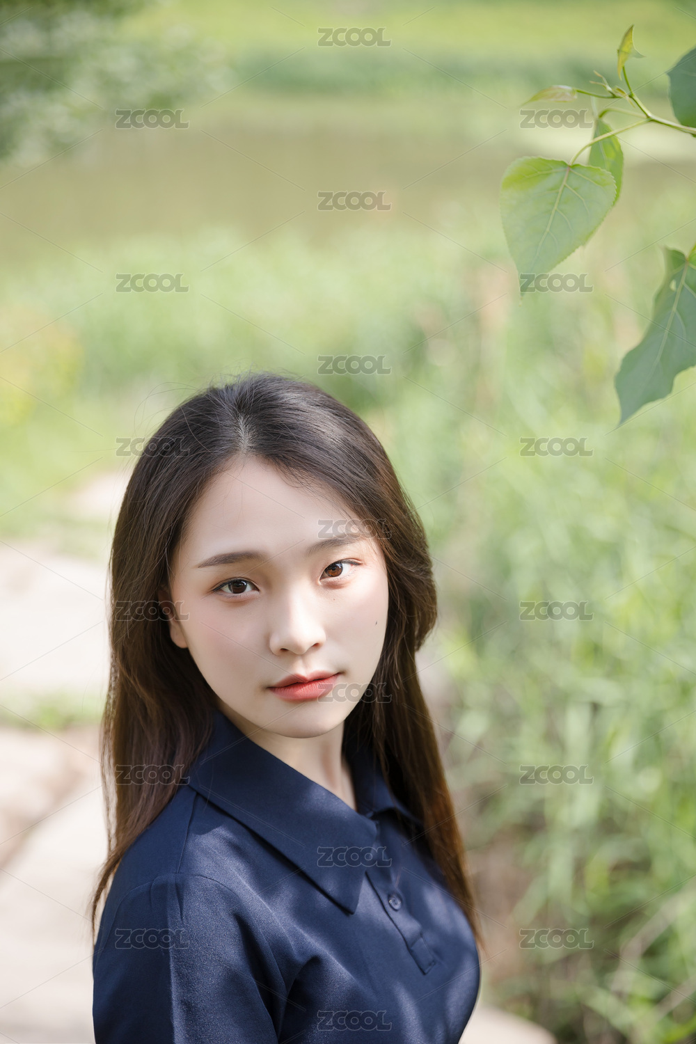 青春美麗女孩在浴室吹自己的頭發(fā)