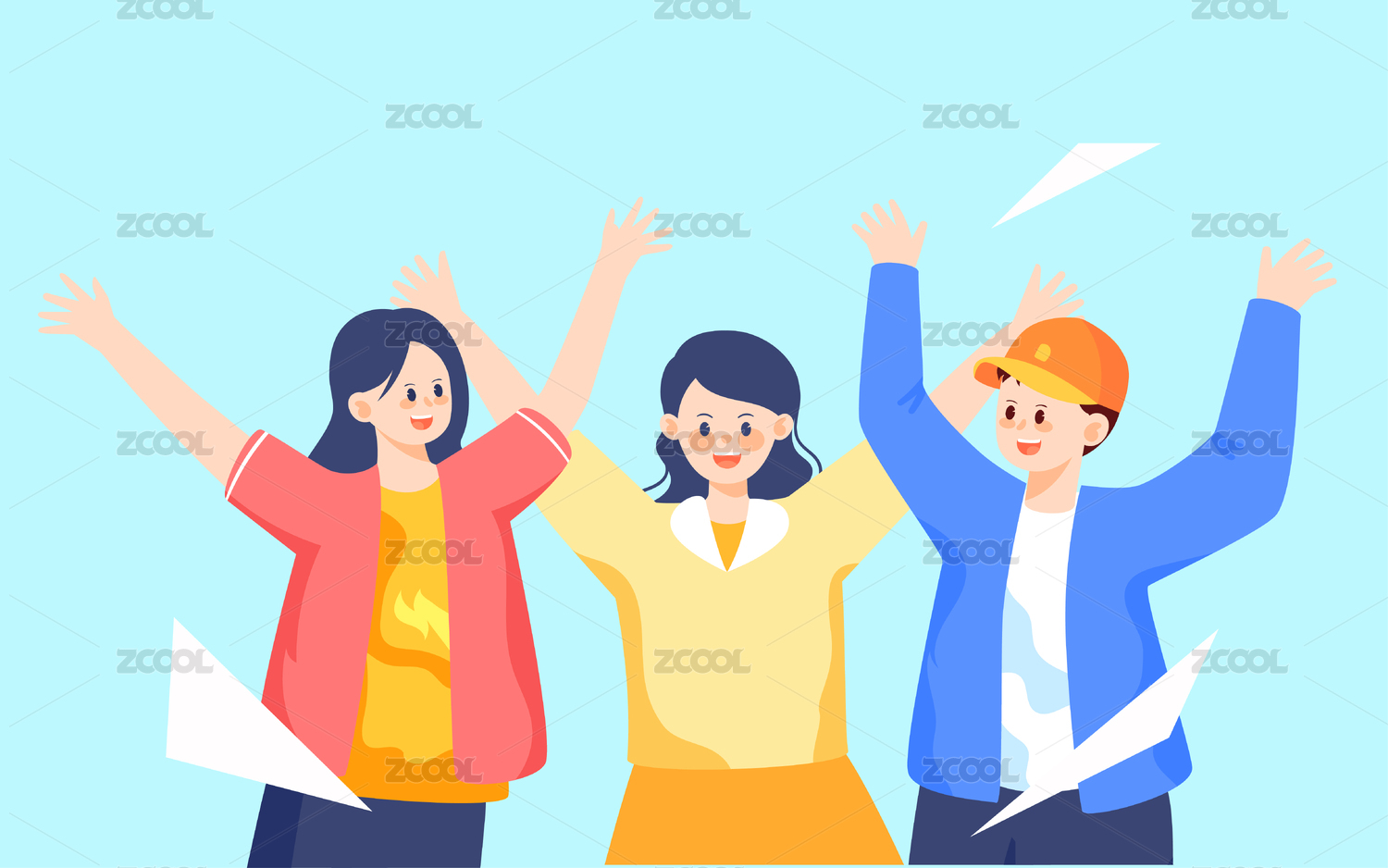 五四青年節(jié)年輕人青春活力插畫開心激動(dòng)海報(bào)