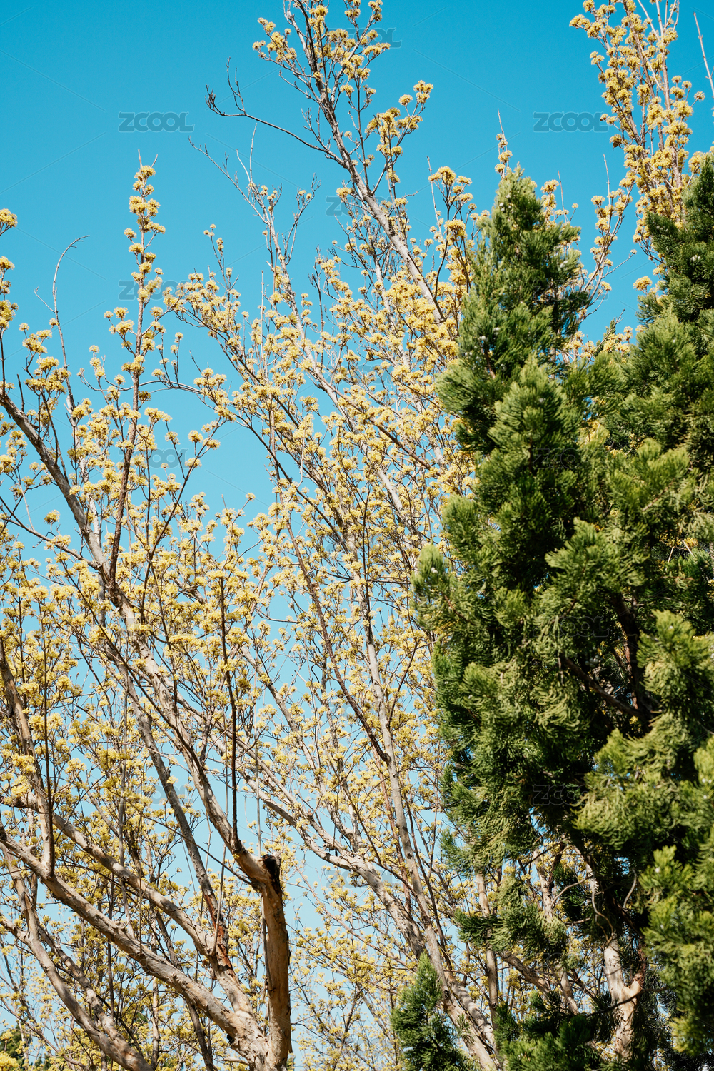 北京北海公園春天的山茱萸