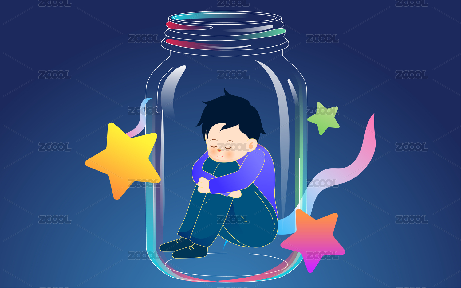 關(guān)愛孤獨(dú)癥 自閉癥 星星的孩子插畫海報(bào)豎