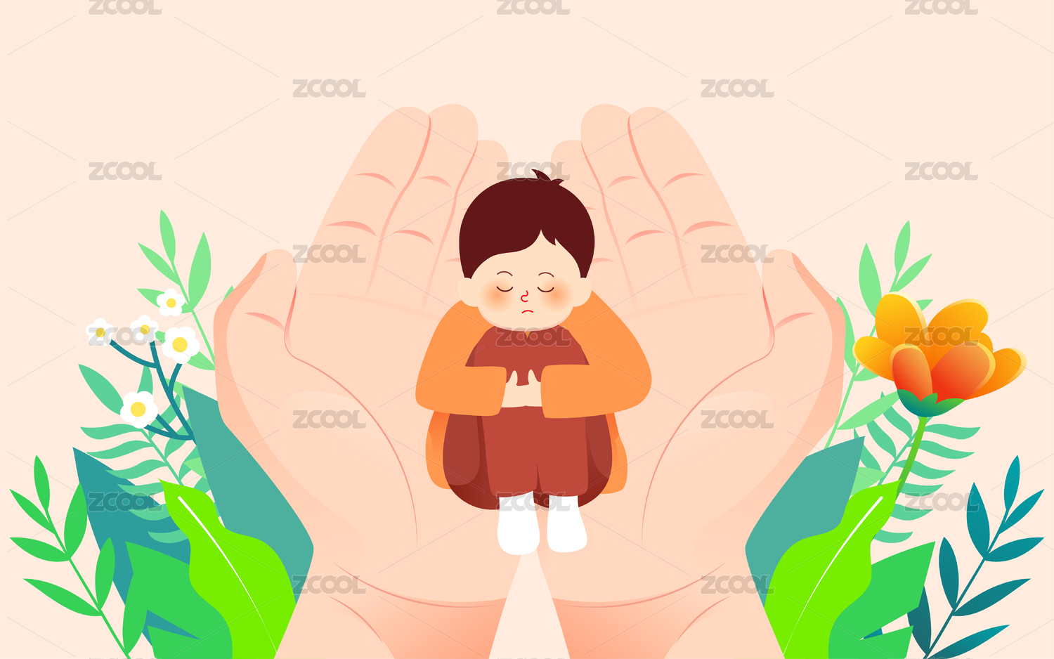 世界自閉癥日關(guān)愛小孩插畫守護(hù)兒童內(nèi)心海報(bào)