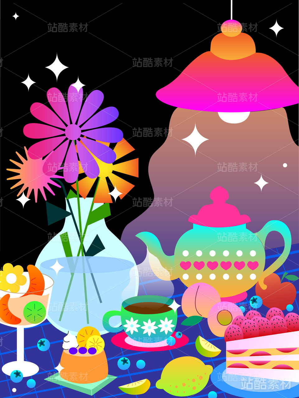 午夜茶話會插畫海報
