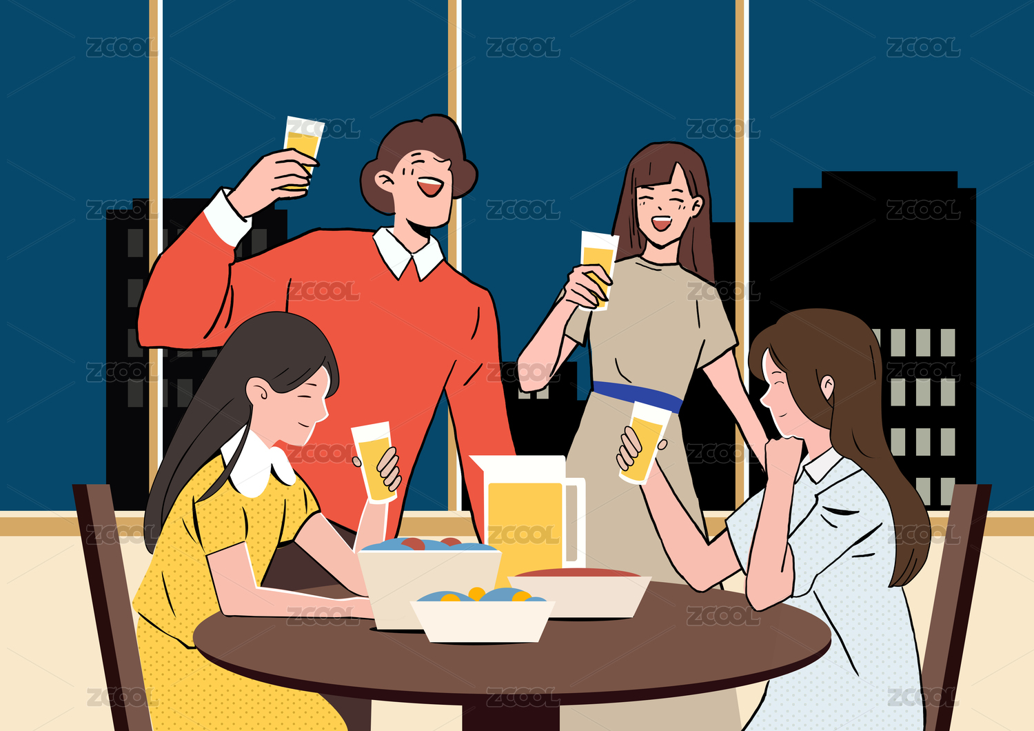 相聚主題扁平風格插畫
