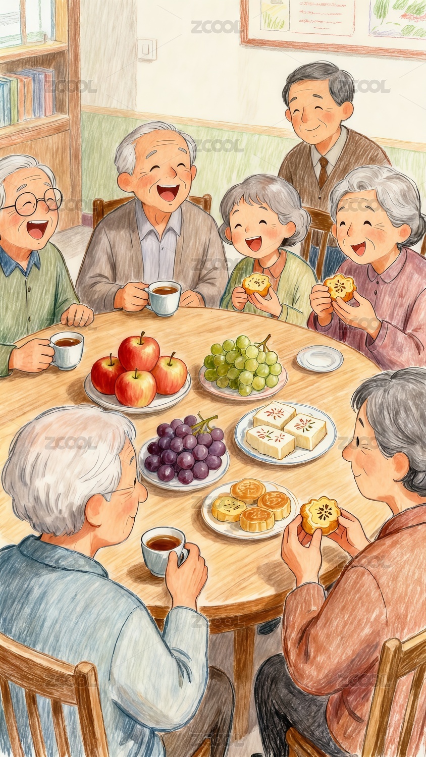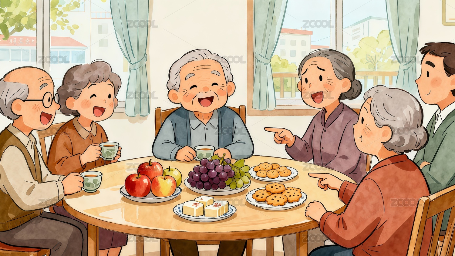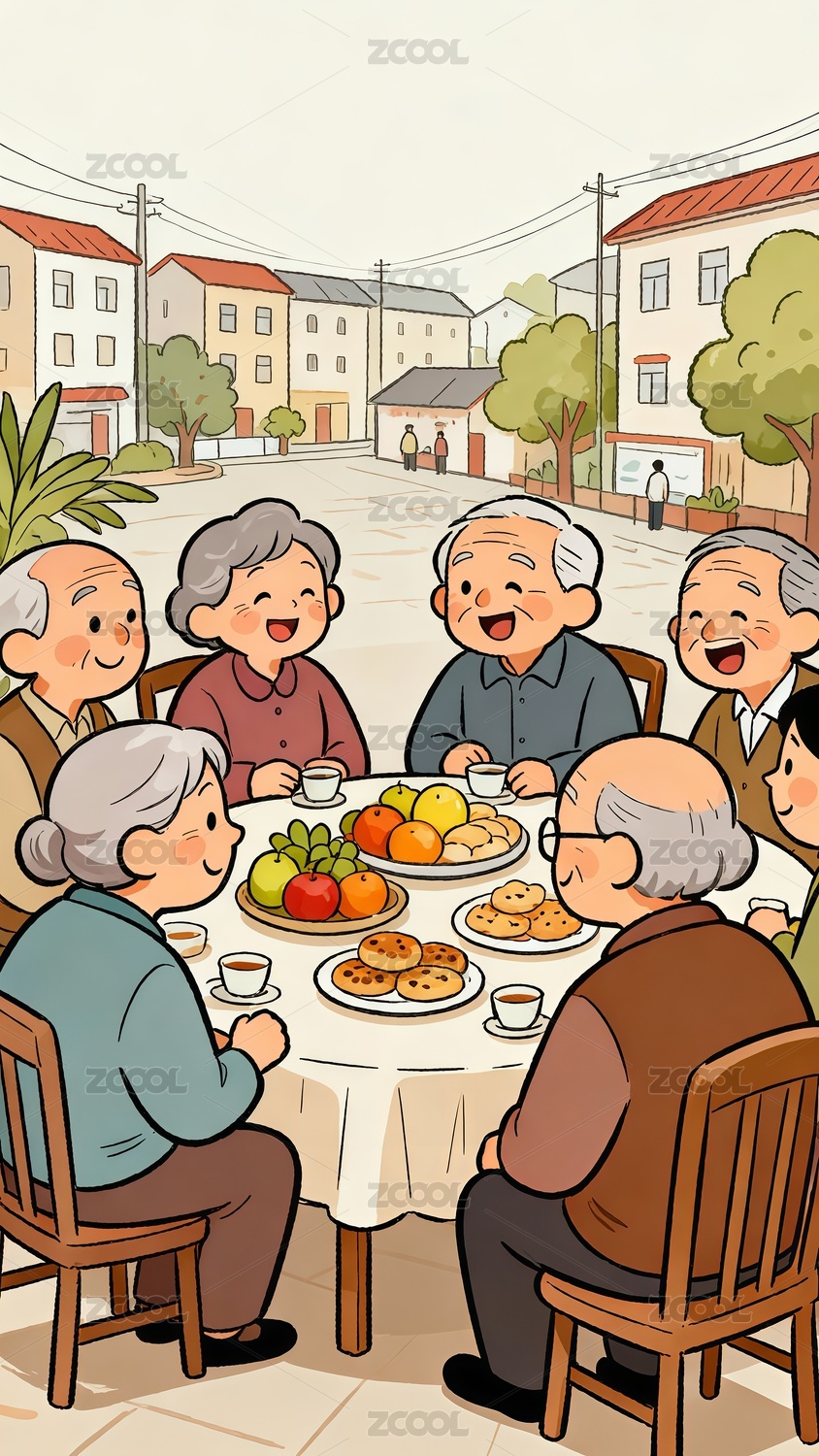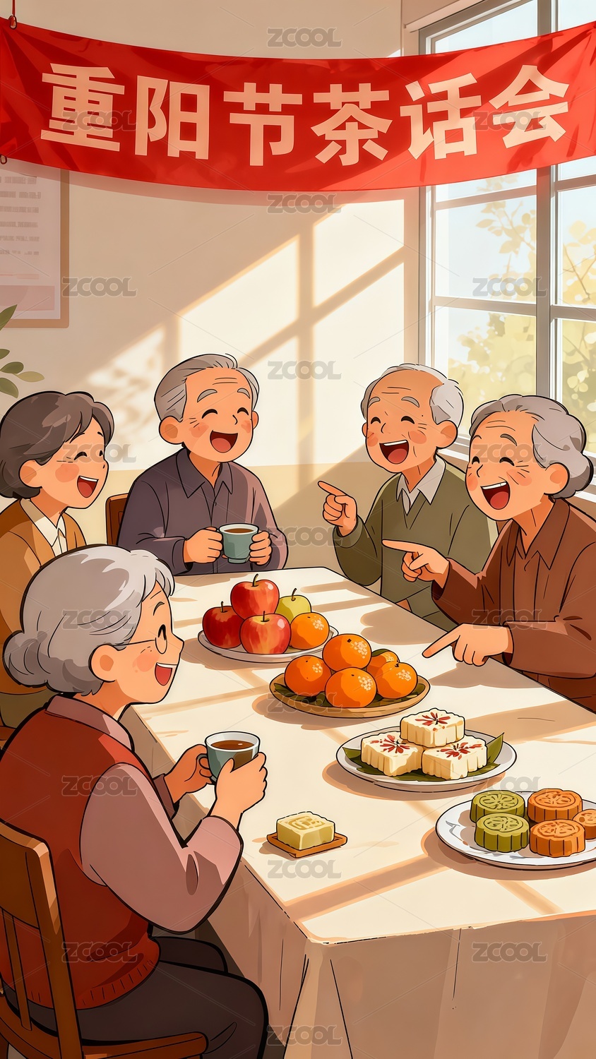老年人重陽節(jié)茶話會手繪插畫