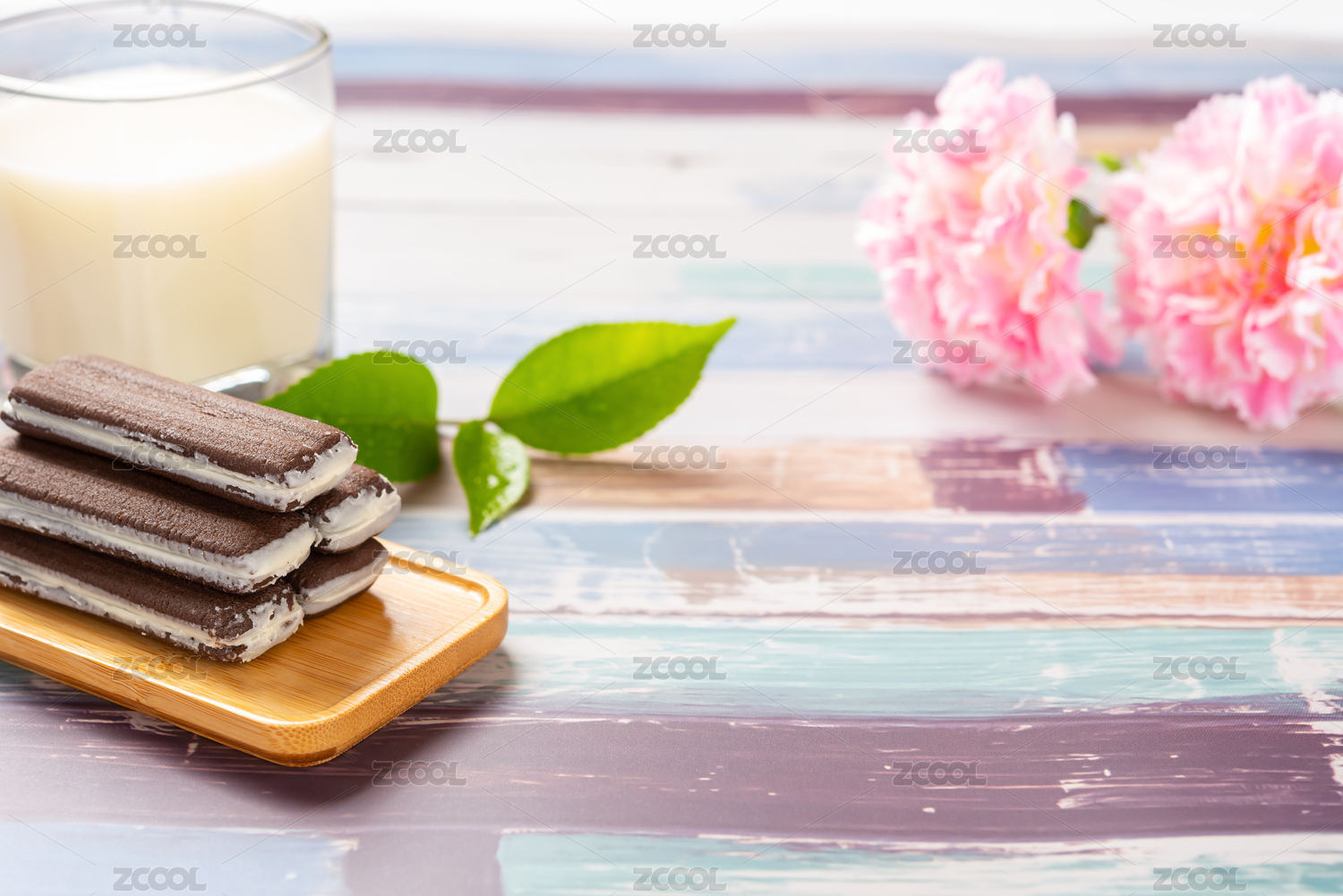 夾心餅干和牛奶早餐
