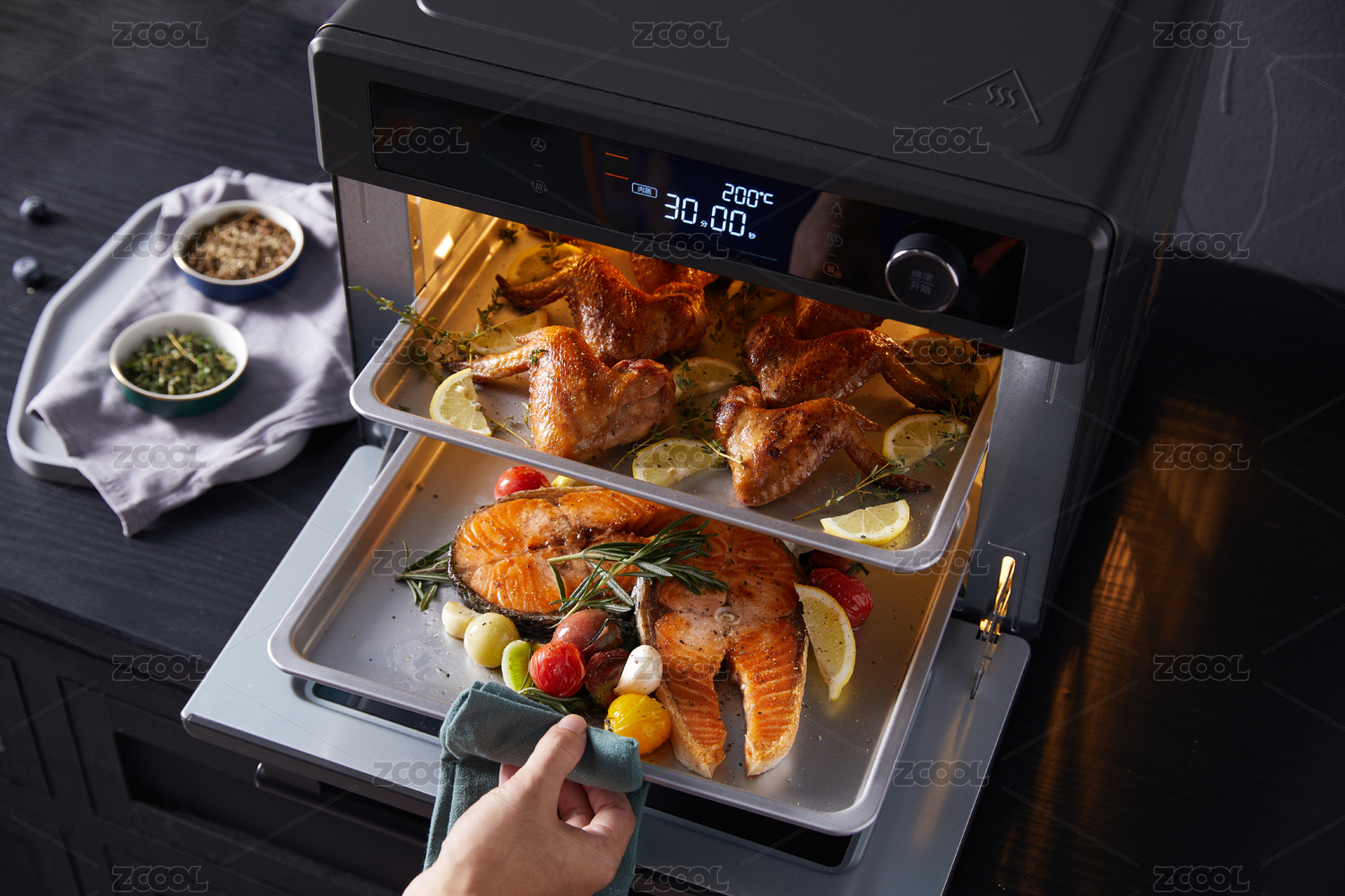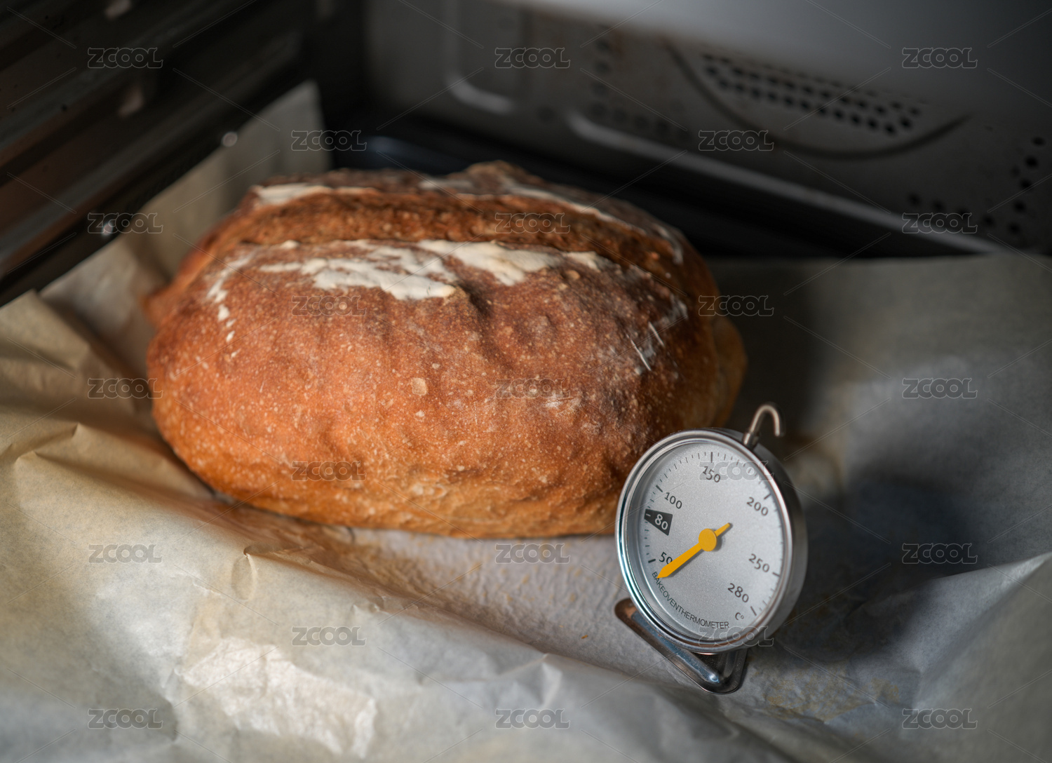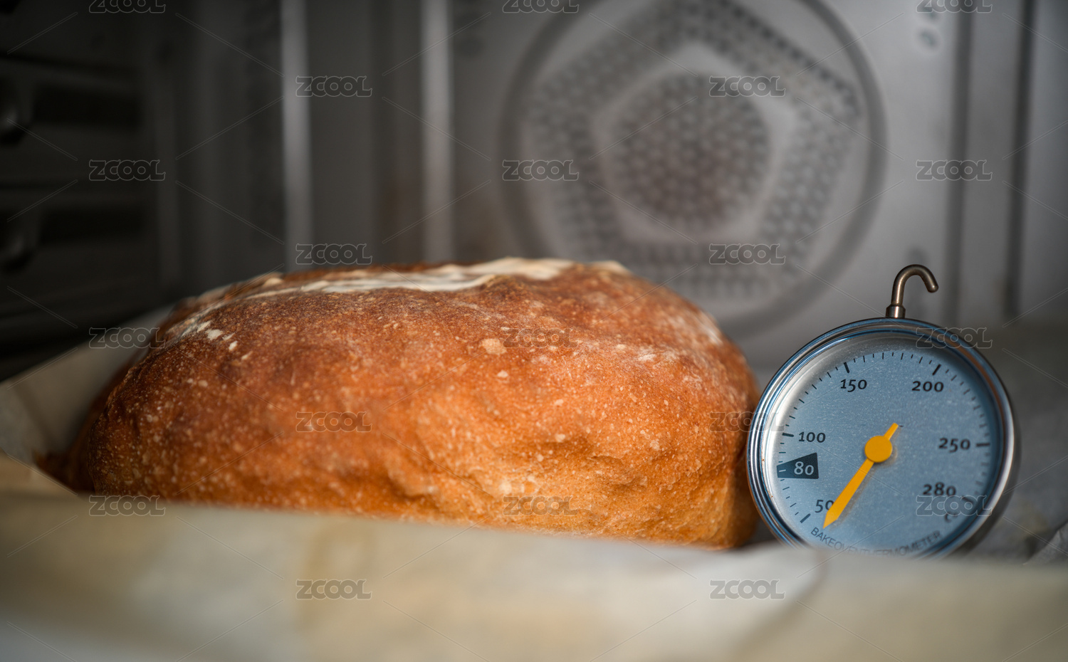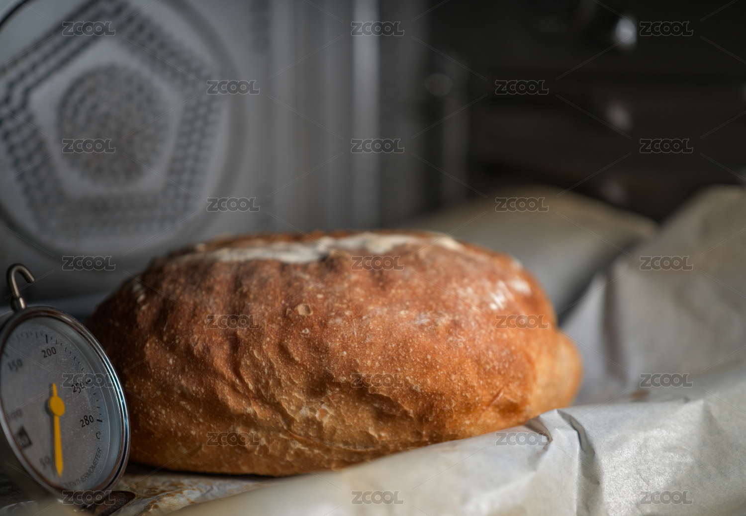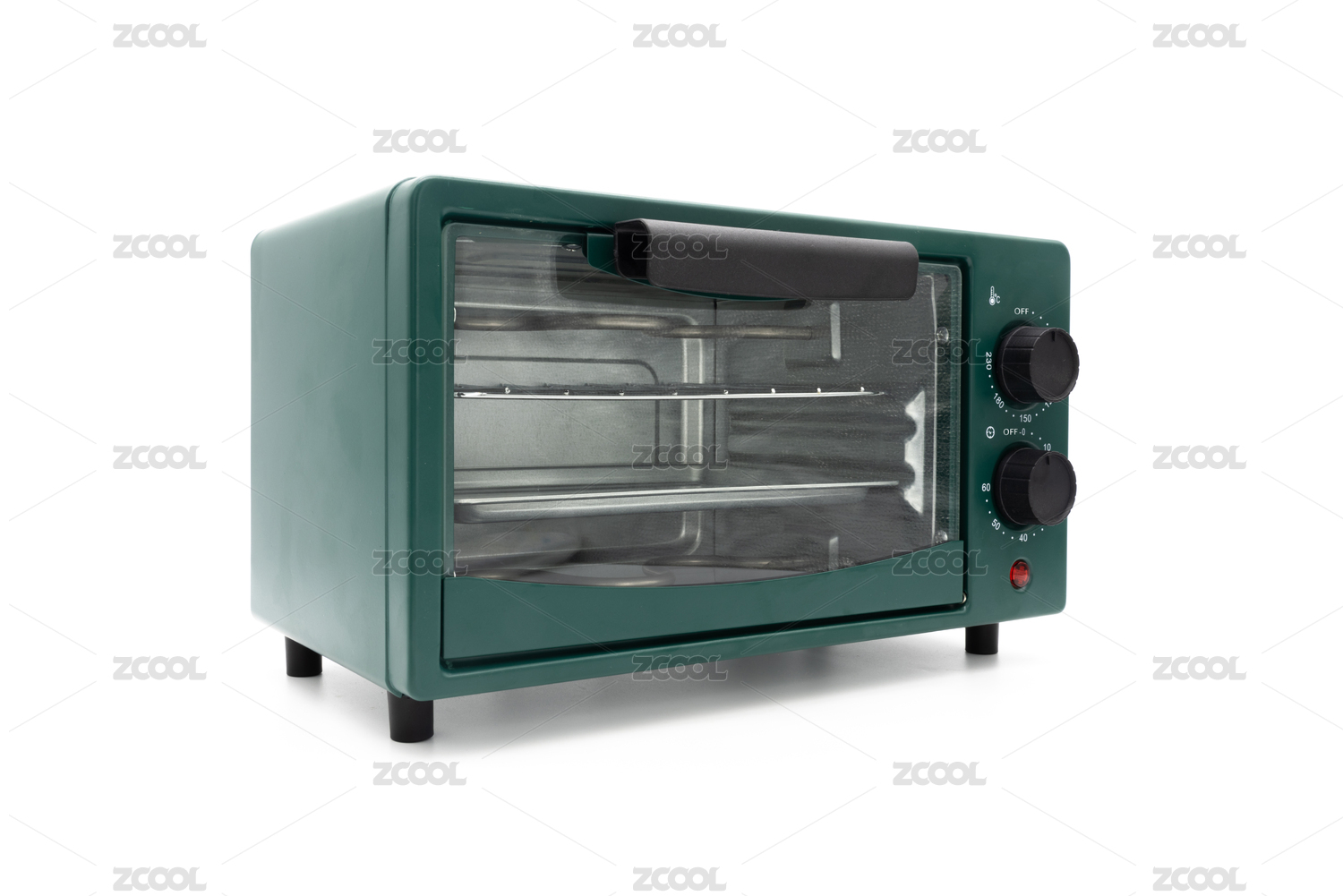 紅橙色背景白色盤子和騰空漂浮的烤箱和面包片