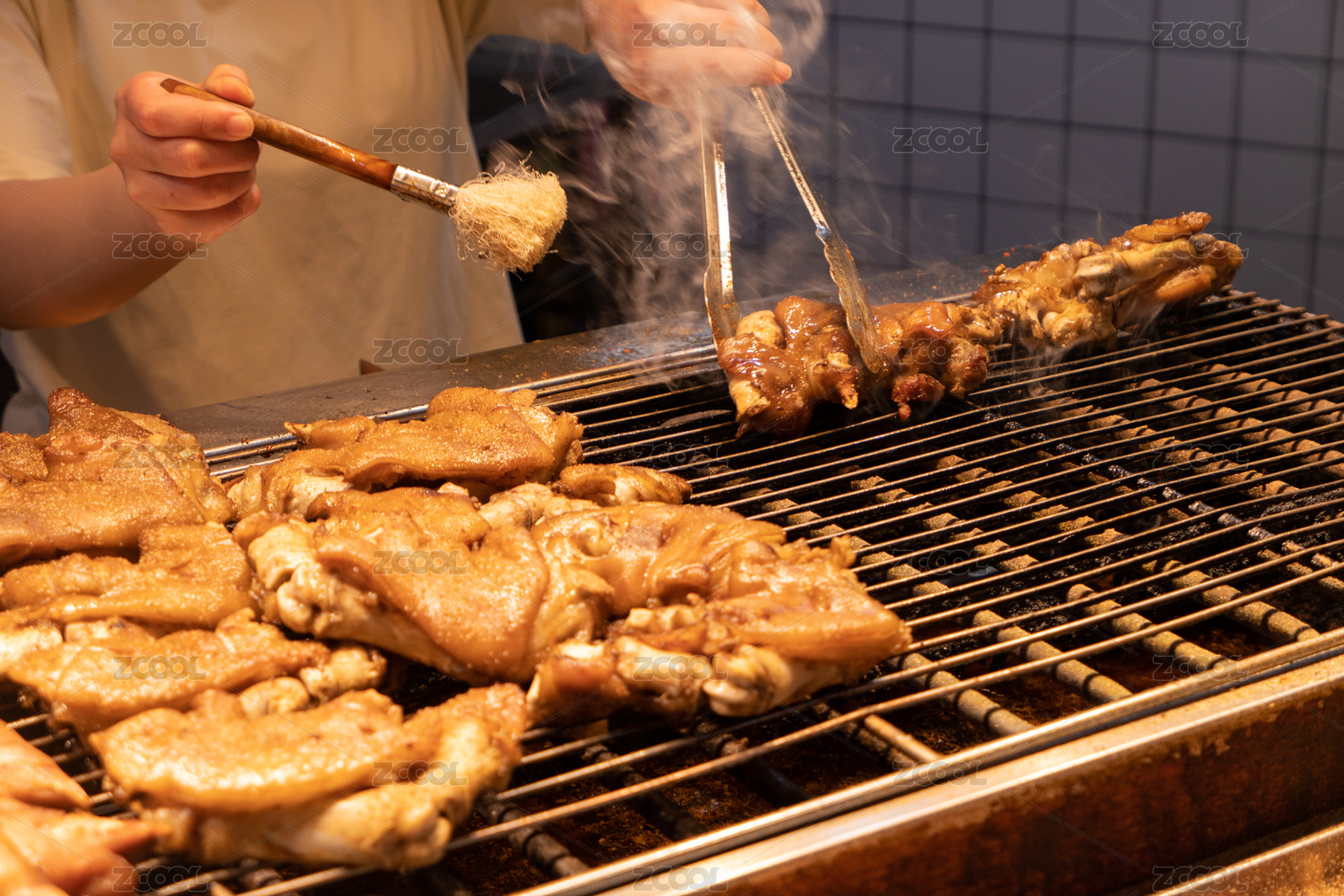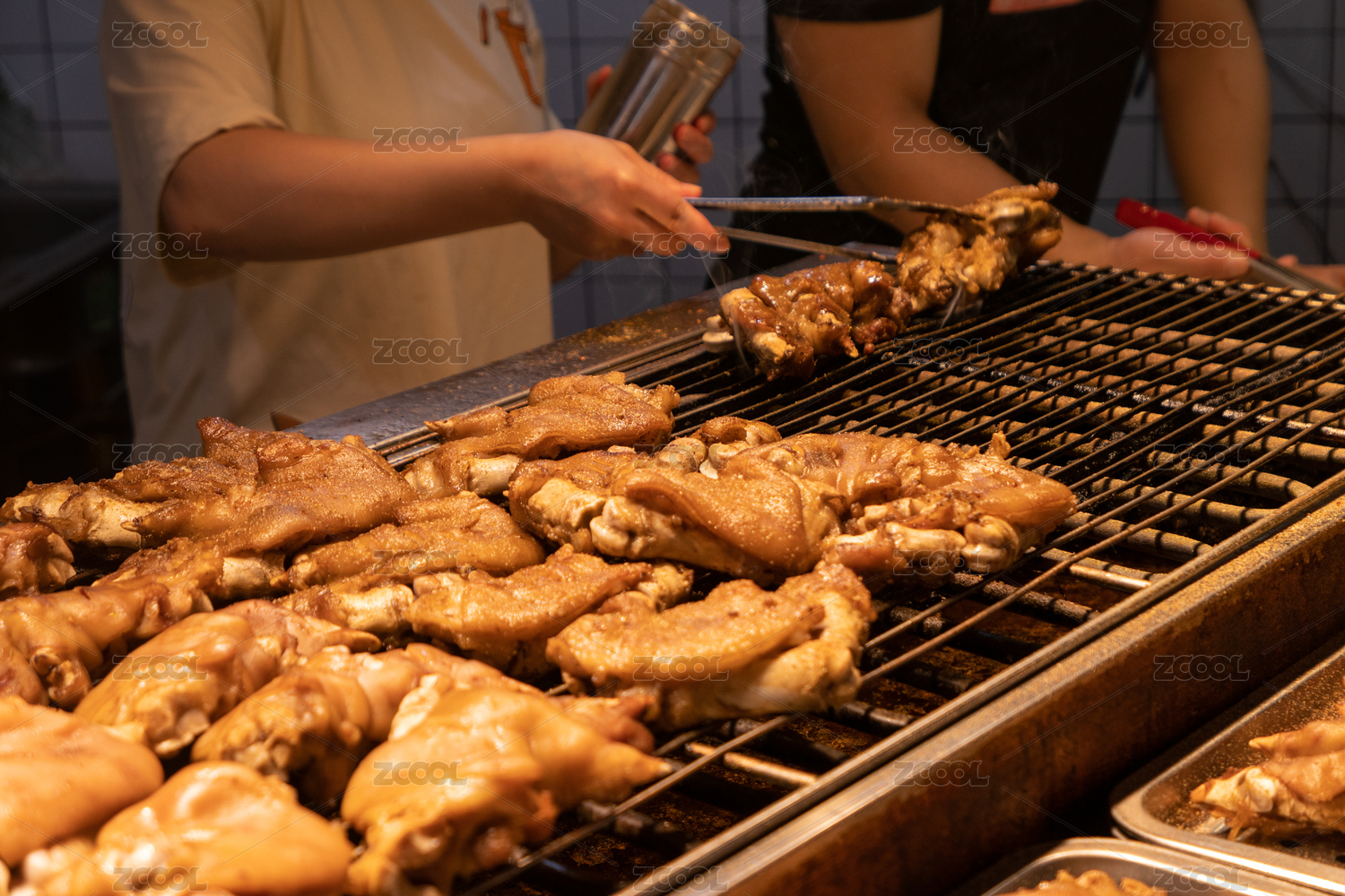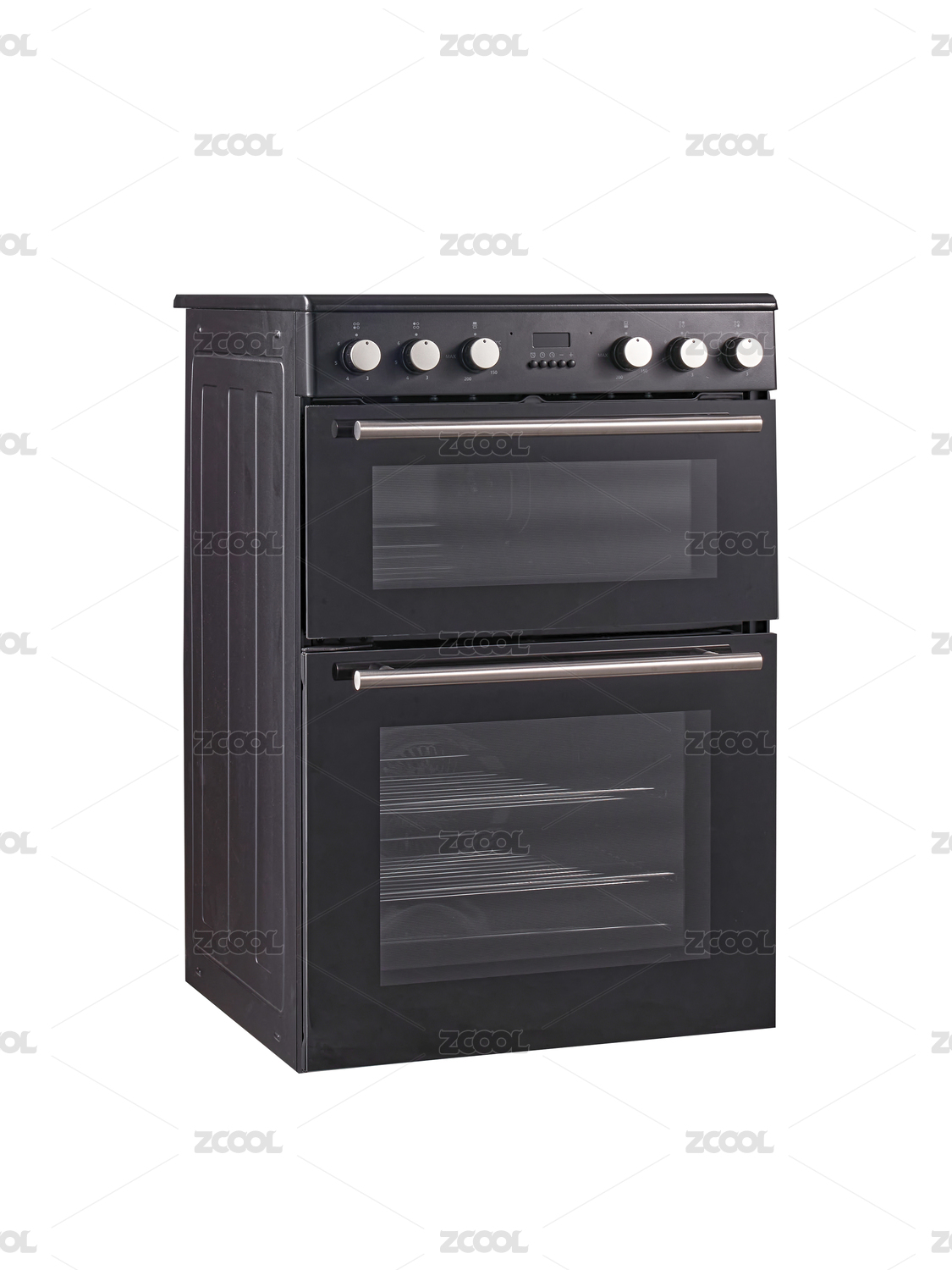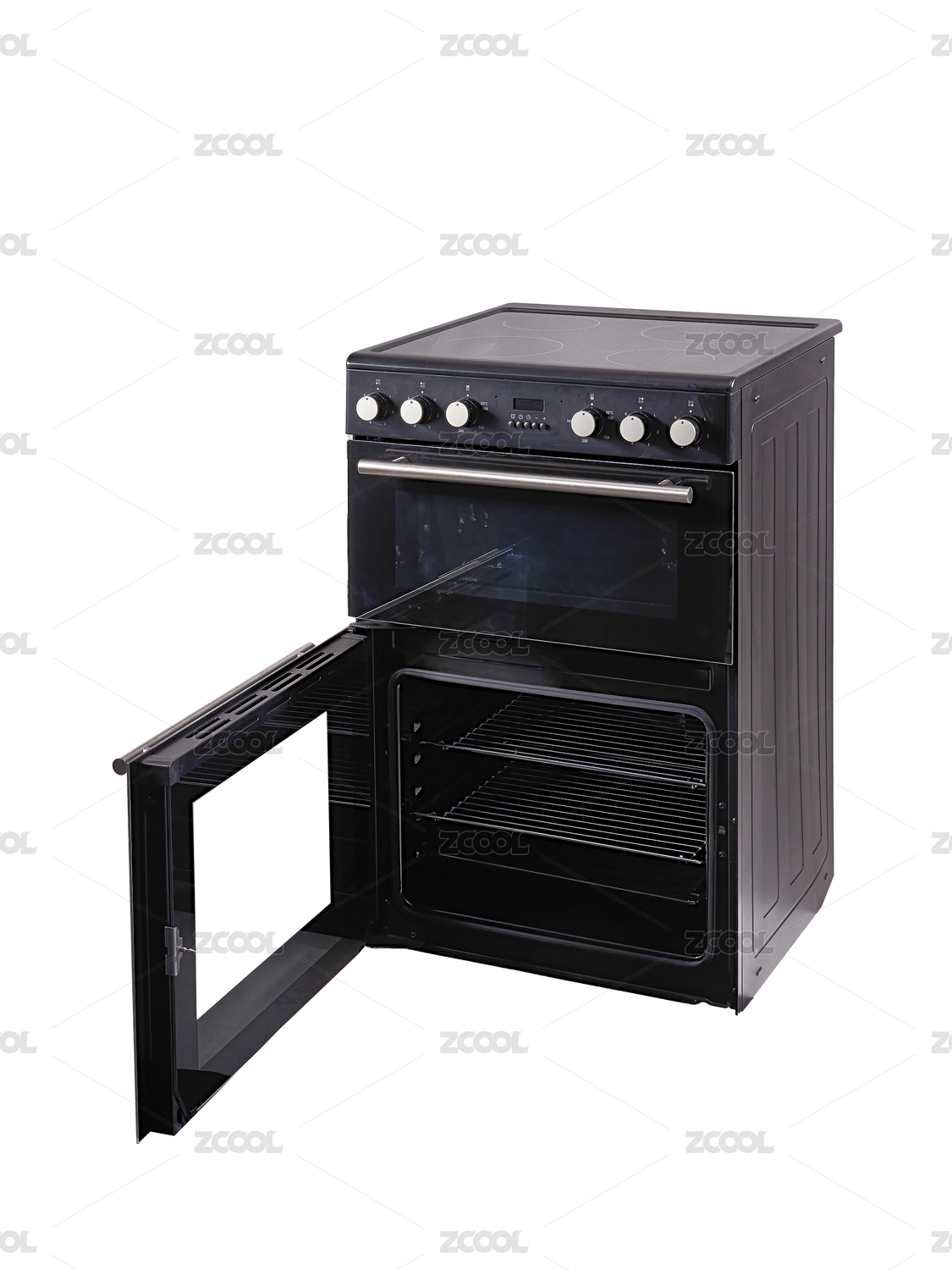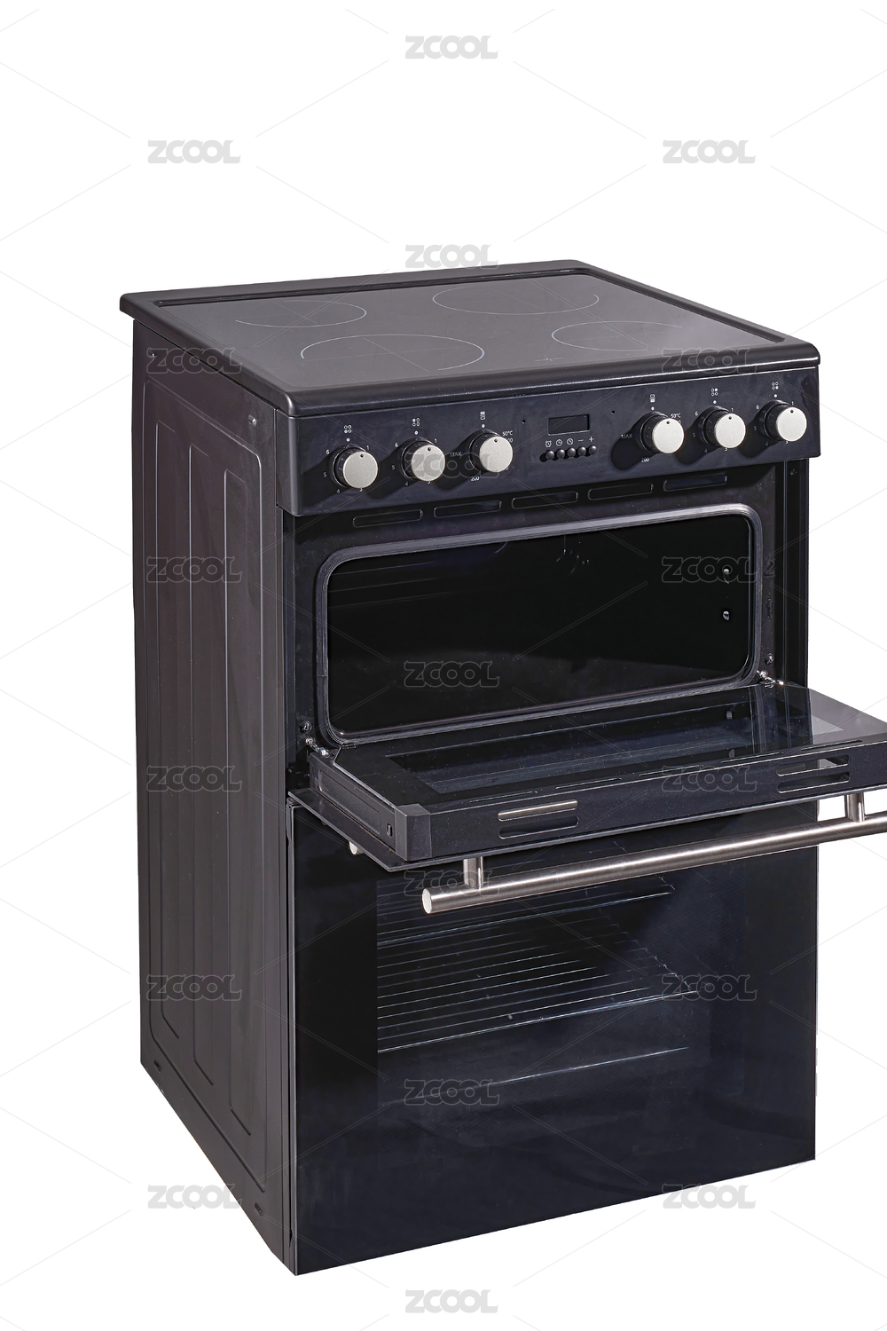 紅橙色背景白色盤子和騰空漂浮的烤箱和面包片