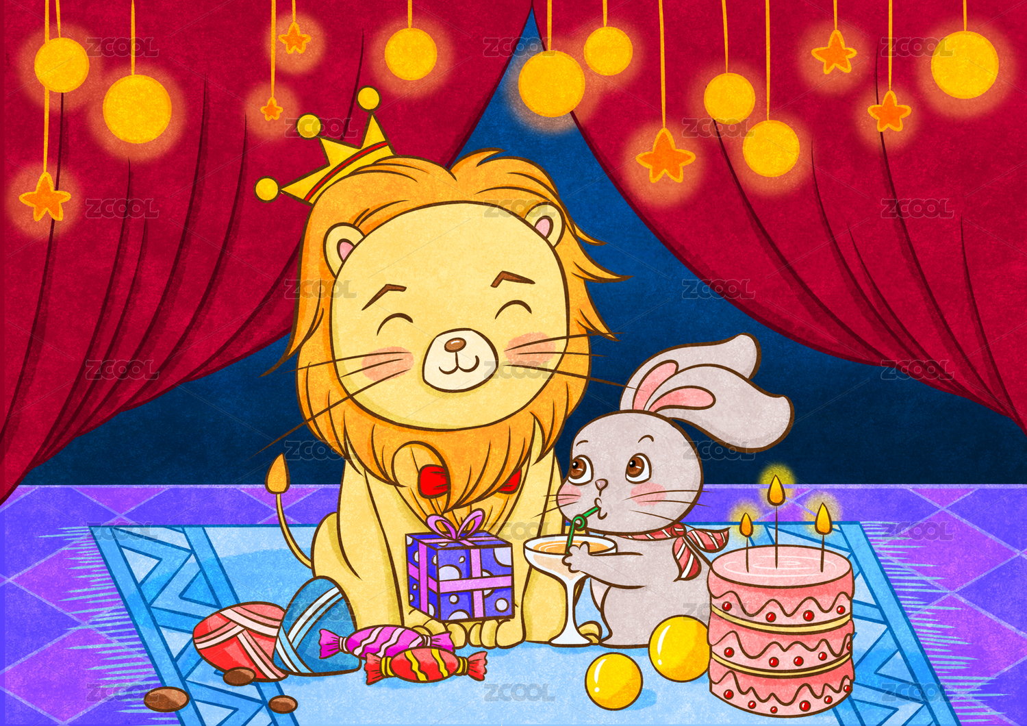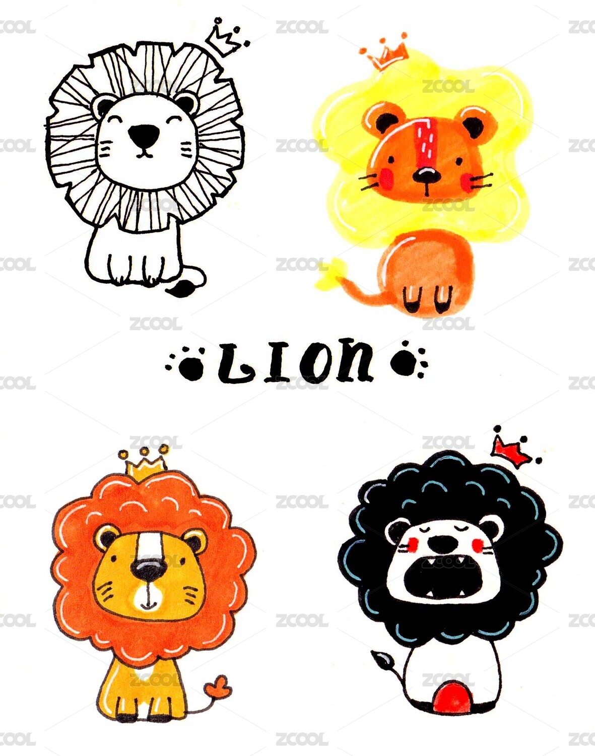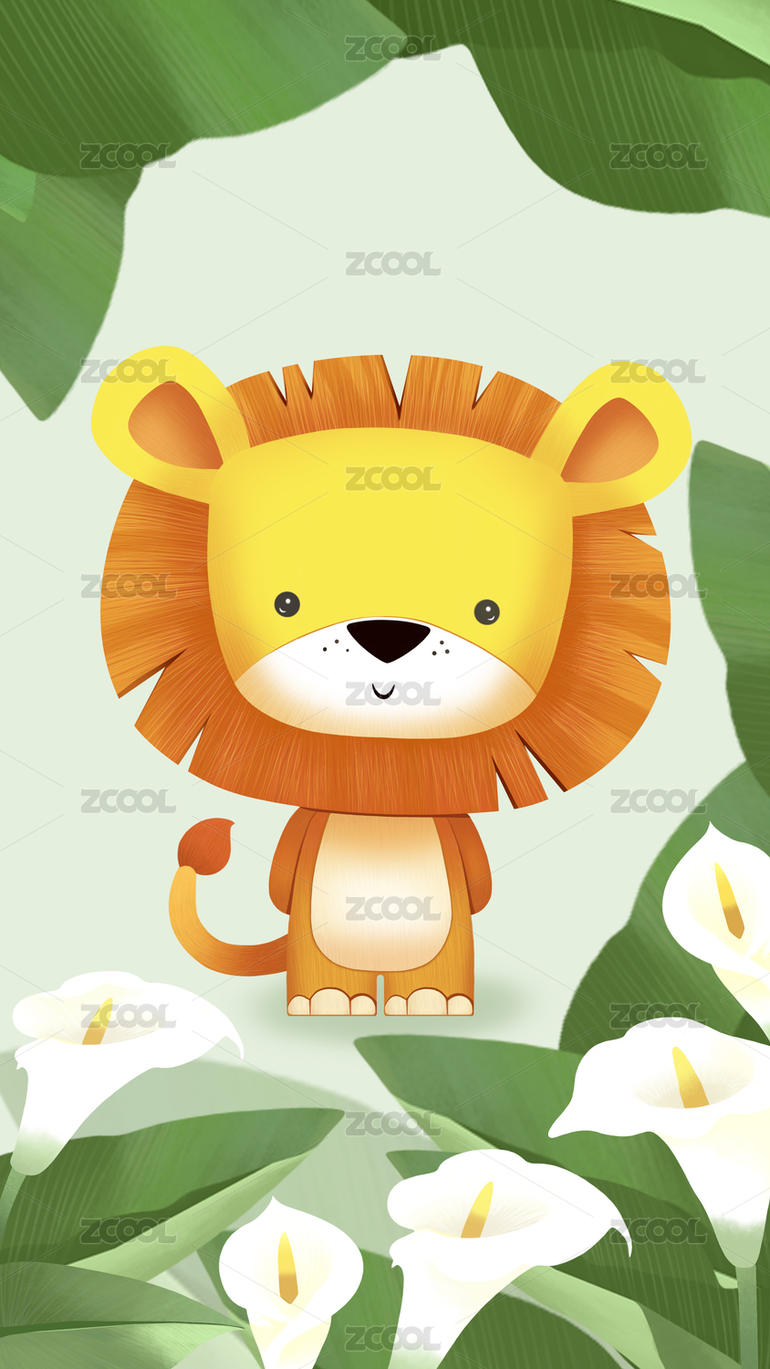 卡通可愛小獅子看圖識(shí)物動(dòng)物卡片教育插畫