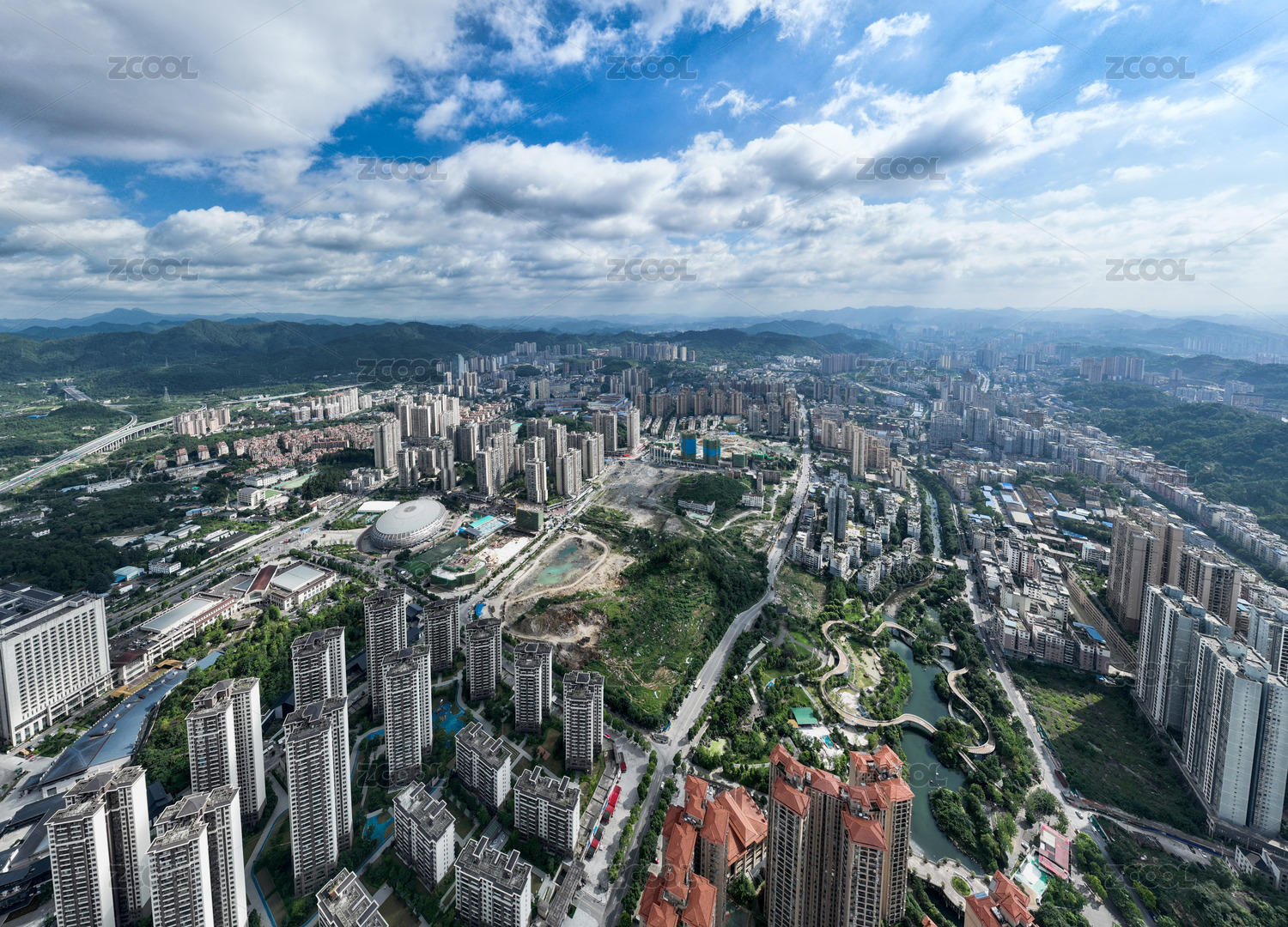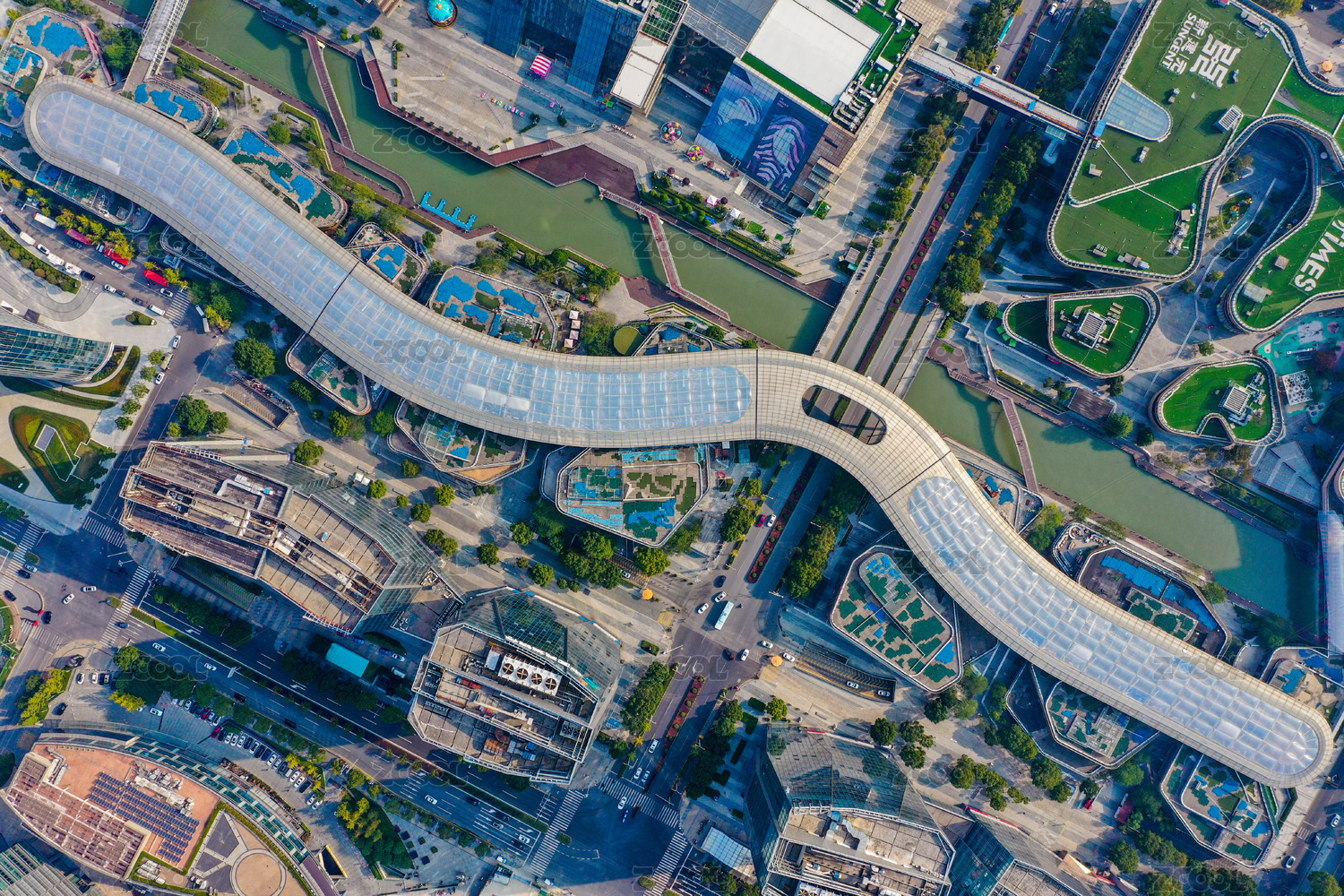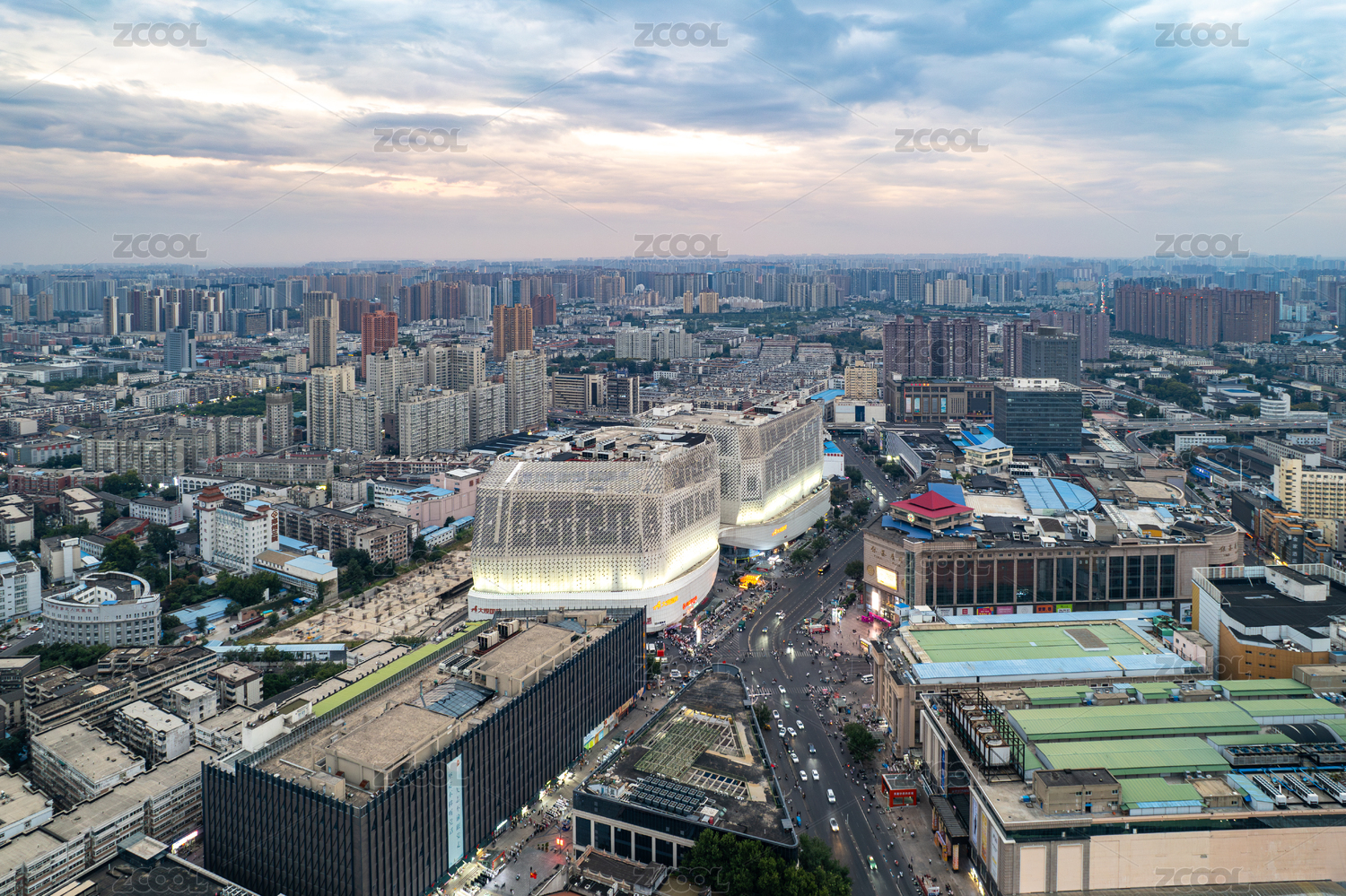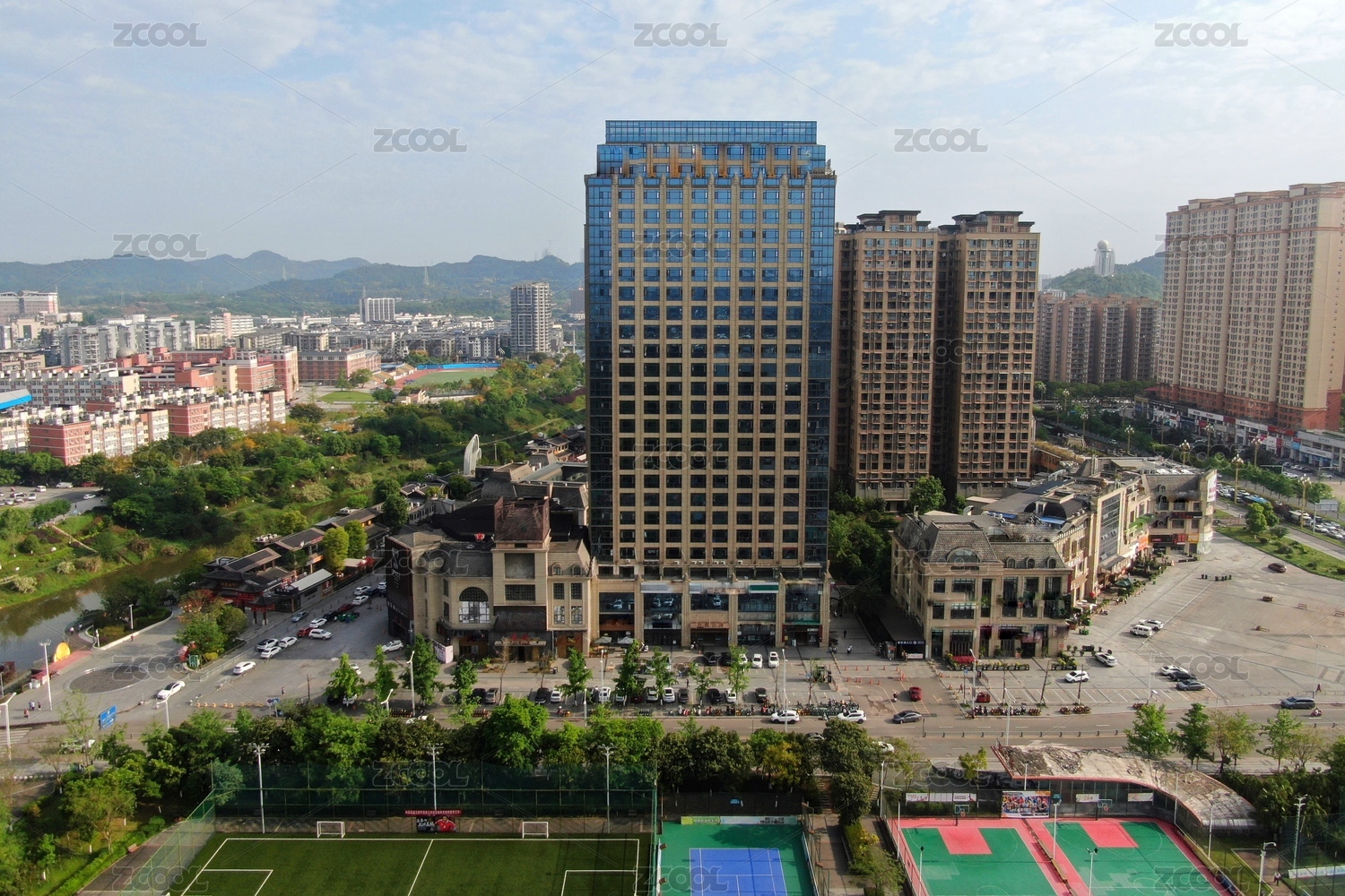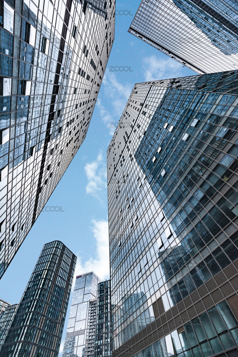 直指藍(lán)天的城市商圈建筑風(fēng)光