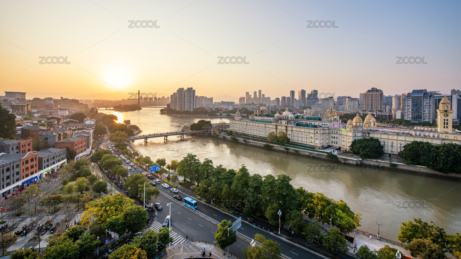 福建福州煙臺山商圈及閩江沿岸城市日落風(fēng)光