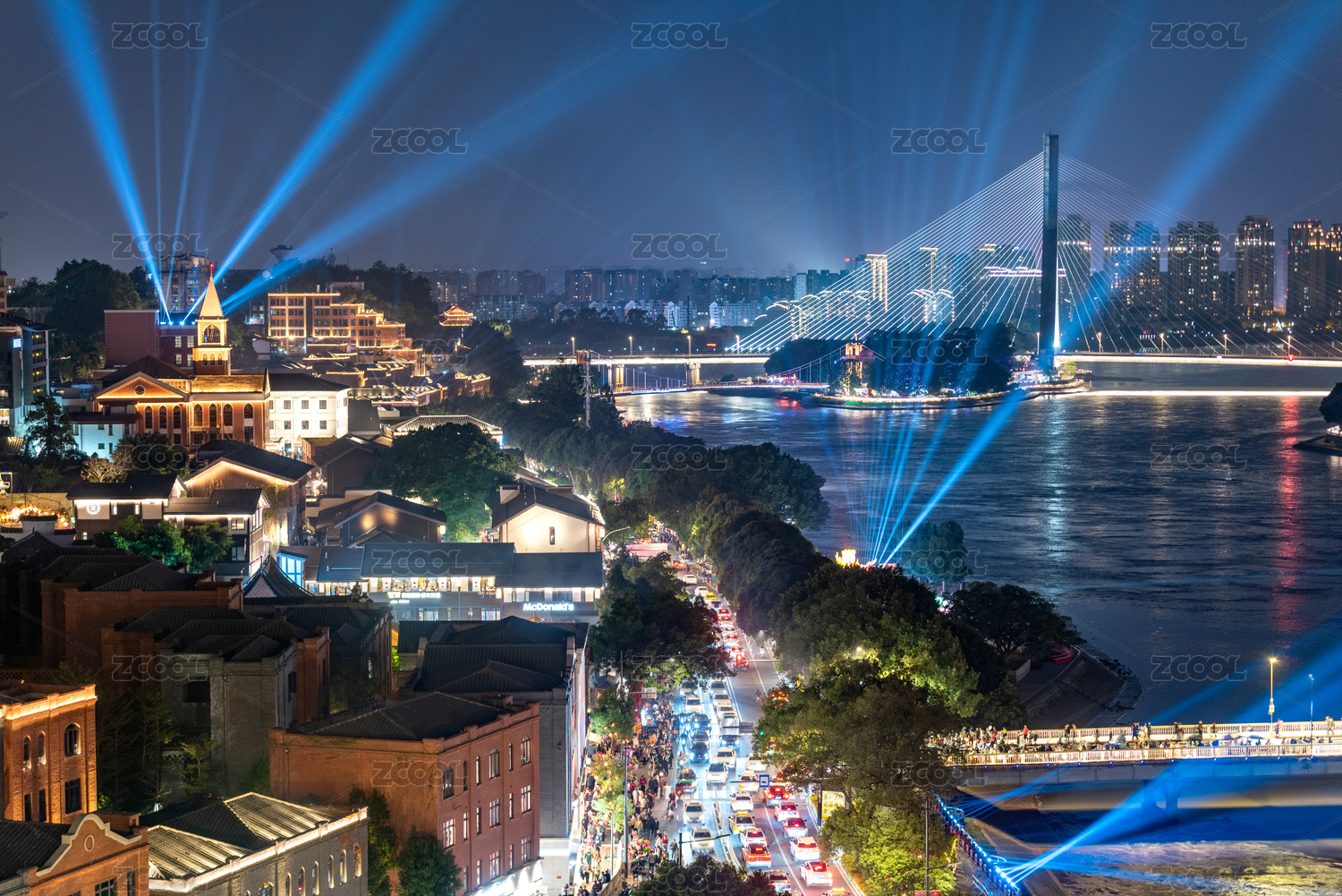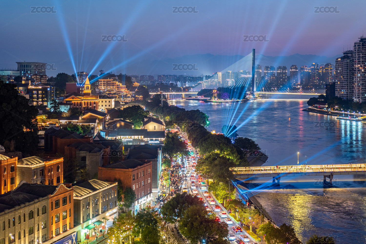 福建福州煙臺山商圈夜景及閩江沿岸城市風(fēng)光