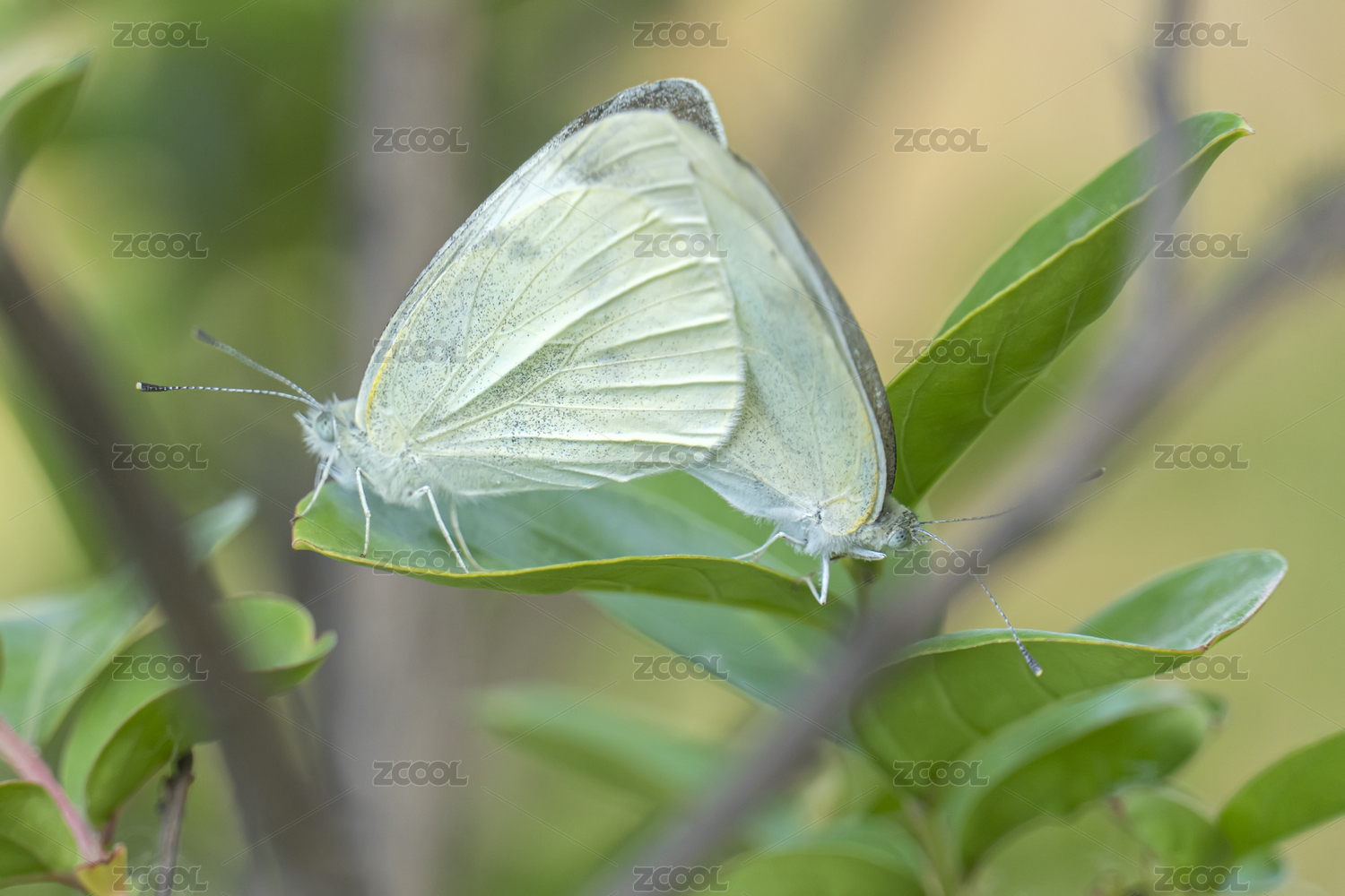 在樹葉上交尾的兩只蝴蝶