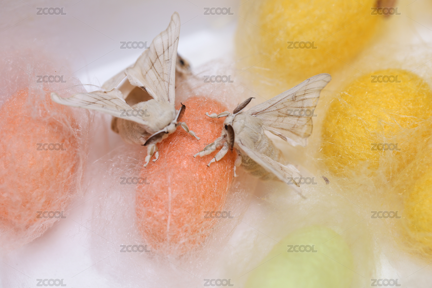 彩色的蠶繭和交尾的蠶蛾
