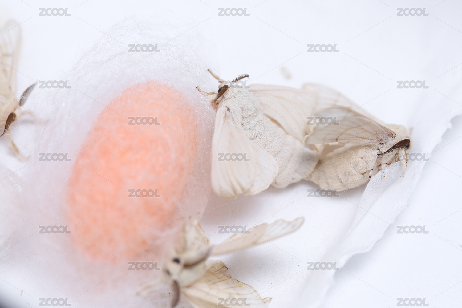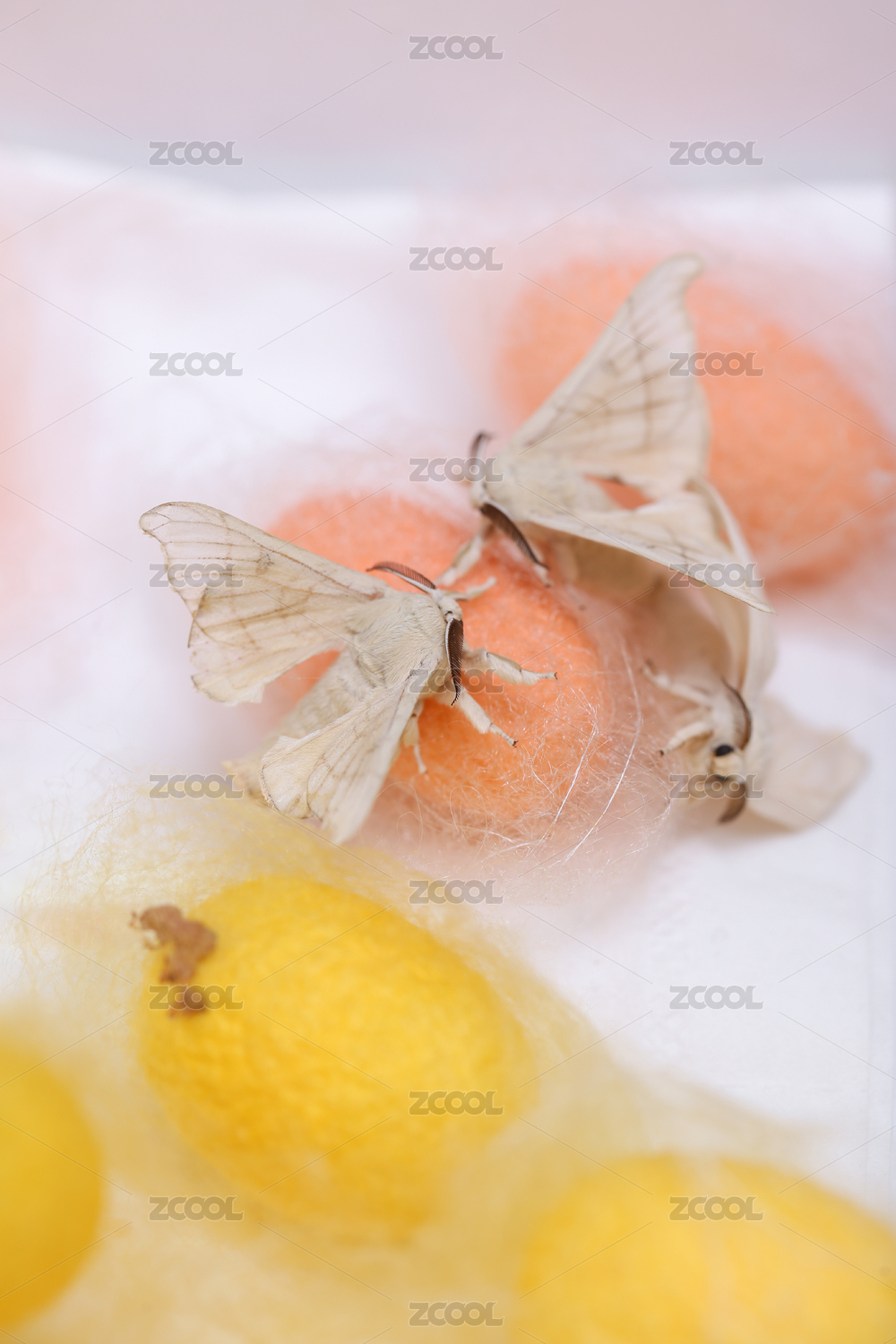 粉色的蠶繭和交尾的蠶蛾