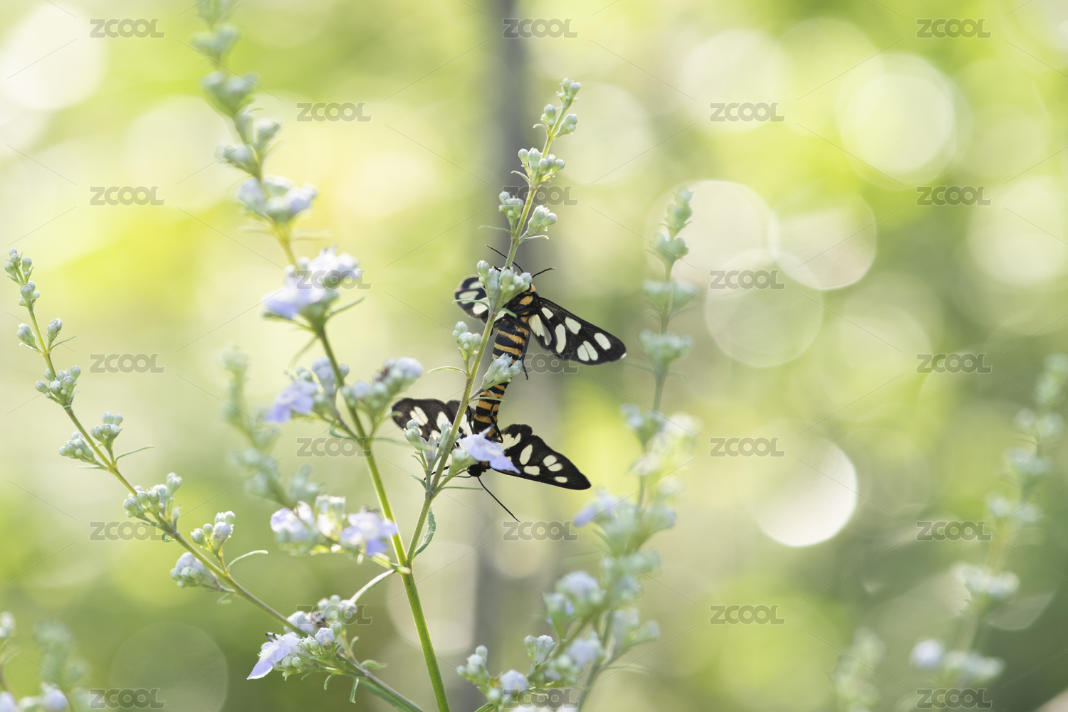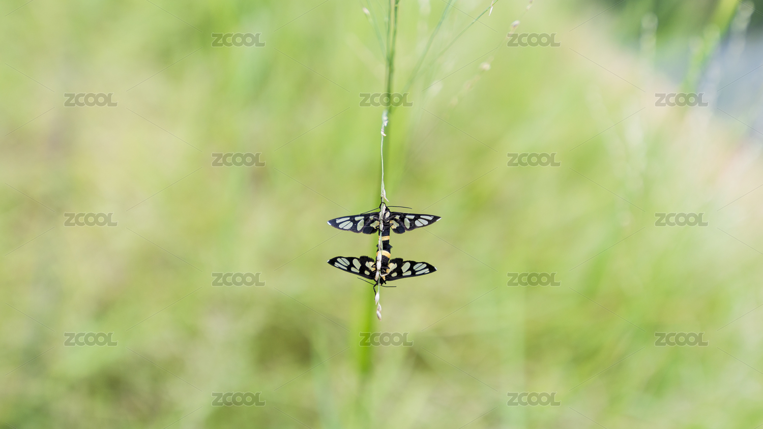 草葉上兩只正在交尾的鹿蛾