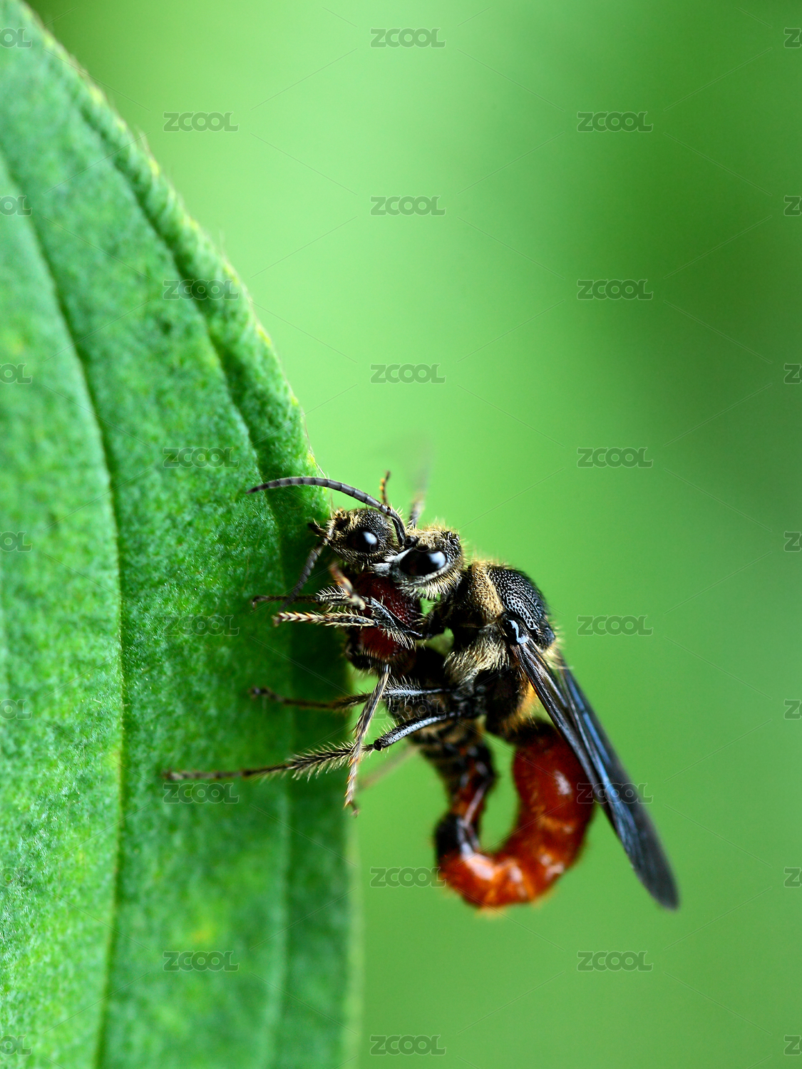 綠葉上的交尾的土蜂