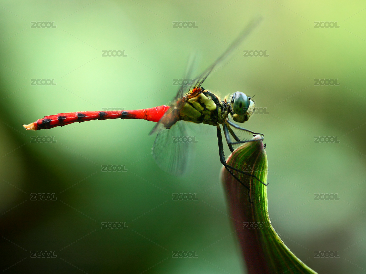兩只蜻蜓(黑尾灰蜻)在葉子上交尾