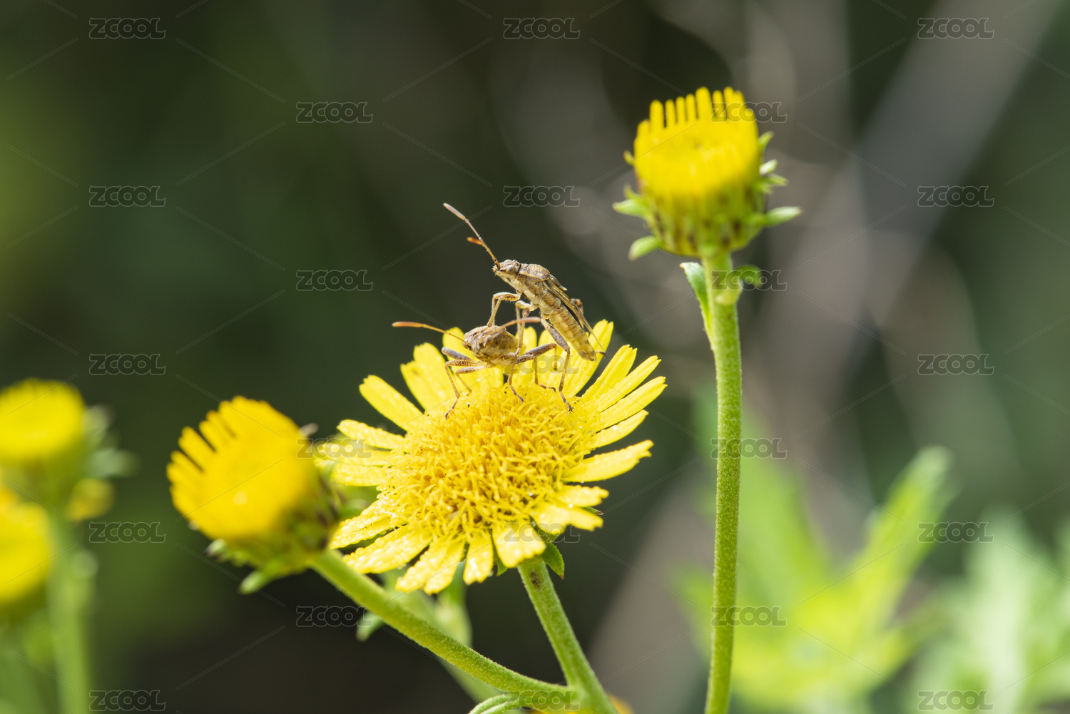 在旋覆花上正在交尾的蝽