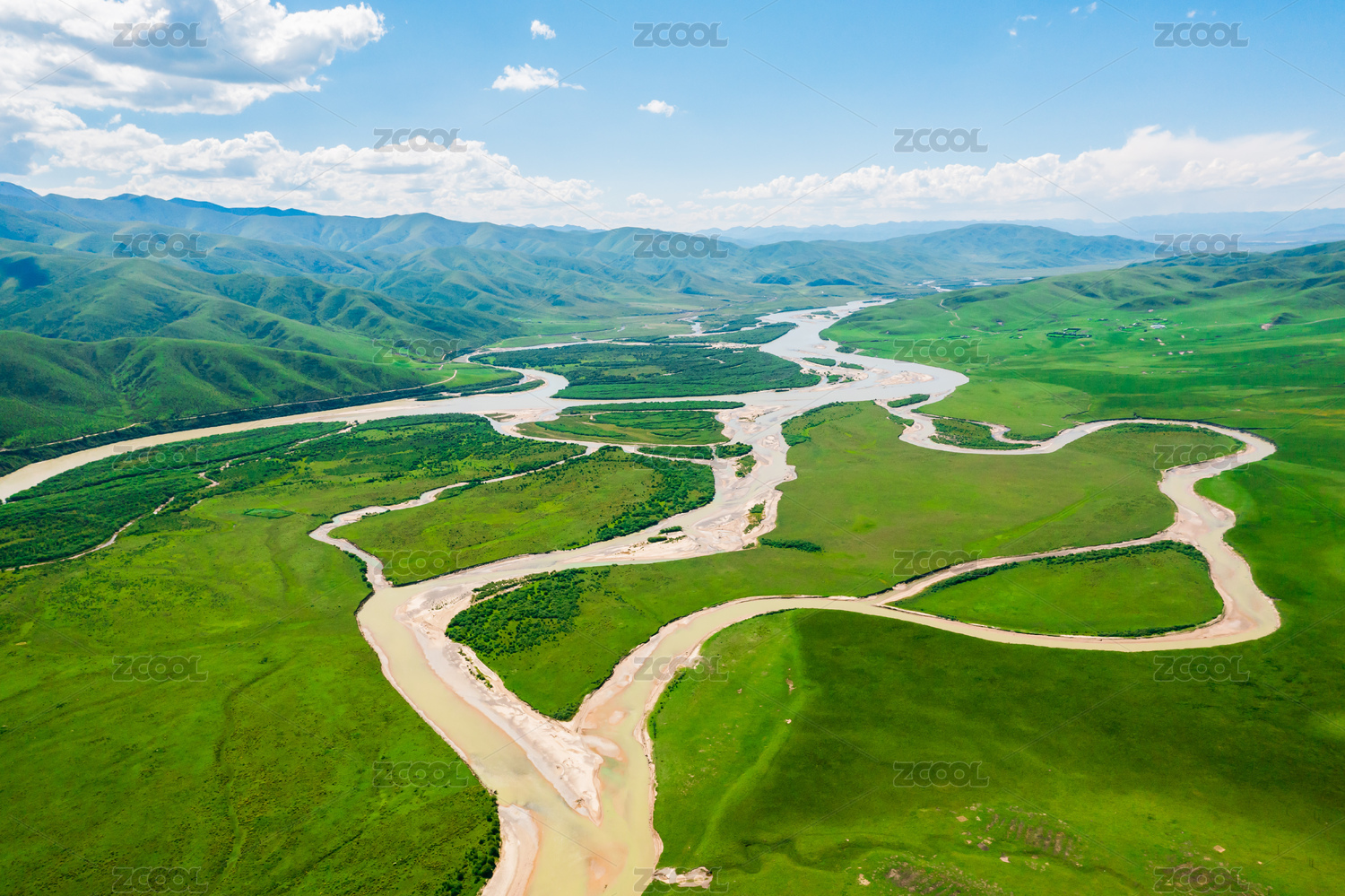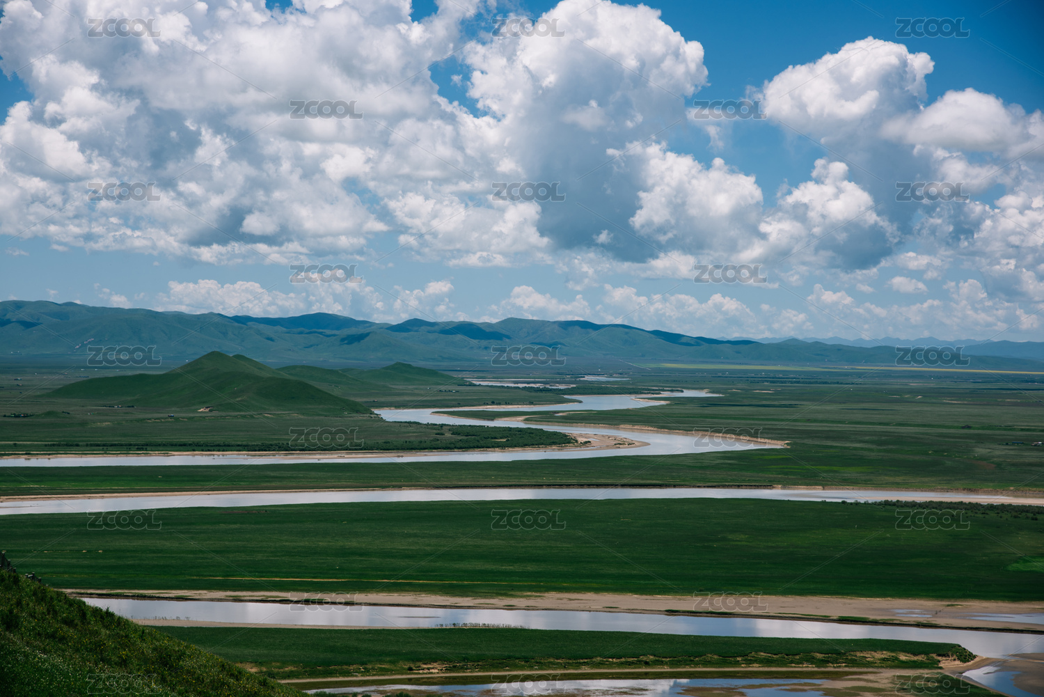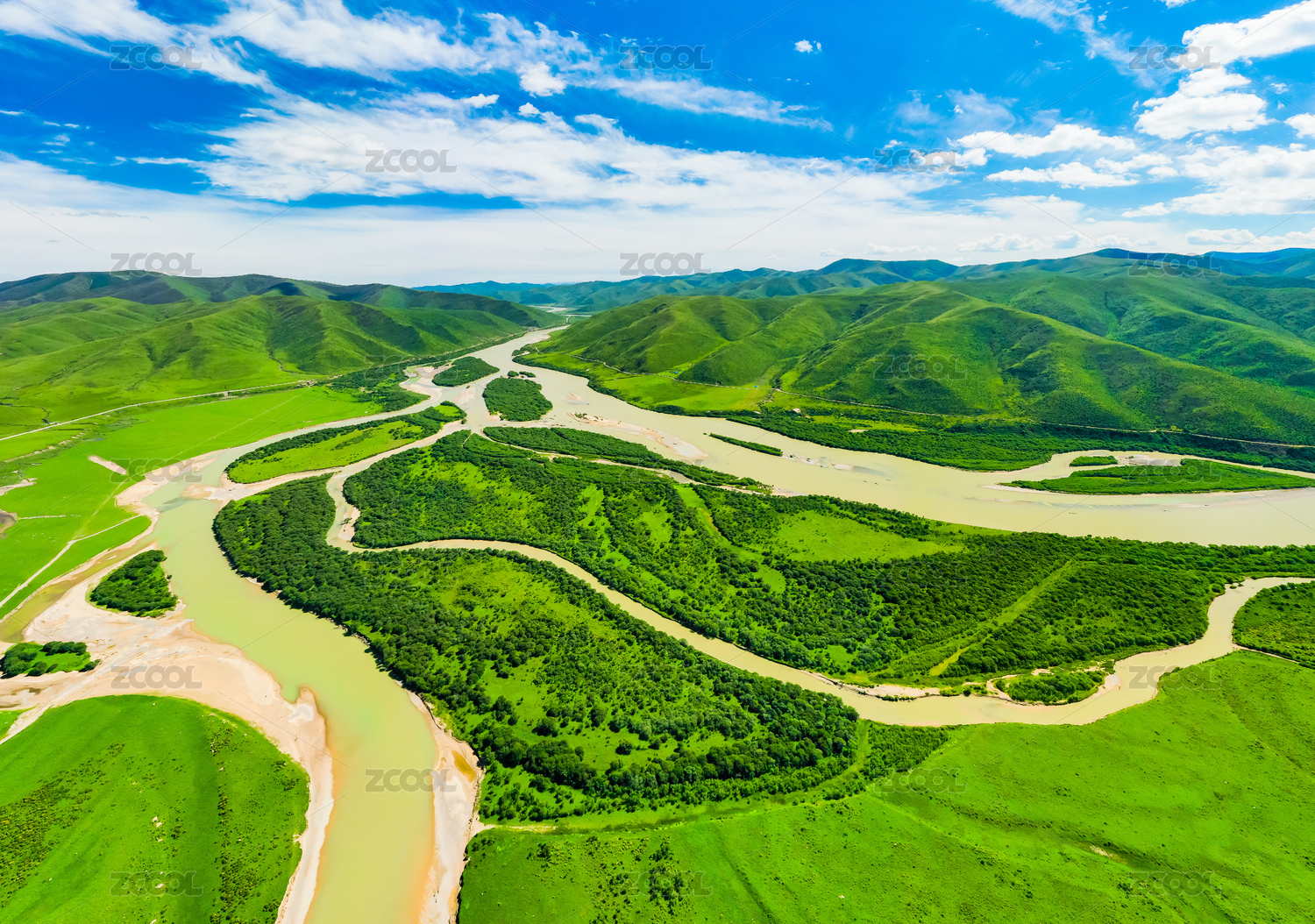 航拍九曲黃河第一灣位于四川若爾蓋草原