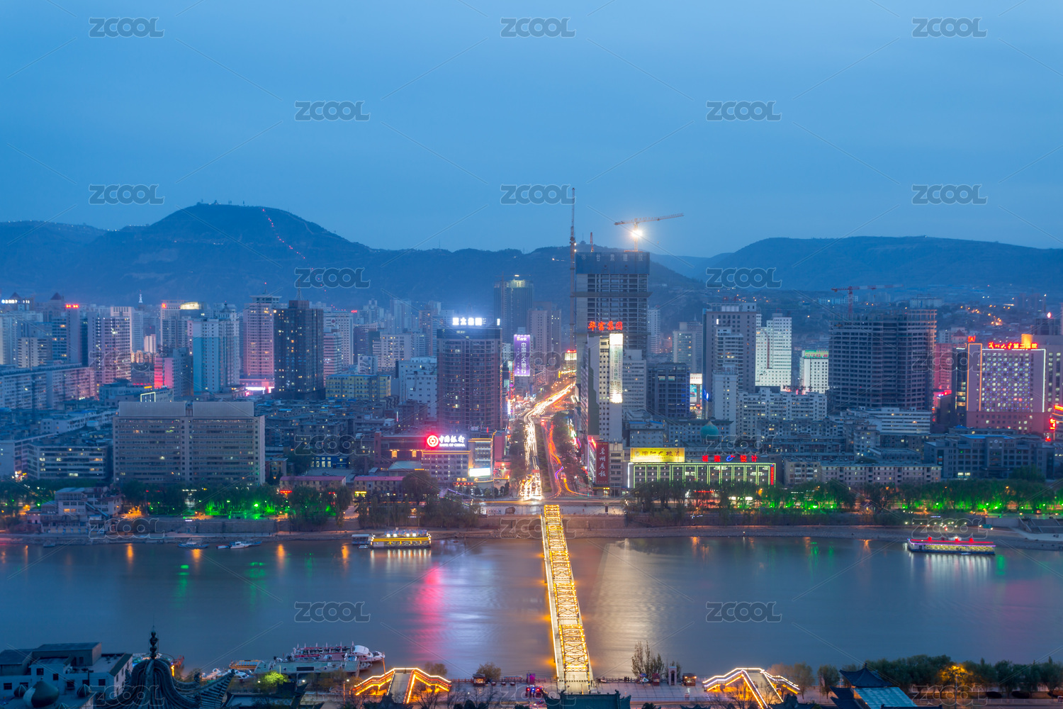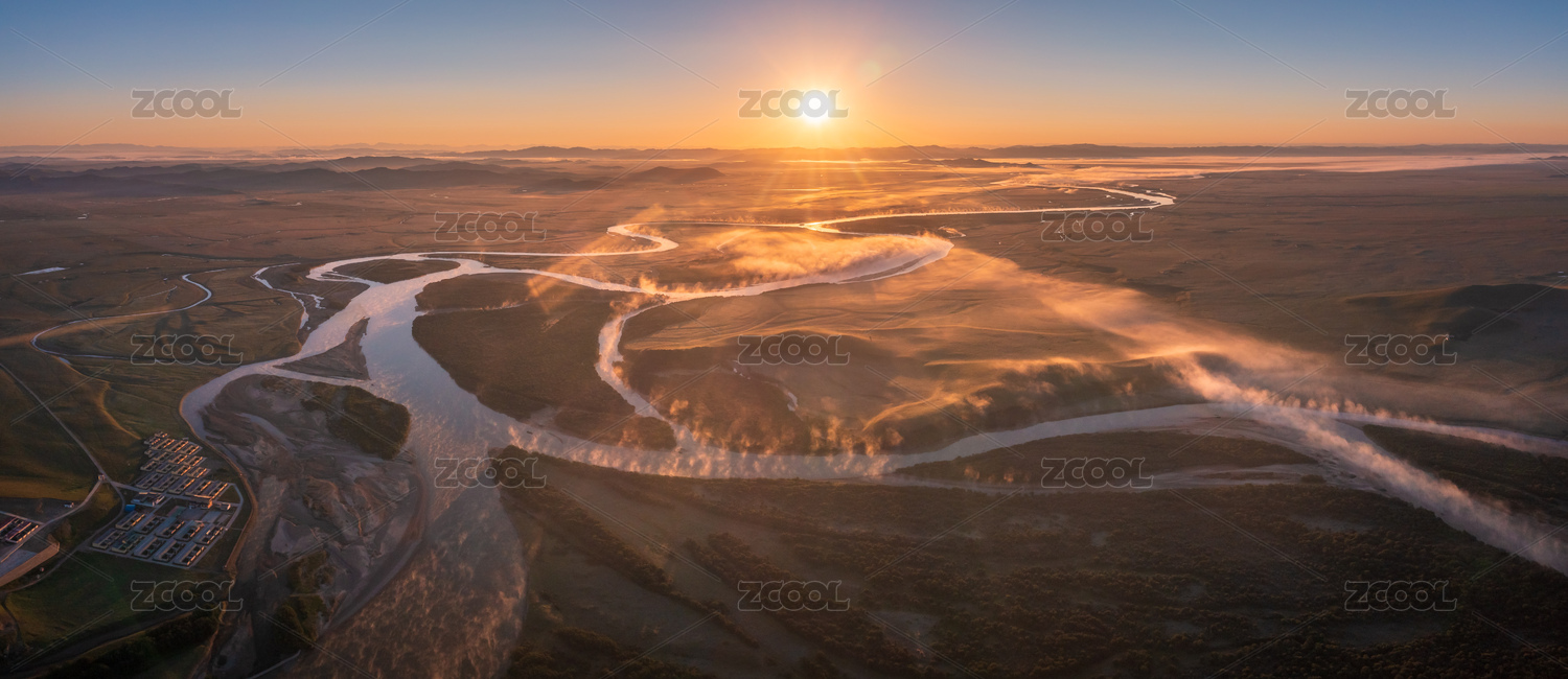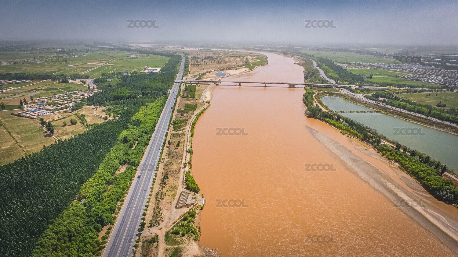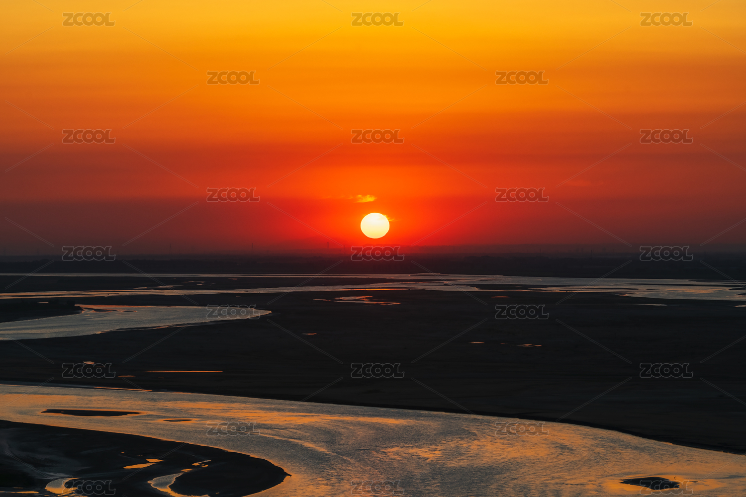 中國黃河河南鄭州段夏季日落風光戶外高視角