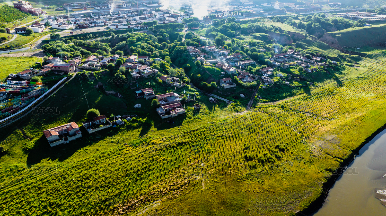 川西若爾蓋九曲黃河第一彎清晨山川河流民居