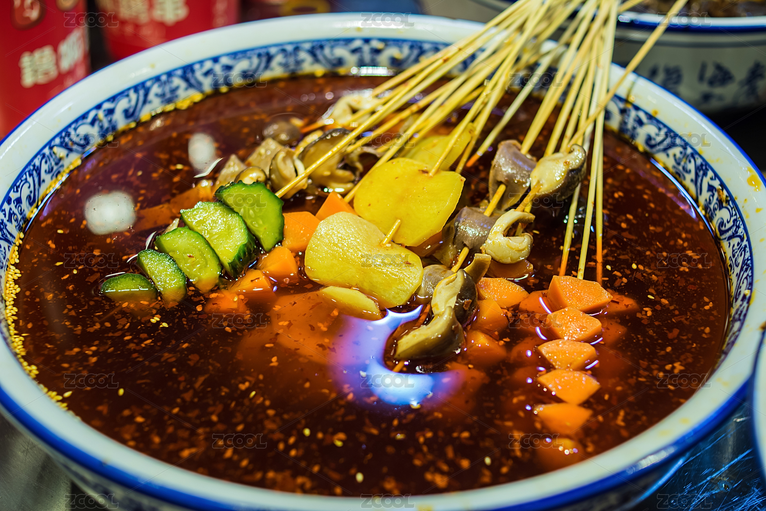 湖南長(zhǎng)沙美食街的麻辣串
