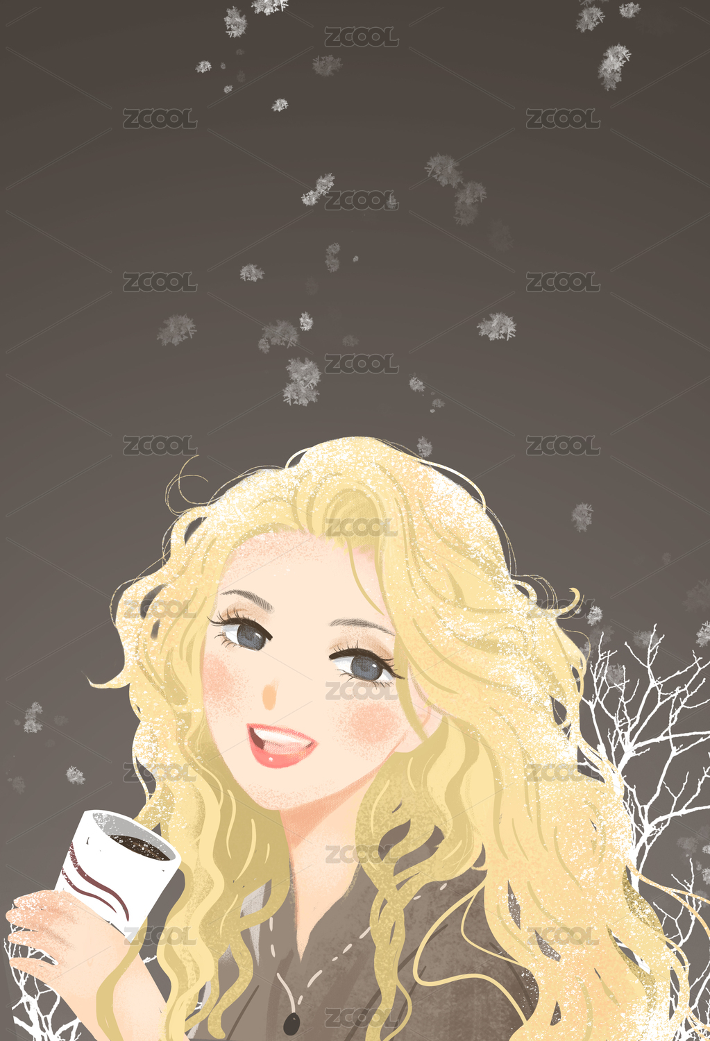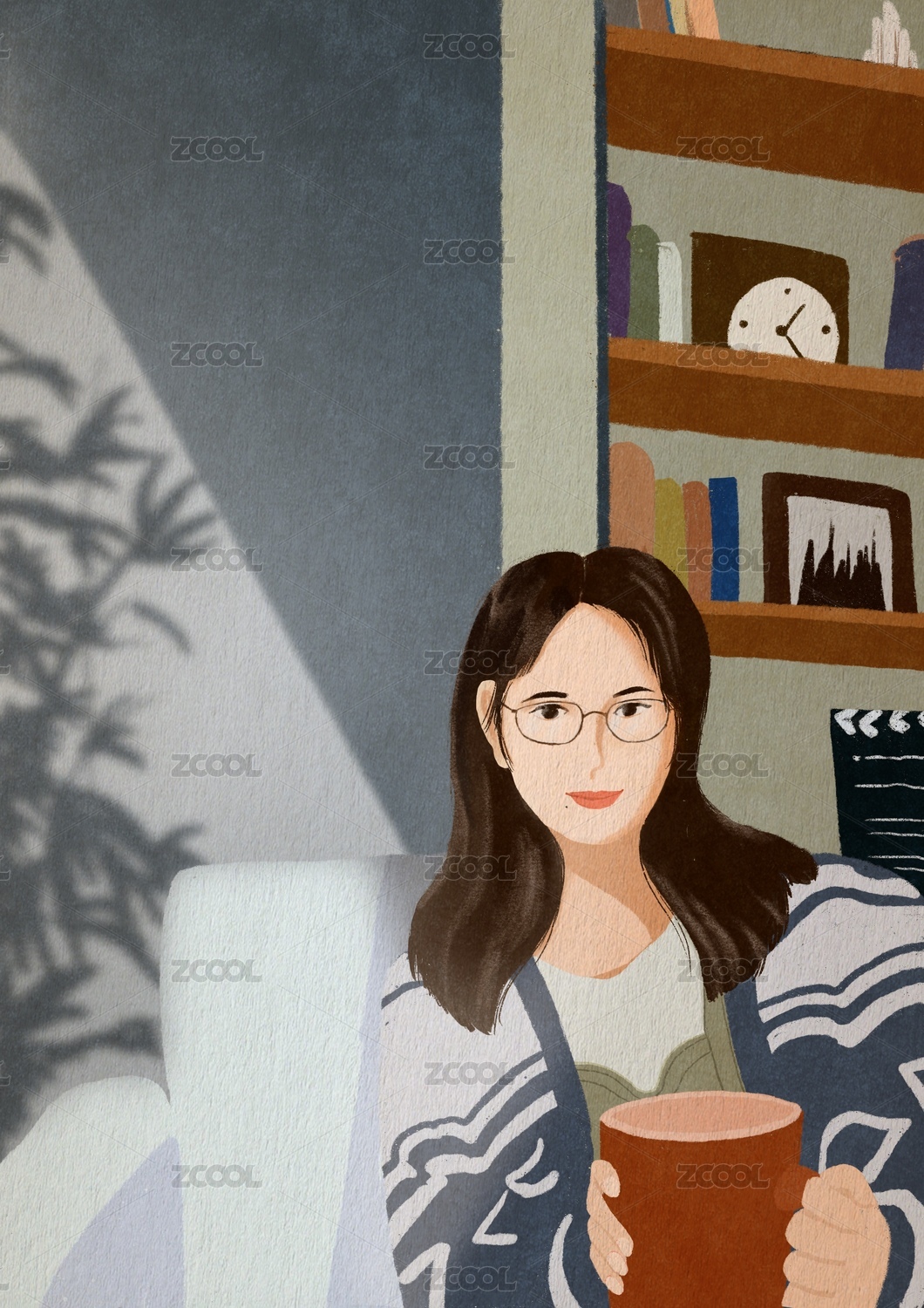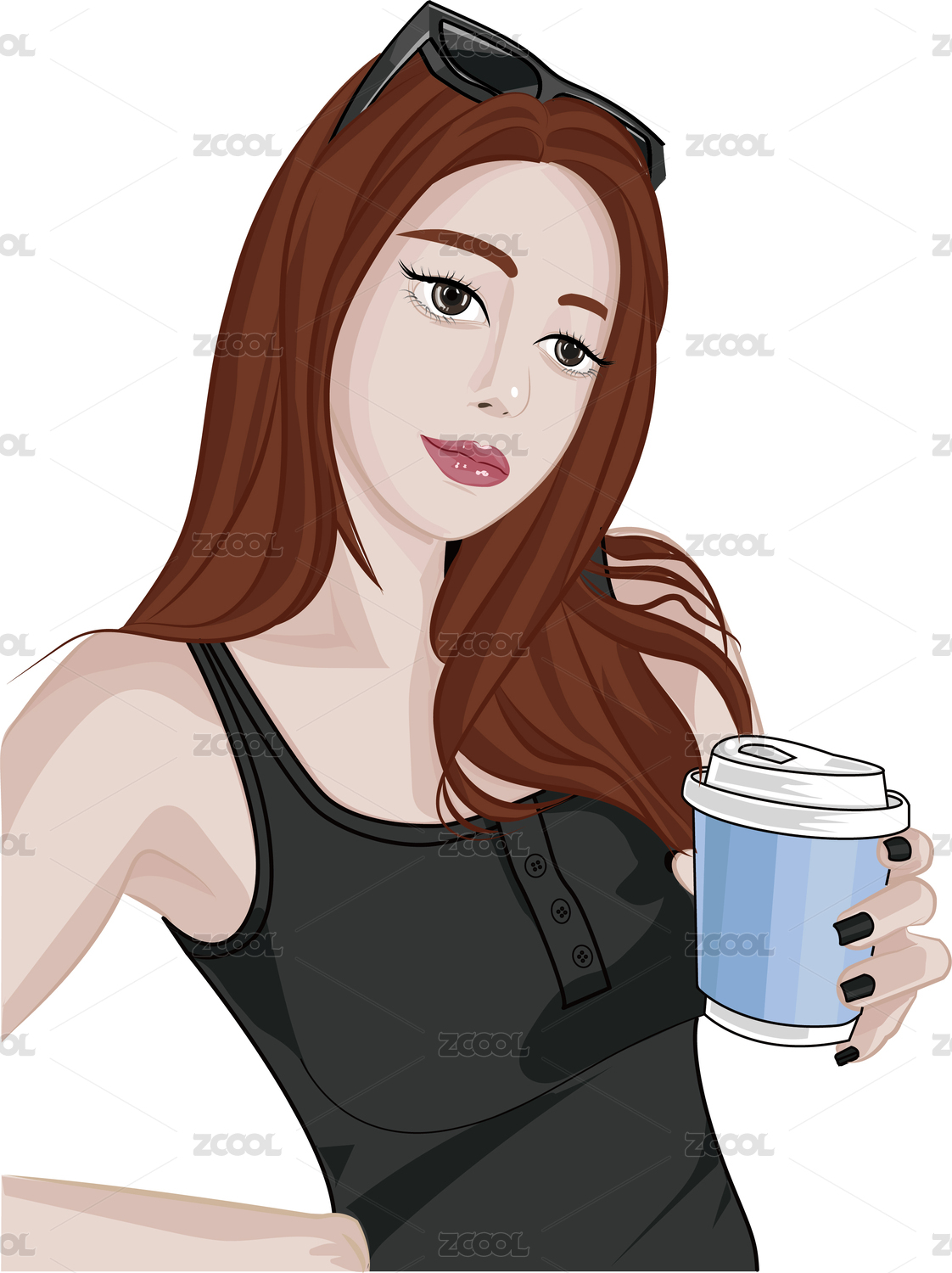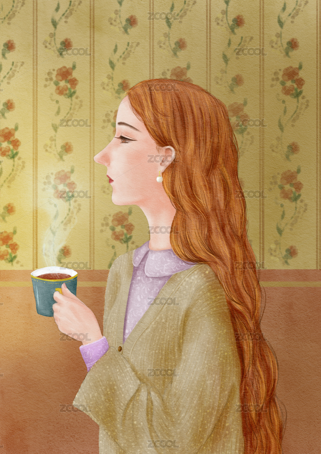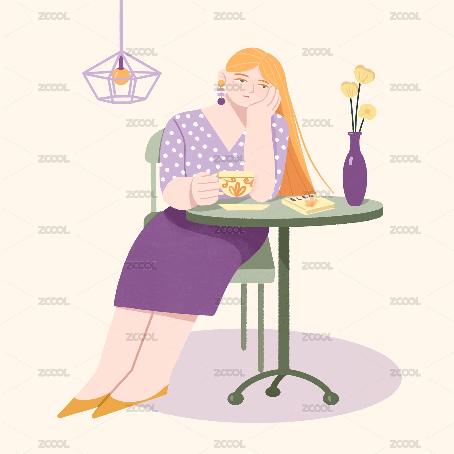 女神節(jié)春天女孩喝咖啡矢量插畫