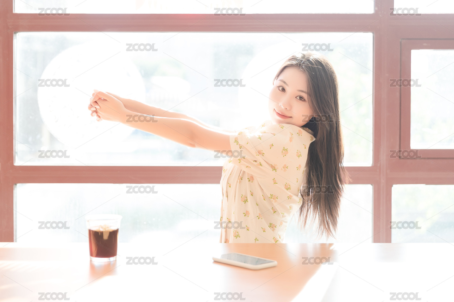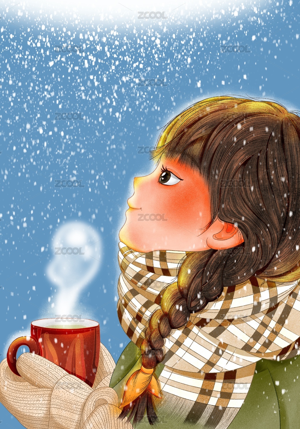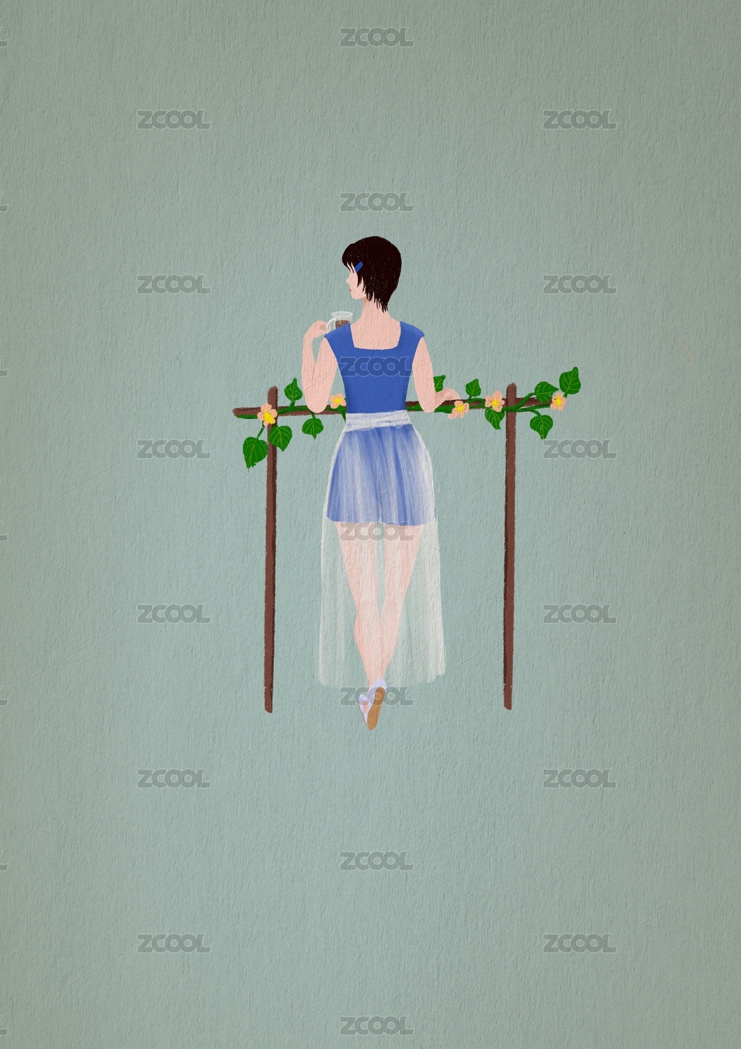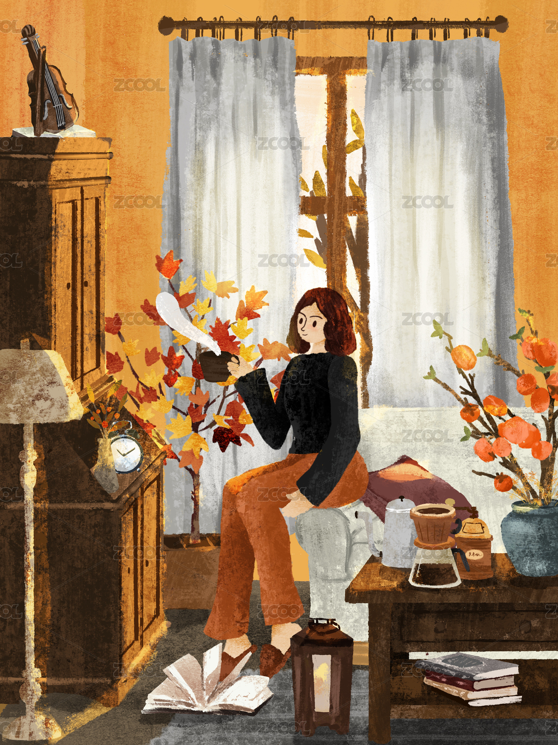 女神節(jié)春天女孩喝咖啡矢量插畫