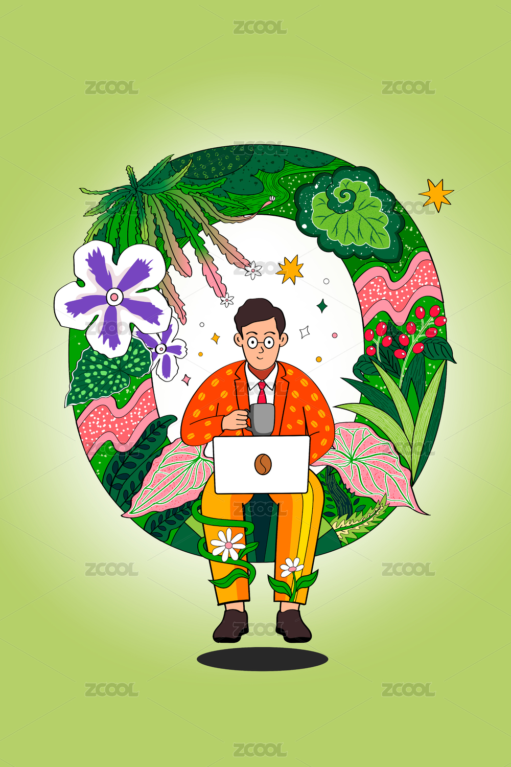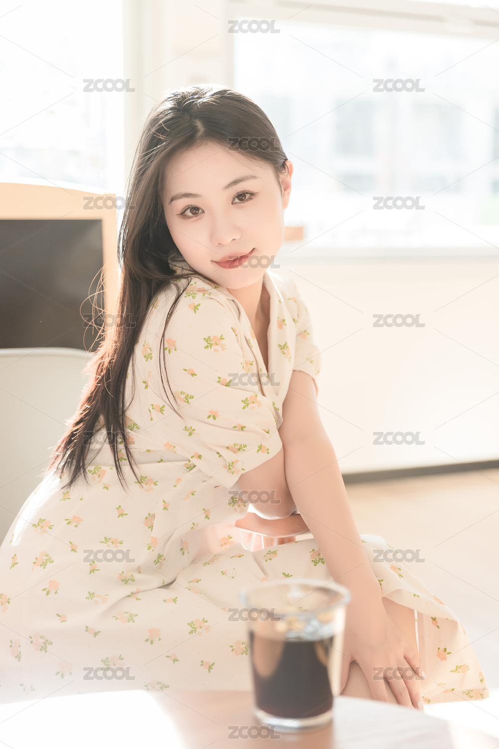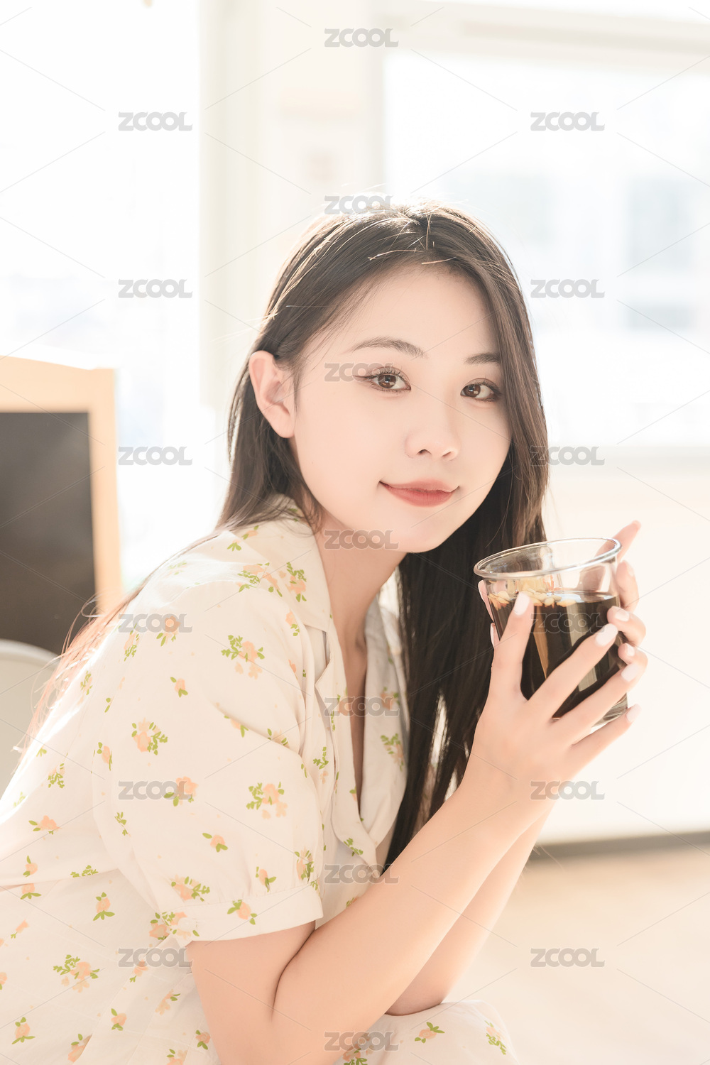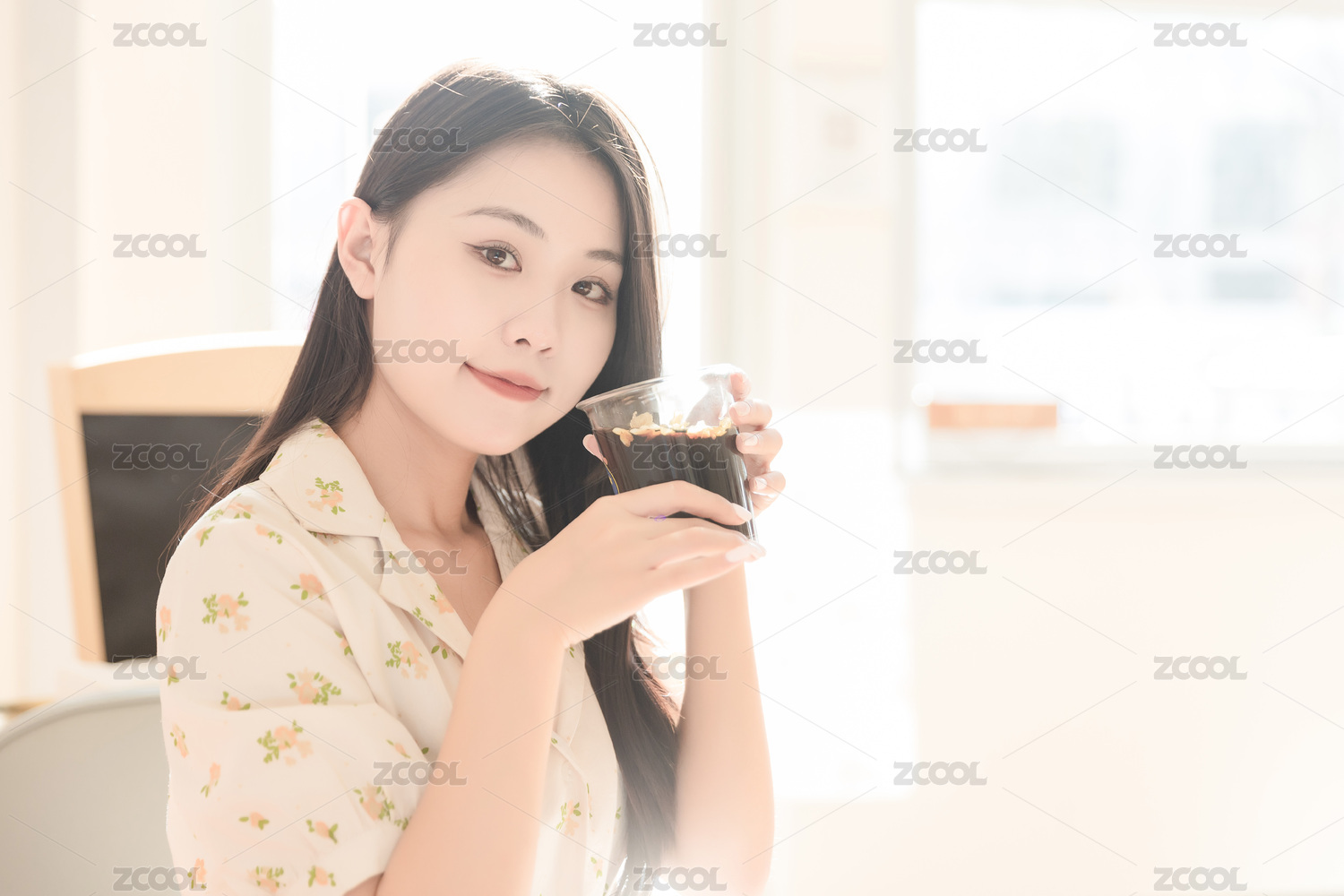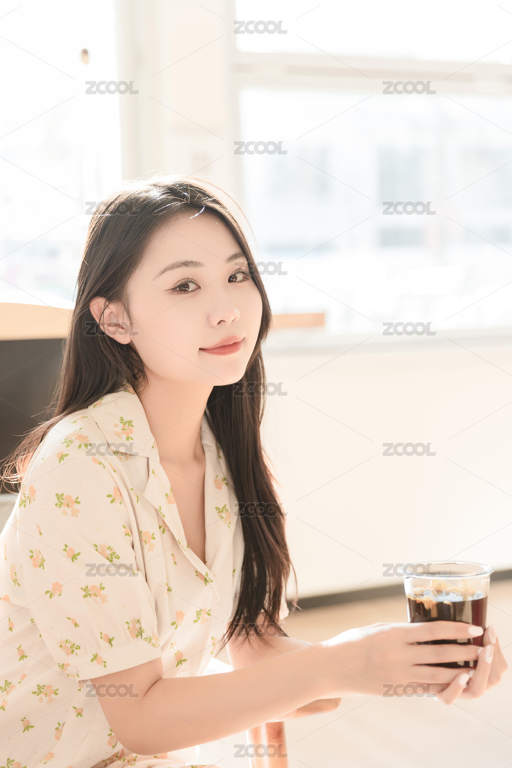 女神節(jié)春天女孩喝咖啡矢量插畫