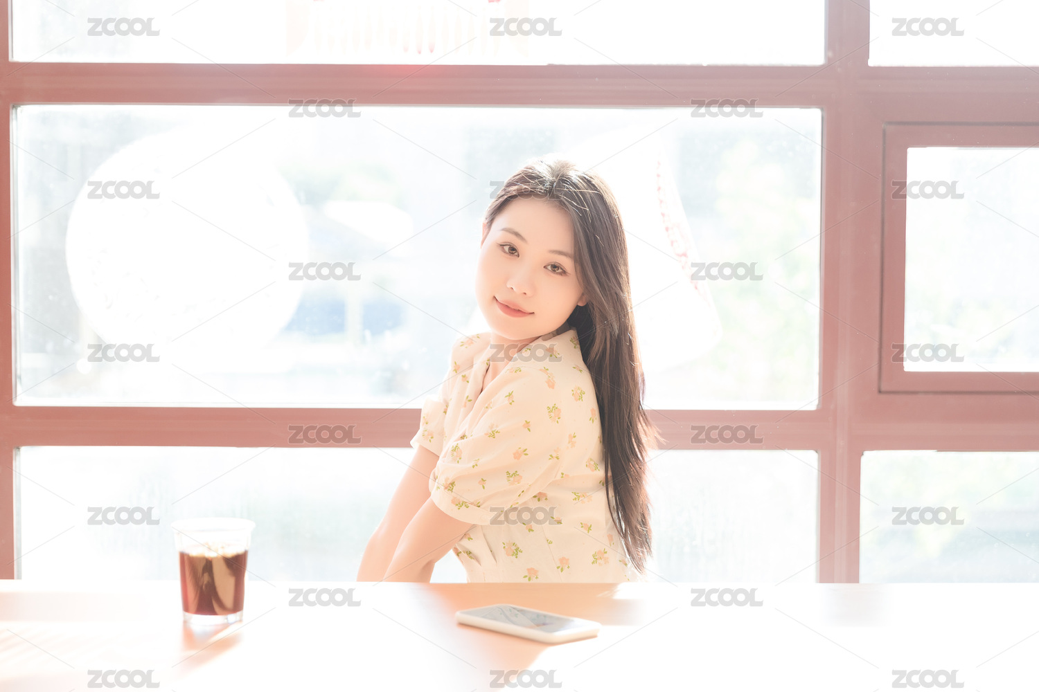 下午茶喝咖啡看手機(jī)的女性人物矢量插畫
