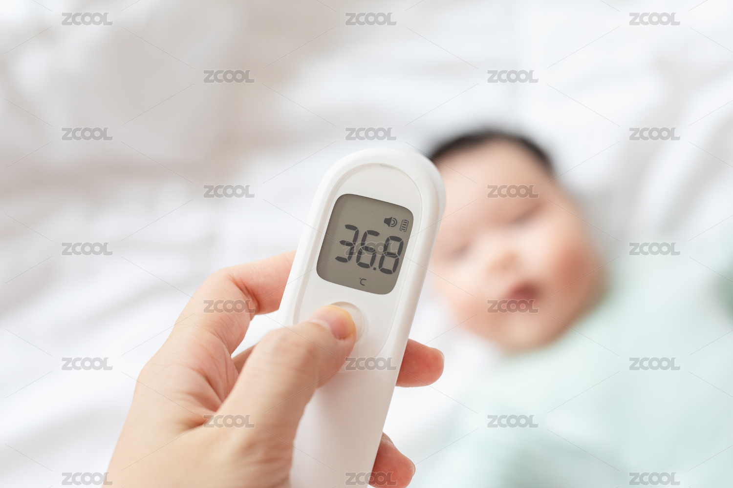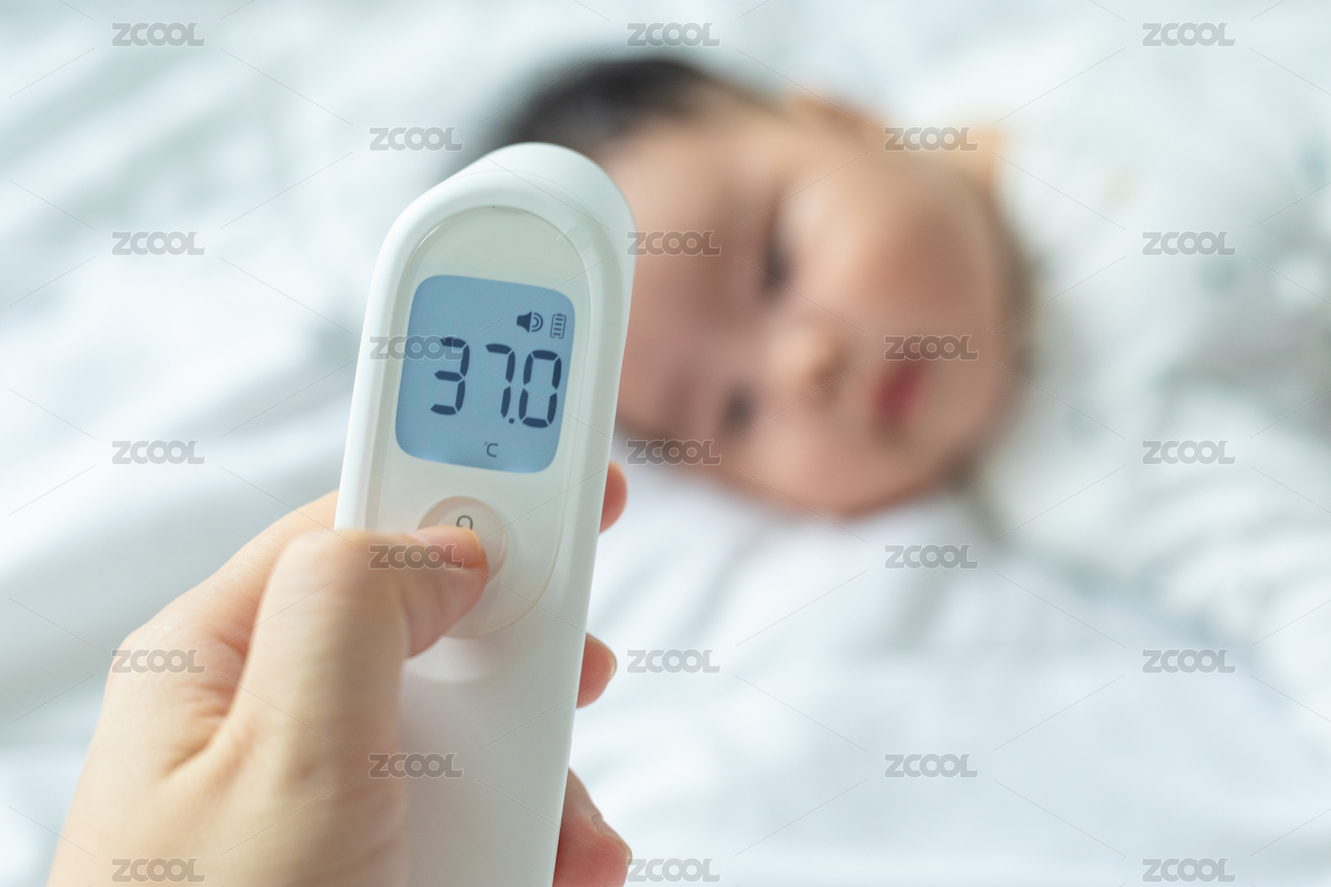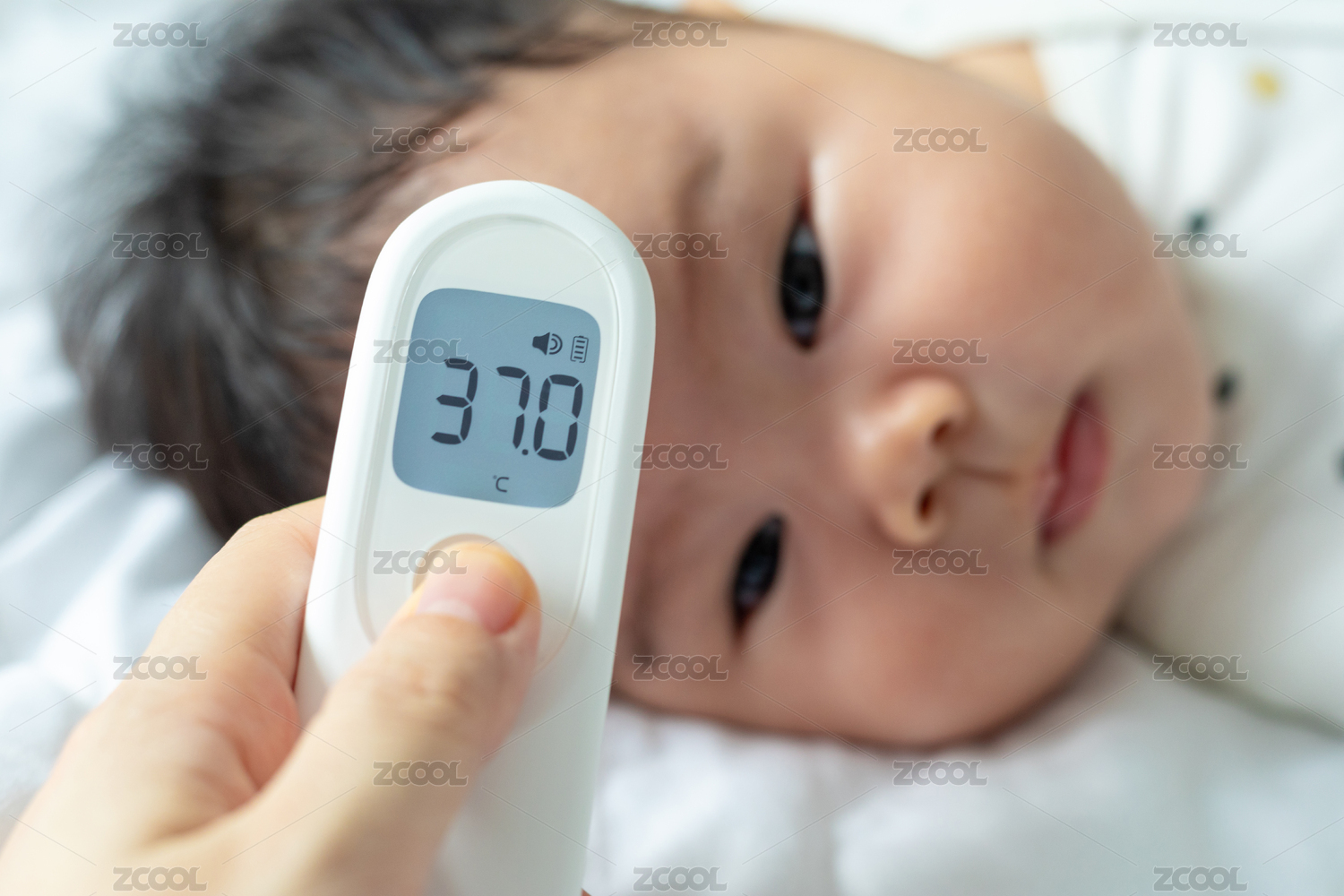 兒科醫(yī)生用紅外線額溫槍測量體溫