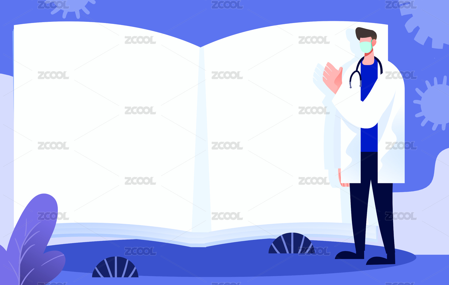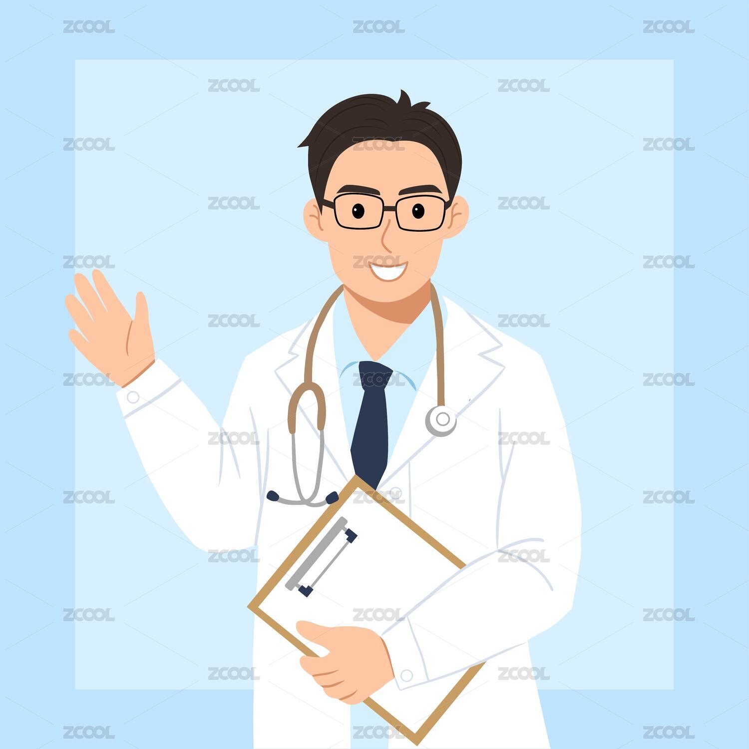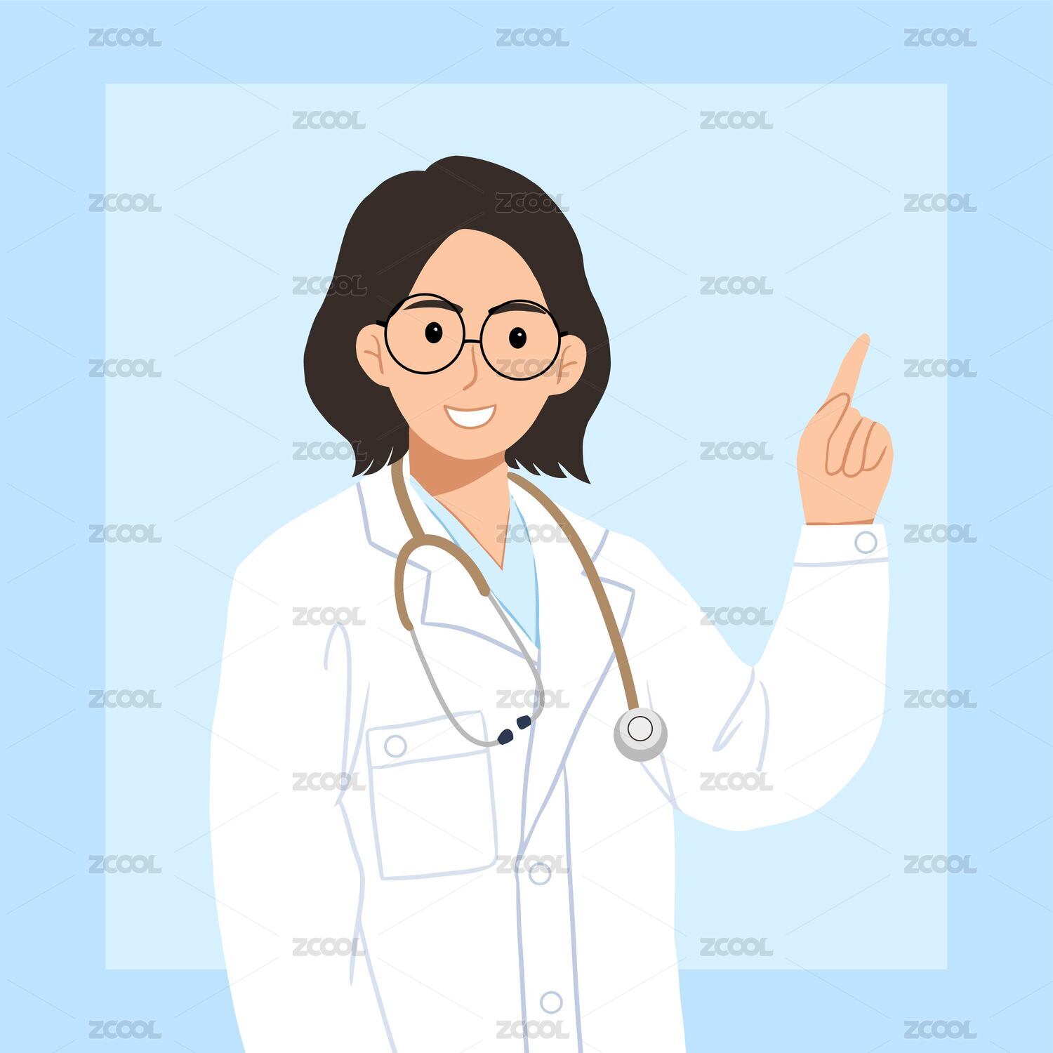 卡通手繪戴口罩醫(yī)生解說介紹插畫