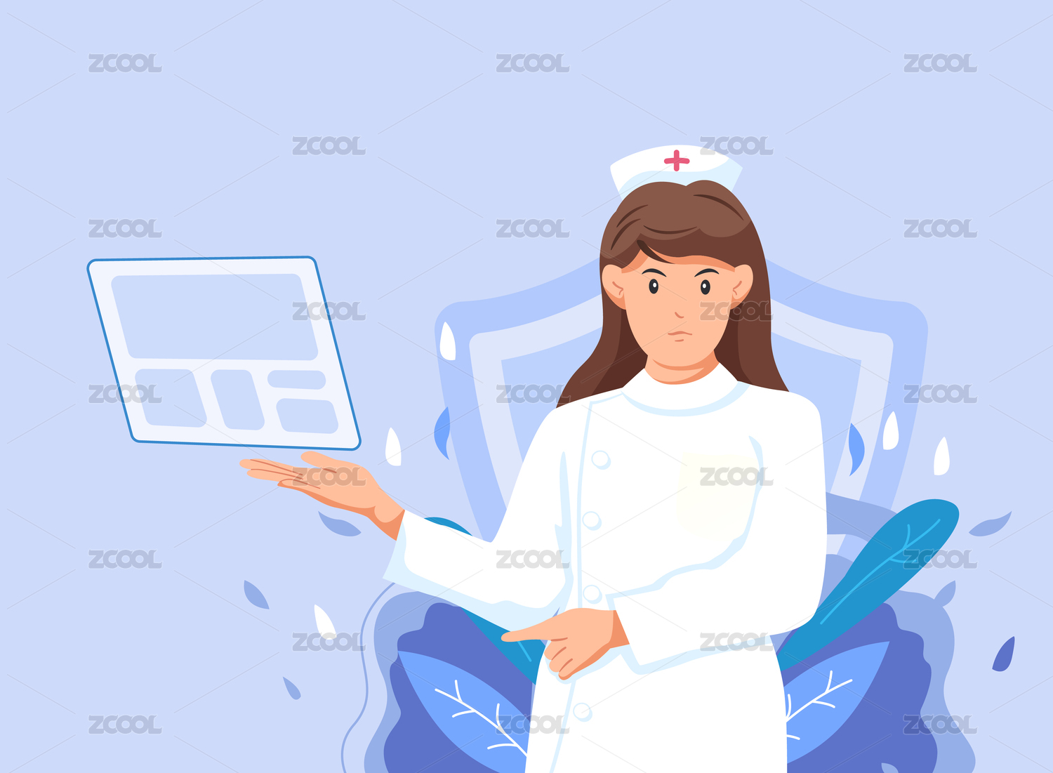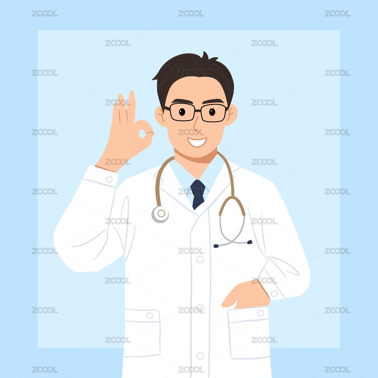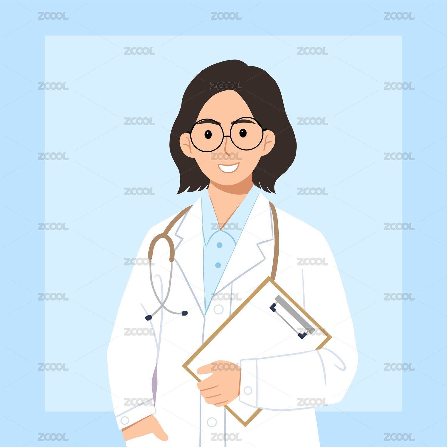卡通手繪戴口罩醫(yī)生解說介紹插畫