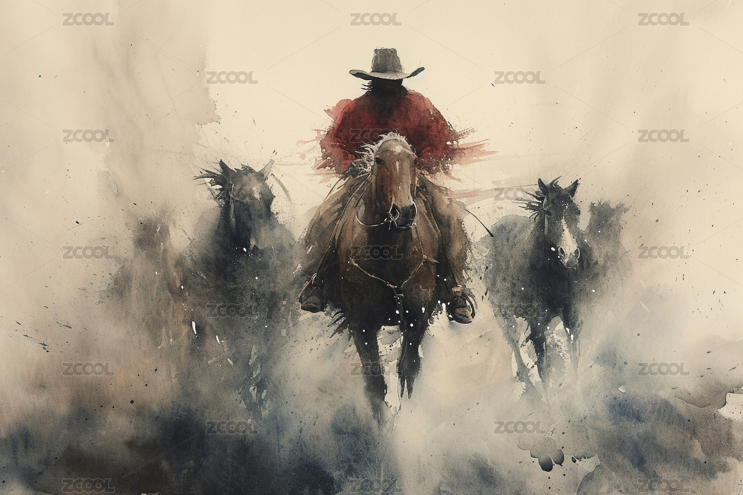 一個(gè)牧民正在馬場(chǎng)上牧馬插圖