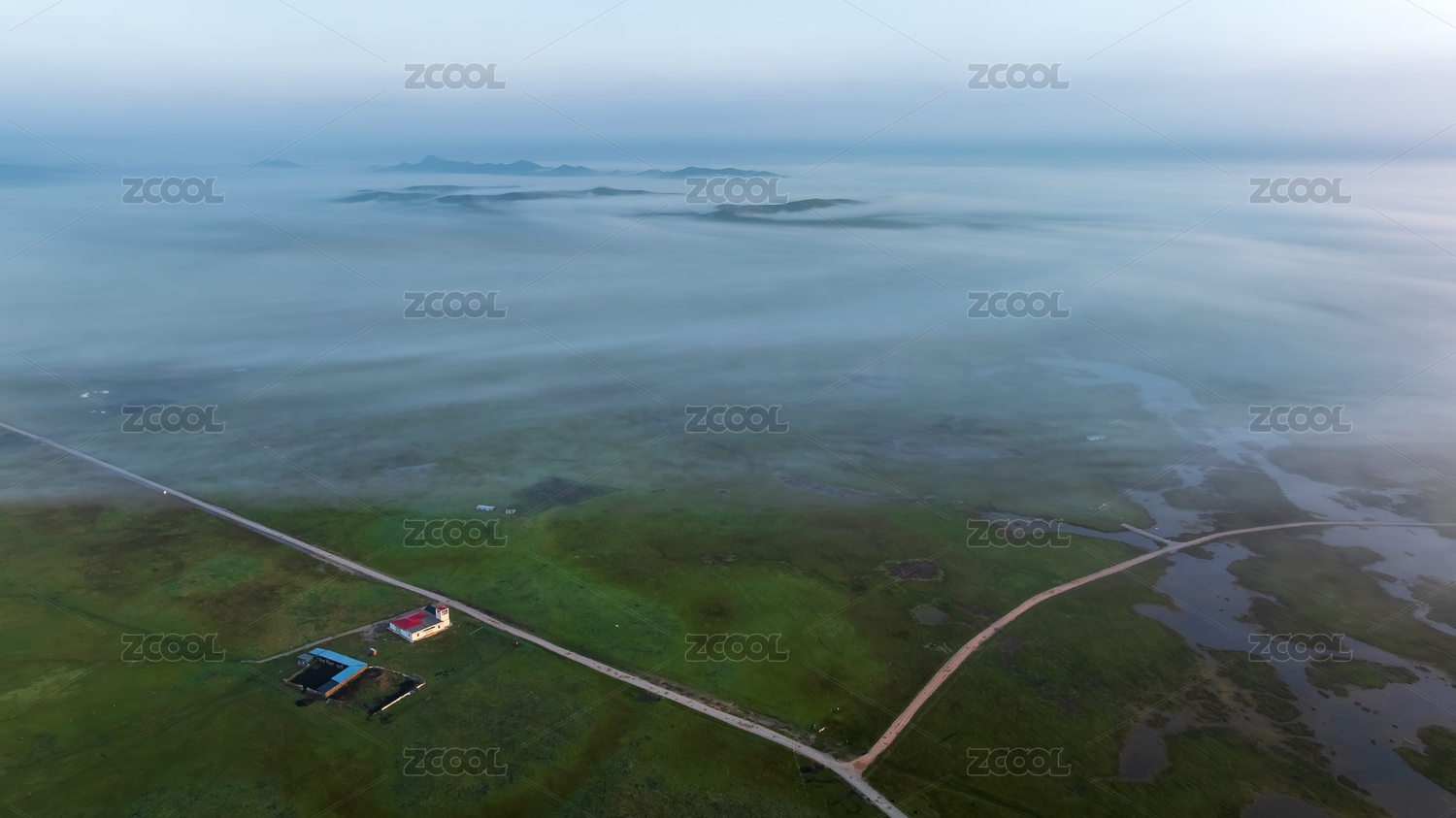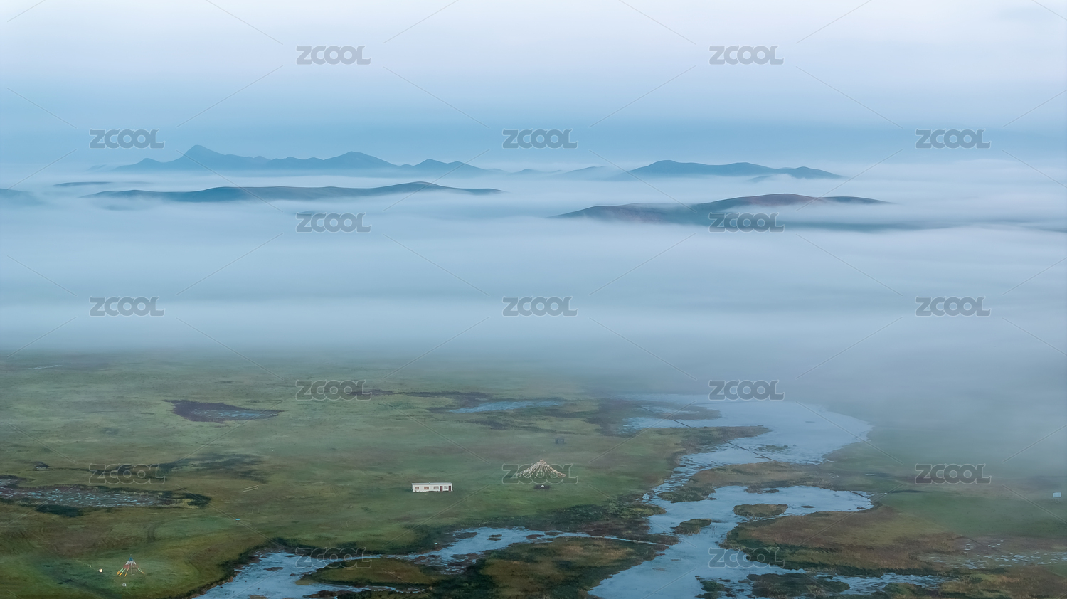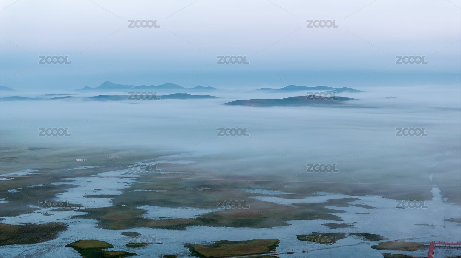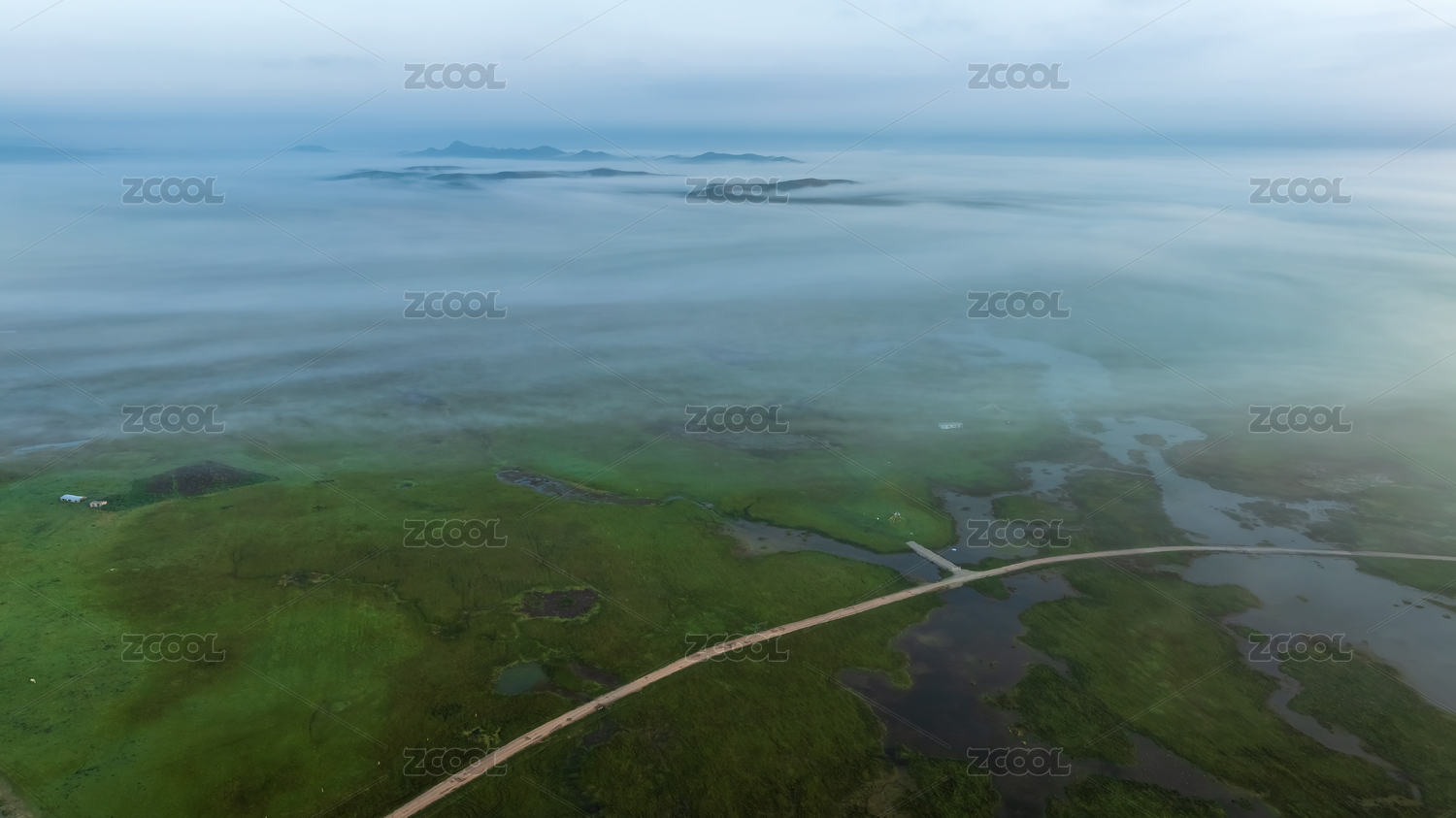 甘南河曲馬場(chǎng)草原濕地清晨云海航拍