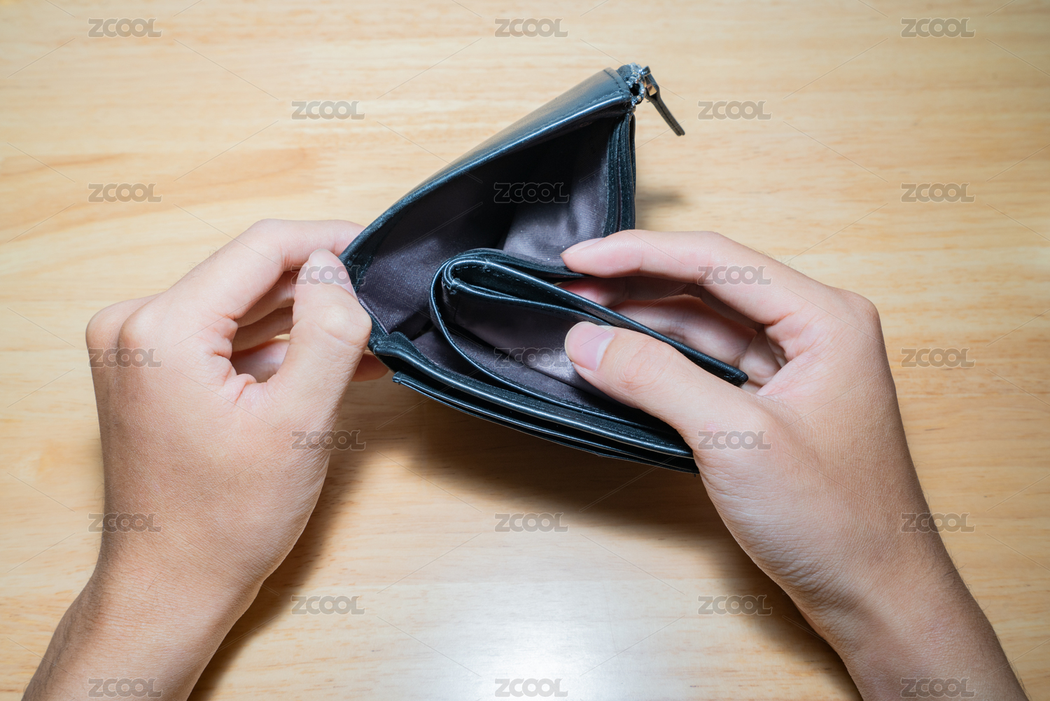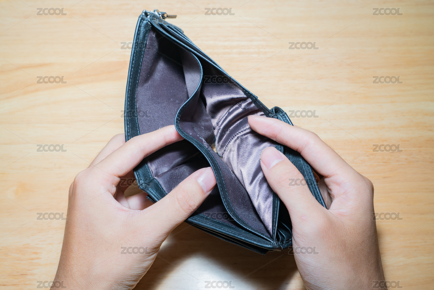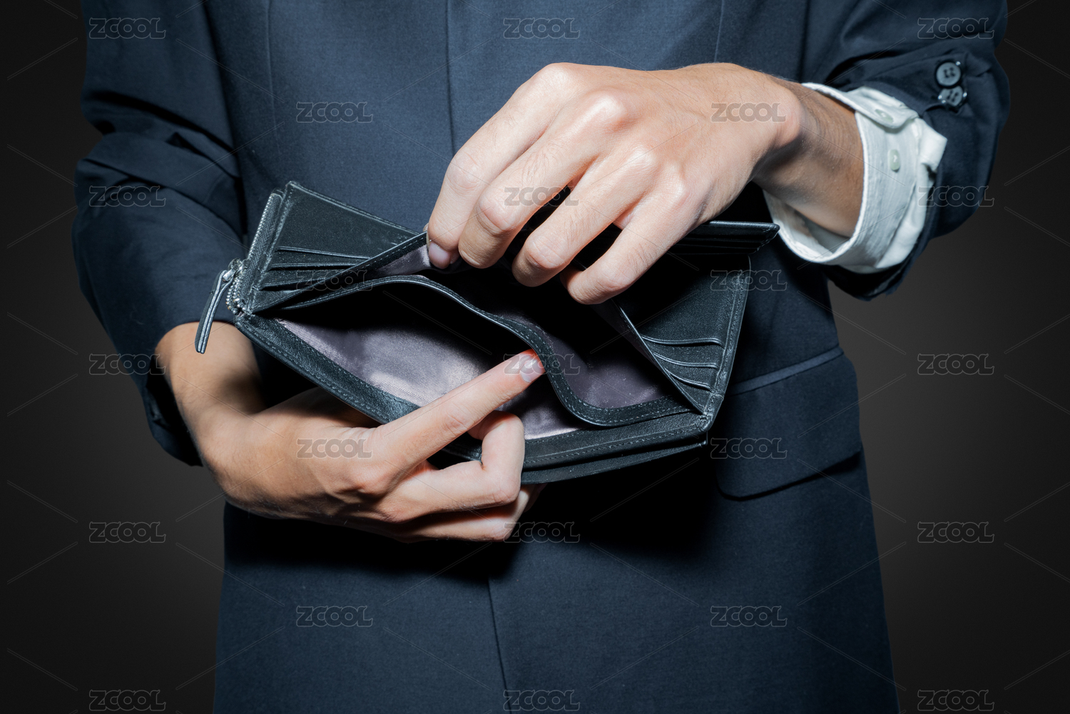 貧窮的人拿著錢包沒有一點錢窮輸光了錢低工資手頭緊概念