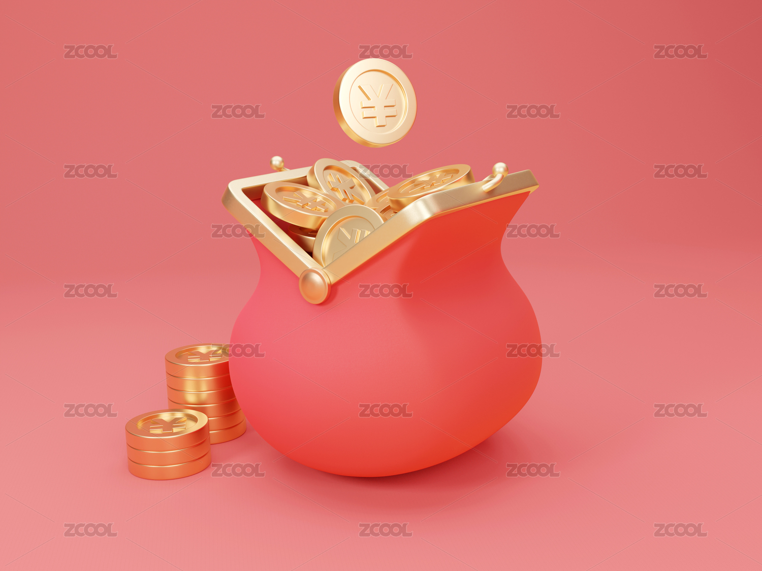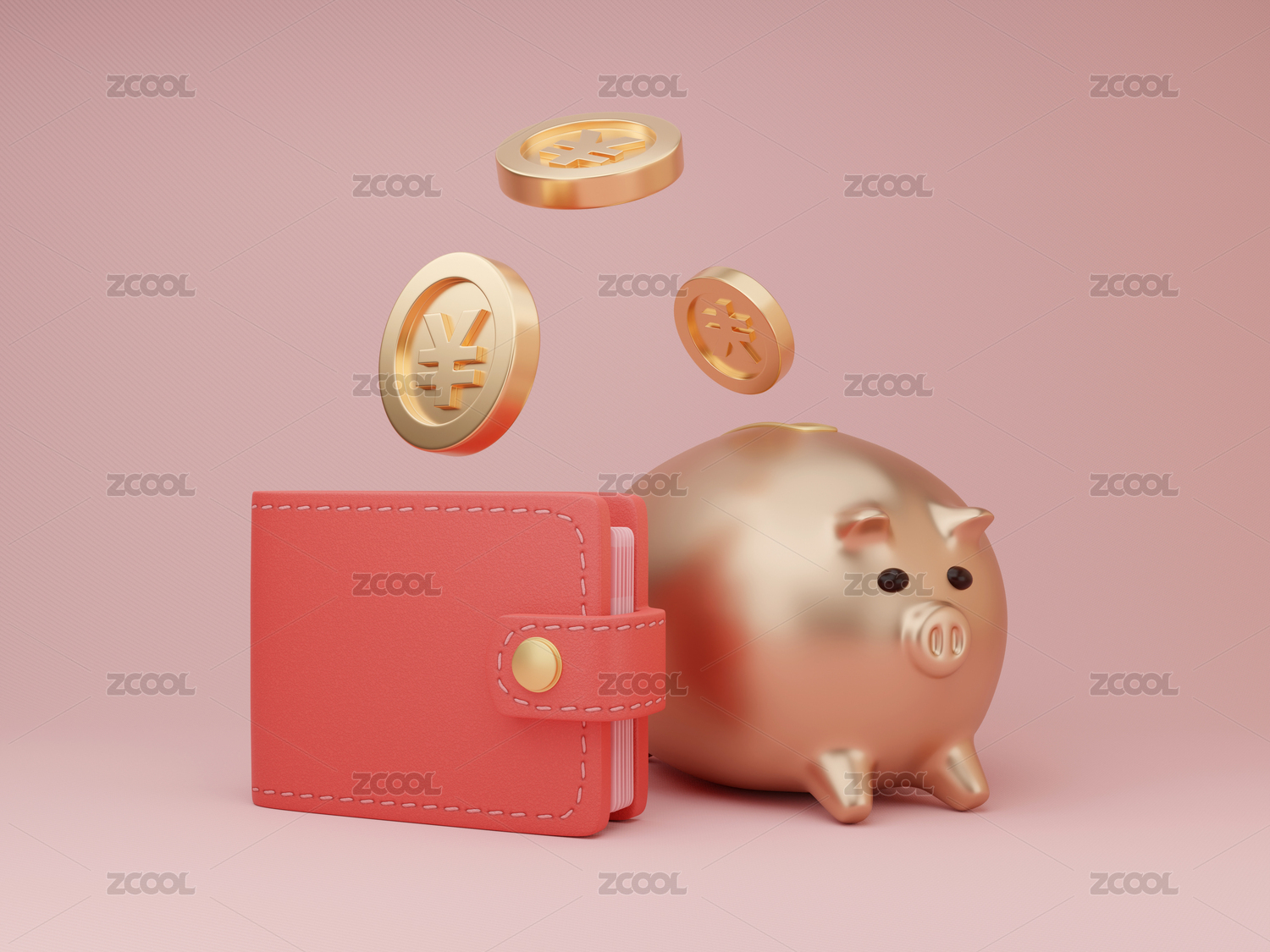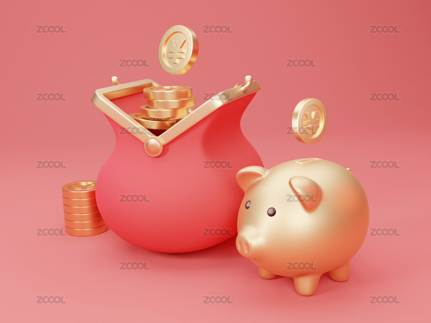 3D紅色錢包儲蓄罐創(chuàng)意素材