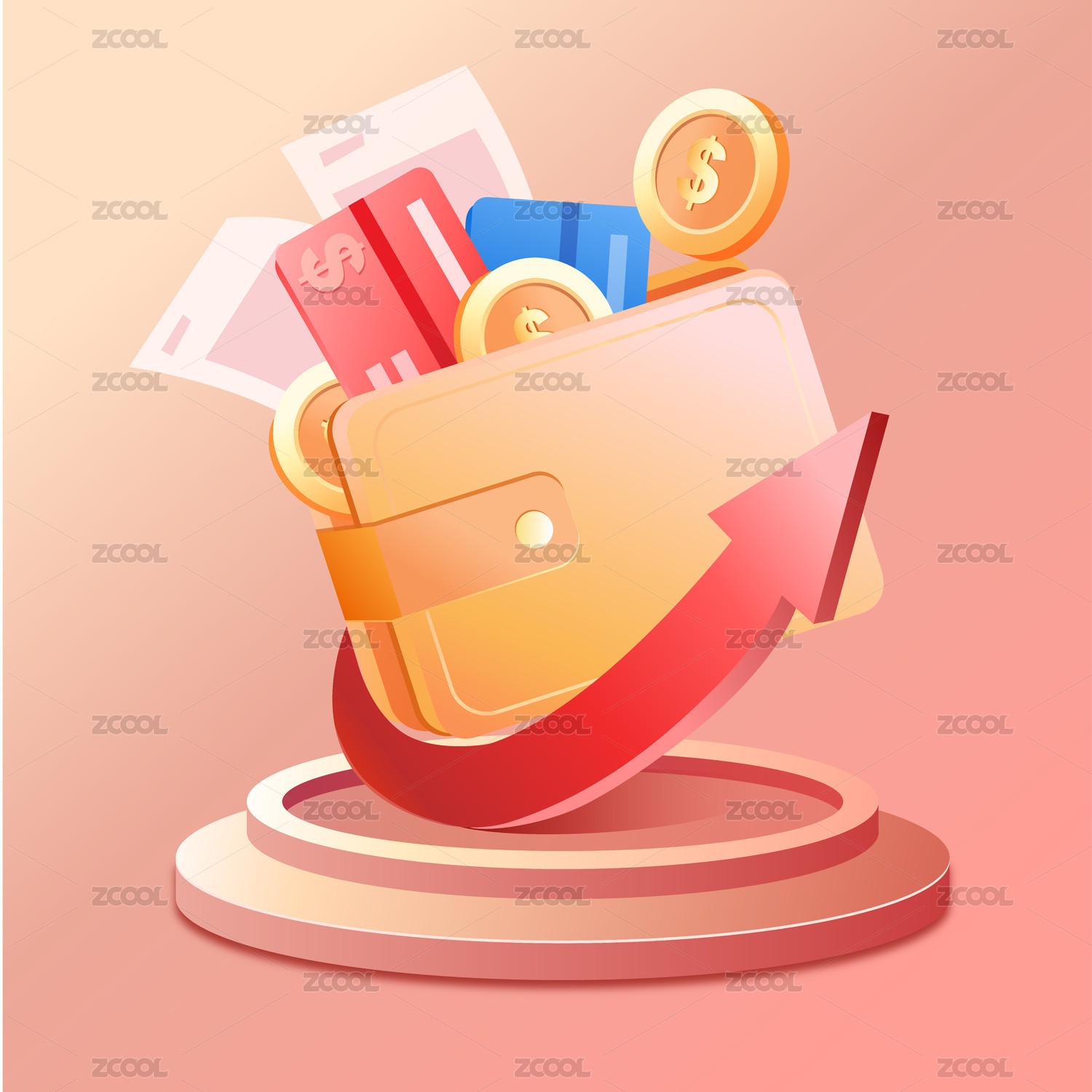 3D紅色錢包放滿紙幣儲蓄創(chuàng)意素材