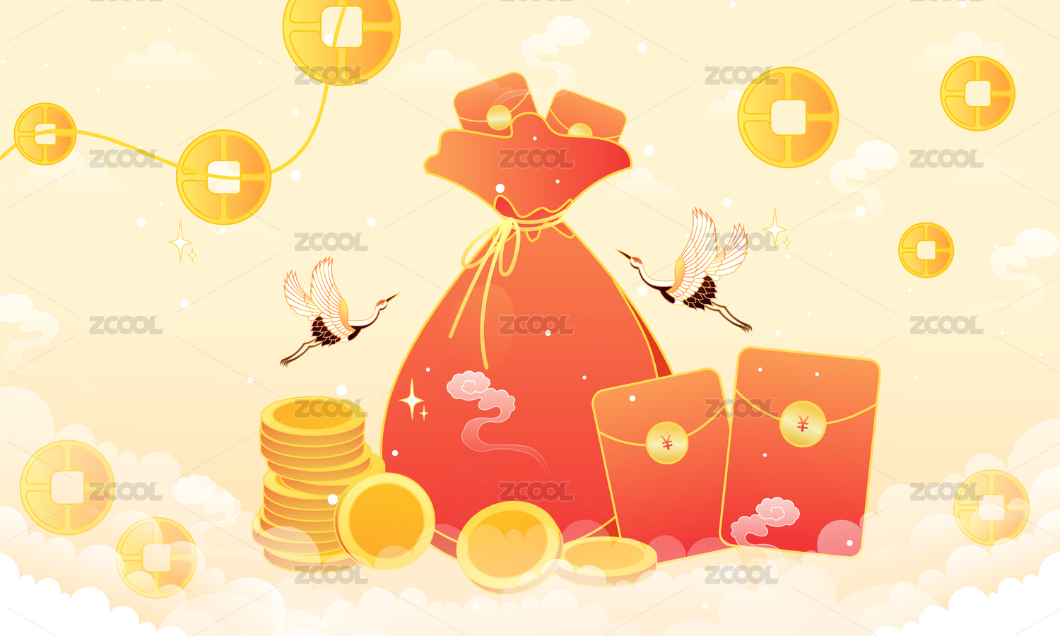 金融錢幣金袋紅包矢量插畫