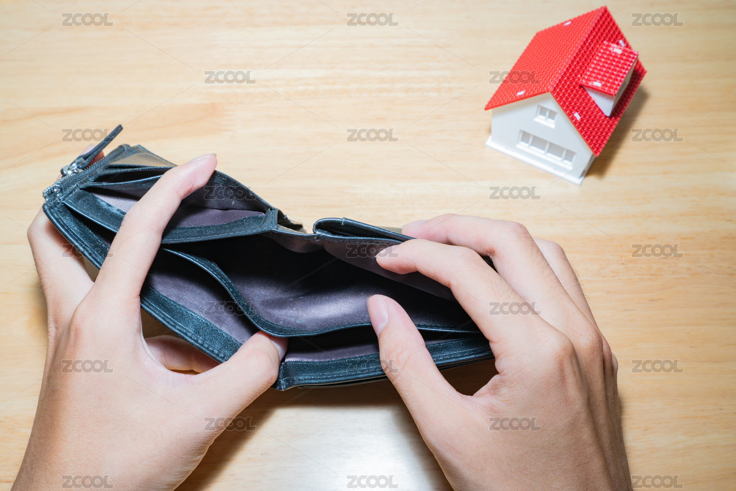黑色的錢包放在灰色桌面上